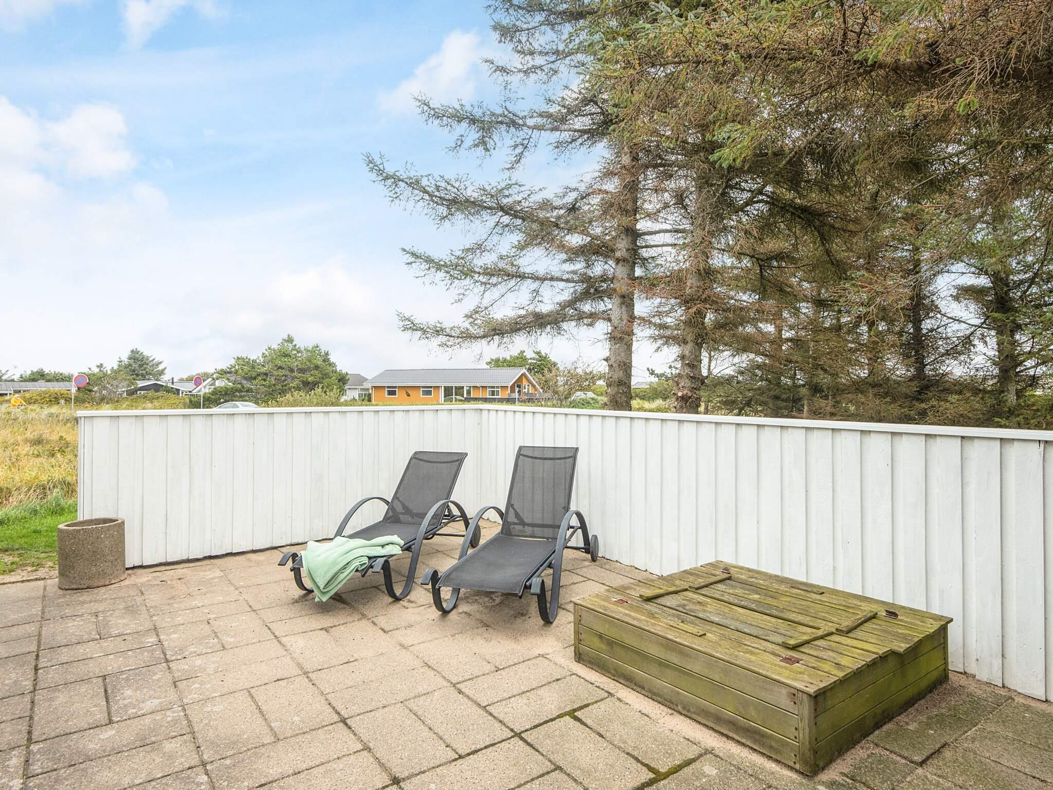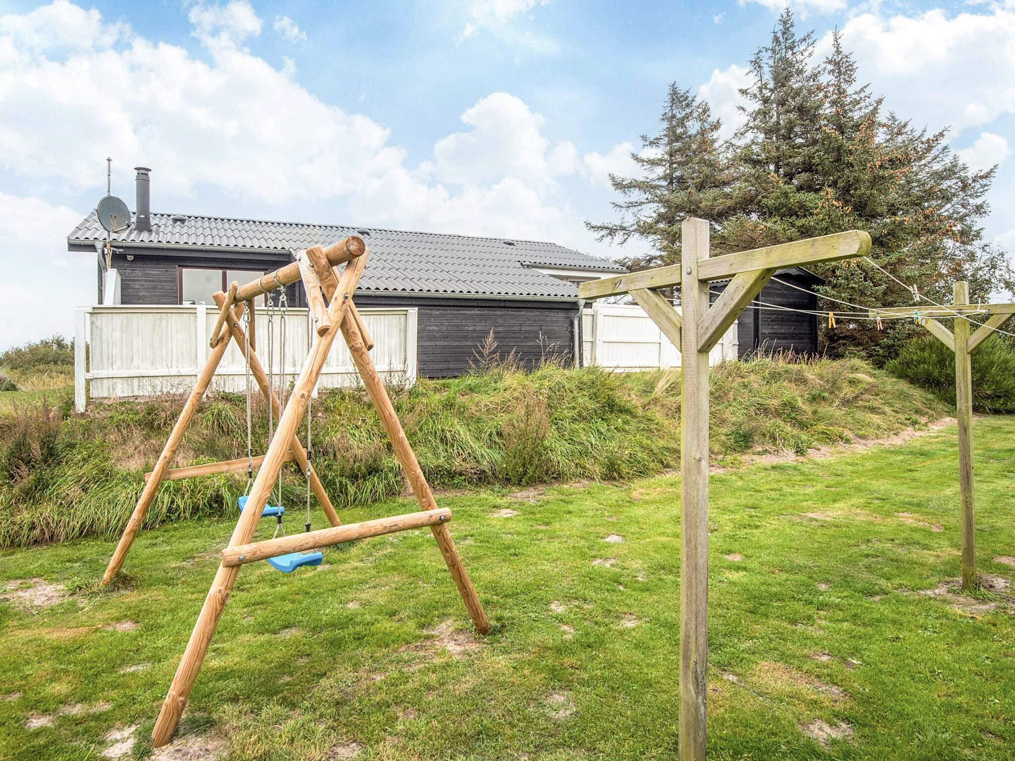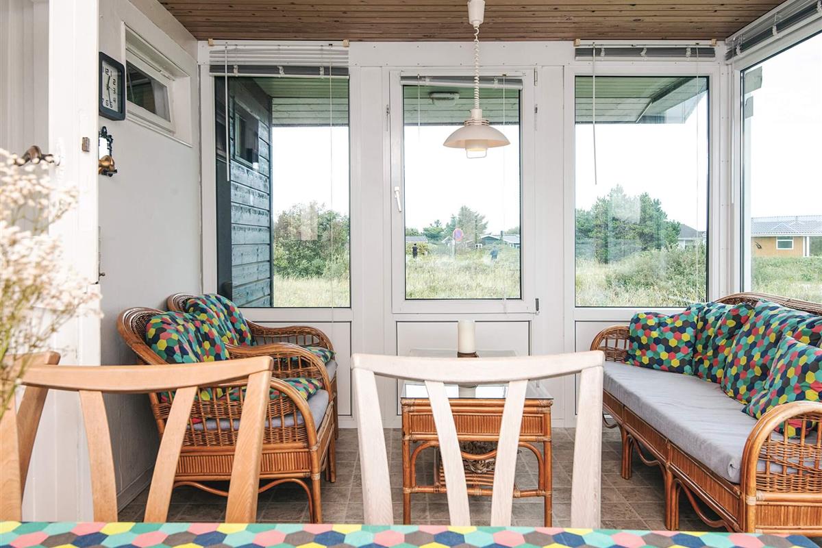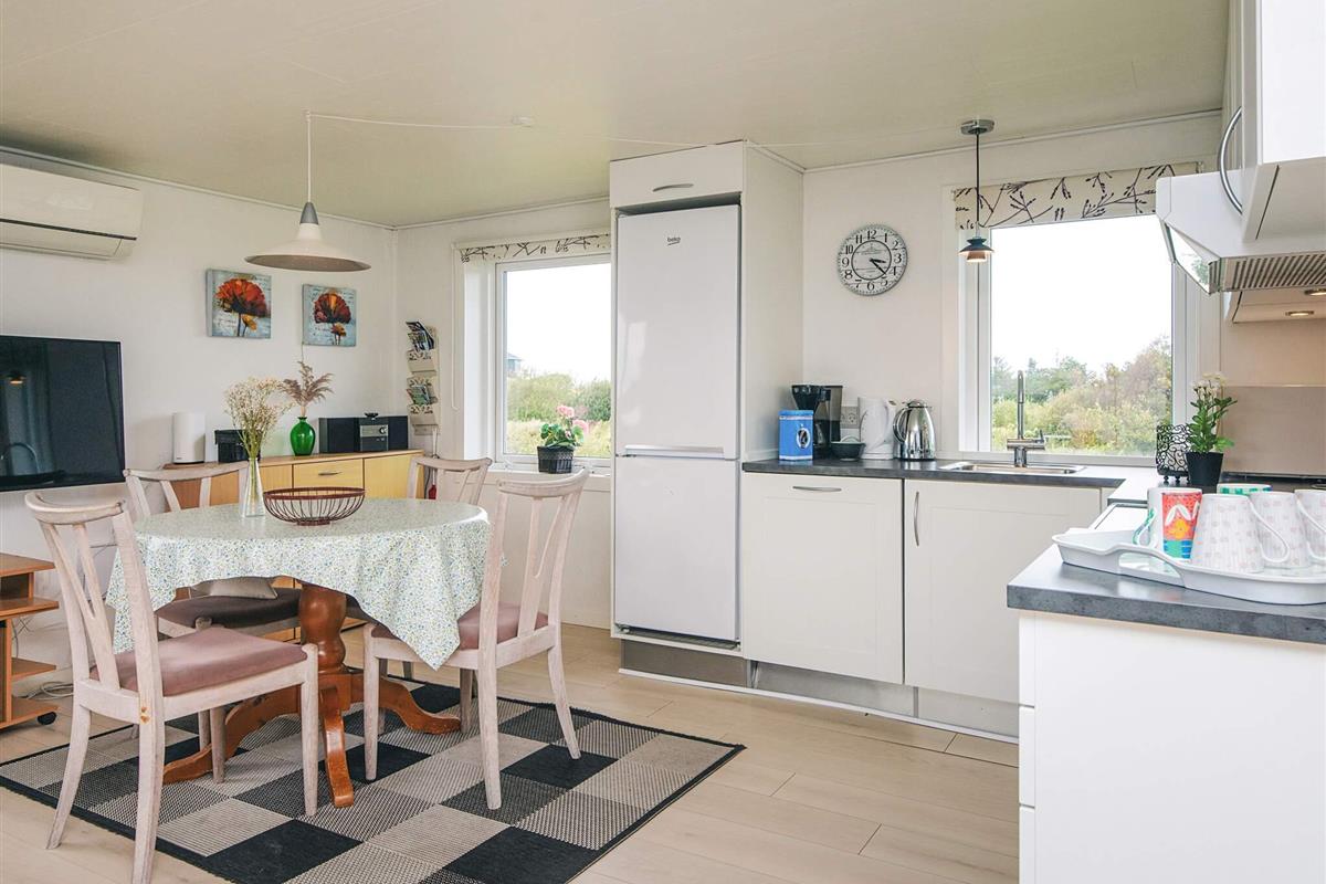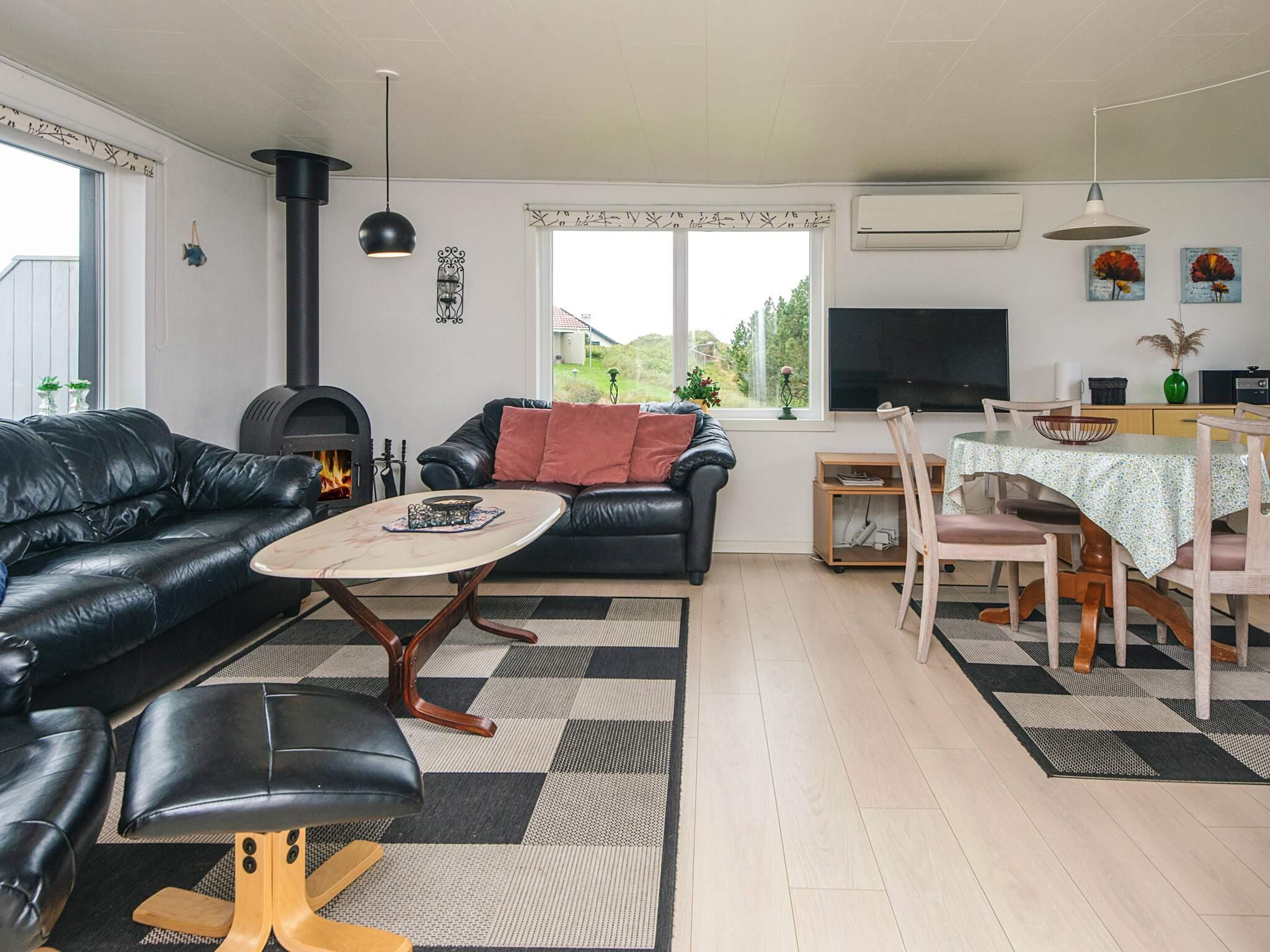 Dieses Ferienhaus liegt in der Nähe vom Strand. Es gibt u.a. ein Bad mit Dusche und Fußbodenheizung, einen kombinierten Küchen-/Aufenthaltsbereich mit Holzofen, drei Schlafzimmer und eine Glasveranda für gemütliche Stunden. Die Waschmaschine befindet sich in der Garage, die nicht für Autos gedacht ist. Die abgeschirmte Terrasse mit Gartenmöbeln lädt zu schönen Sonnenstunden ein und Kinder freuen sich über Schaukel und Sandkasten.