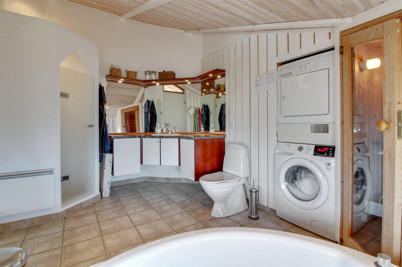 Er is 2 badkamers met douchehok en 2 toiletten. Er is vloerverwarming in 2 van de badkamers. De sauna biedt de gelegenheid tot ontspanning.