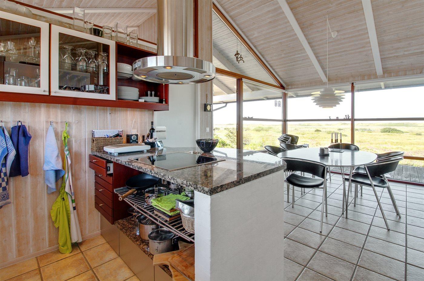De keuken is uitgerust met koelkast Er zijn 4 keramische kookplaten, heteluchtoven, magnetron en vaatwasser.