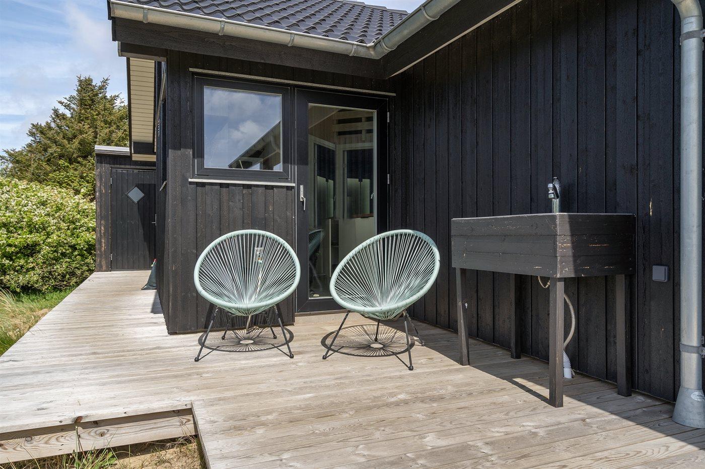 De vakantiewoning is gelegen op een 1210 m² groot natuural grond. Afstand tot de zee 500 m. Dichtstbijzijnde winkel 200 m. Bij de vakantiewoning hoort 100 m² terras. Daarnaast is er een 17 m² groot overdekt terras. Gereedschapsruimte. Schommel. Zandbak. Buitendouche. Parkeerplaats bij het huis.