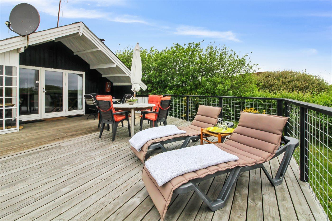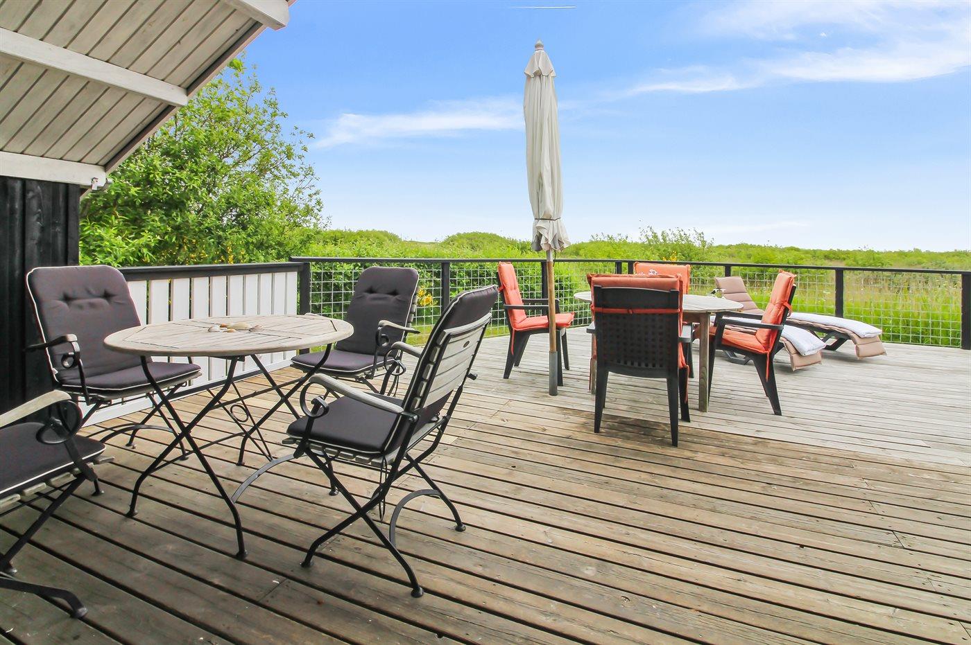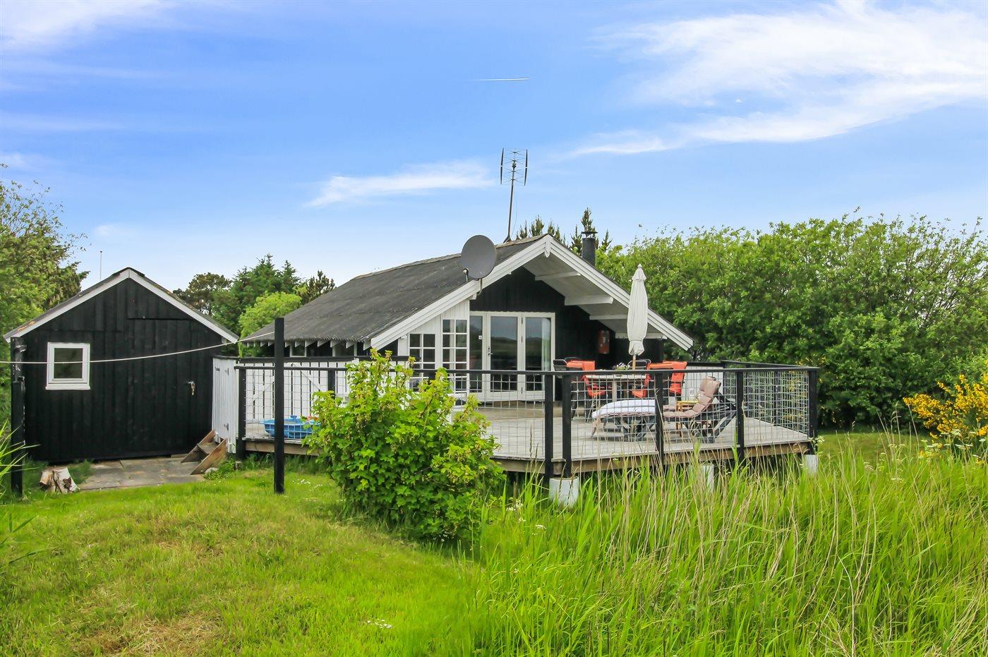 De vakantiewoning is gelegen op een 1200 m² groot natuural grond. Afstand tot de zee 600 m. Dichtstbijzijnde winkel 700 m. Bij de vakantiewoning hoort 66 m² terras. Daarnaast is er een 10 m² groot overdekt terras. Zandbak. Parkeerplaats bij het huis.