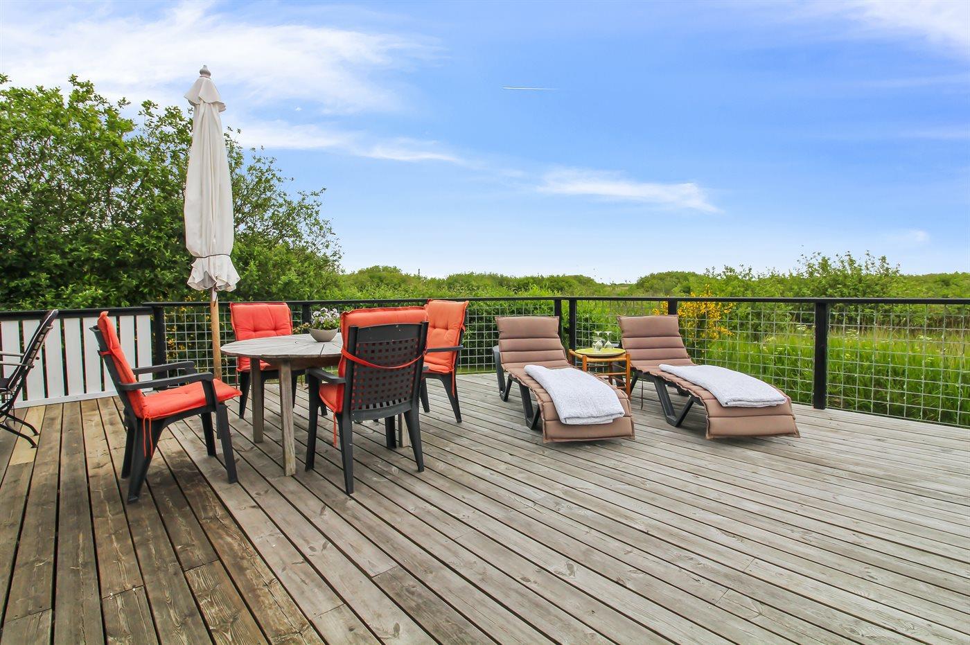 Comfortabel vakantiehuis met sauna nabij zee en groot terras in Rømø, ideaal voor gezinnen en huisdieren.