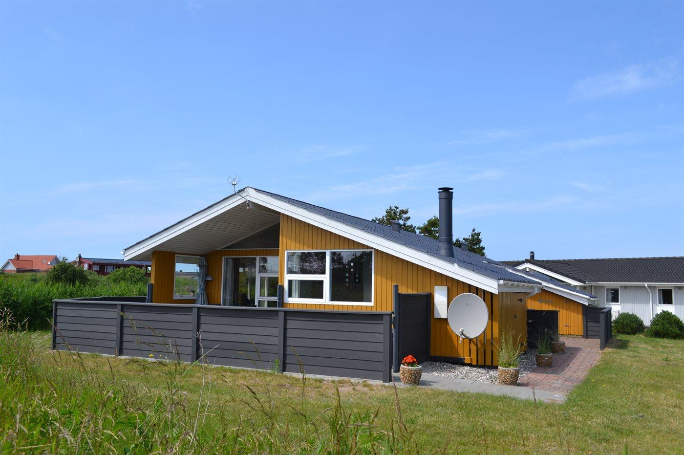De vakantiewoning is gelegen op een 1036 m² groot natuural grond. Afstand tot de zee 500 m. Dichtstbijzijnde winkel 350 m. Bij de vakantiewoning hoort 6 m² terras en 6 m² groot overdekt terras - waarvan in totaal 12 m² beschut terras. Parkeerplaats bij het huis.