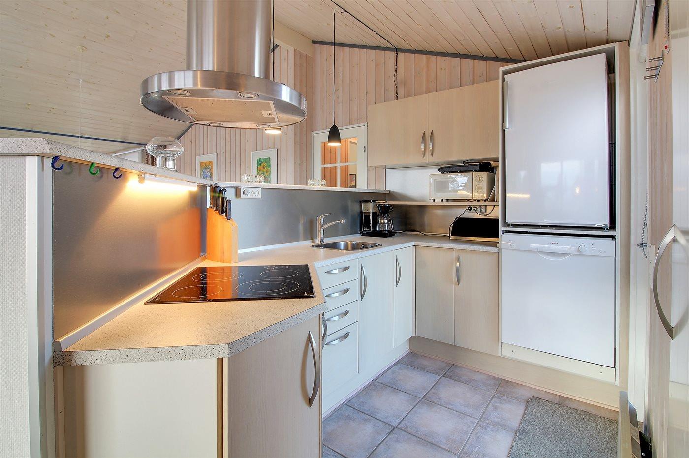De keuken is uitgerust met koelkast Er is 4 elektrische kookplaten, bakoven, magnetron en vaatwasser.