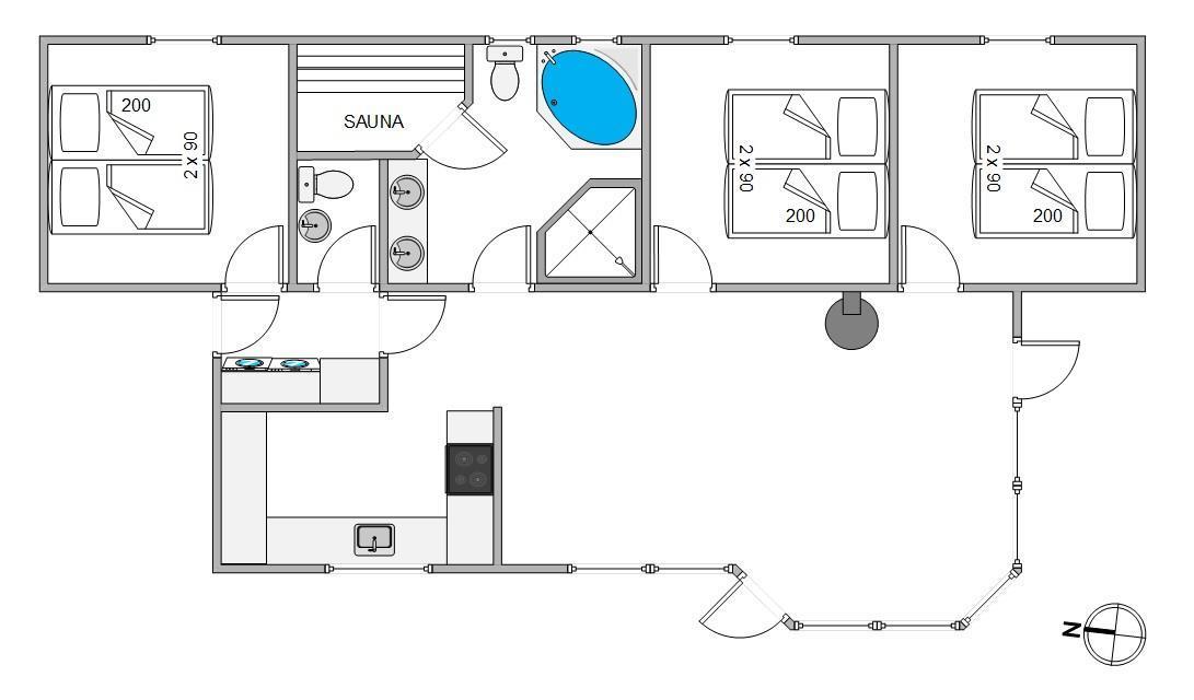 This well-designed holiday home features a large bathroom with underfloor heating, plus a separate guest WC to avoid queuing. The main bathroom includes your own wellness area with a whirlpool and sauna, perfect for relaxation and unwinding. Afterwards, retire to one of the three comfortable bedrooms with double beds to recharge for another day of holiday activities.
