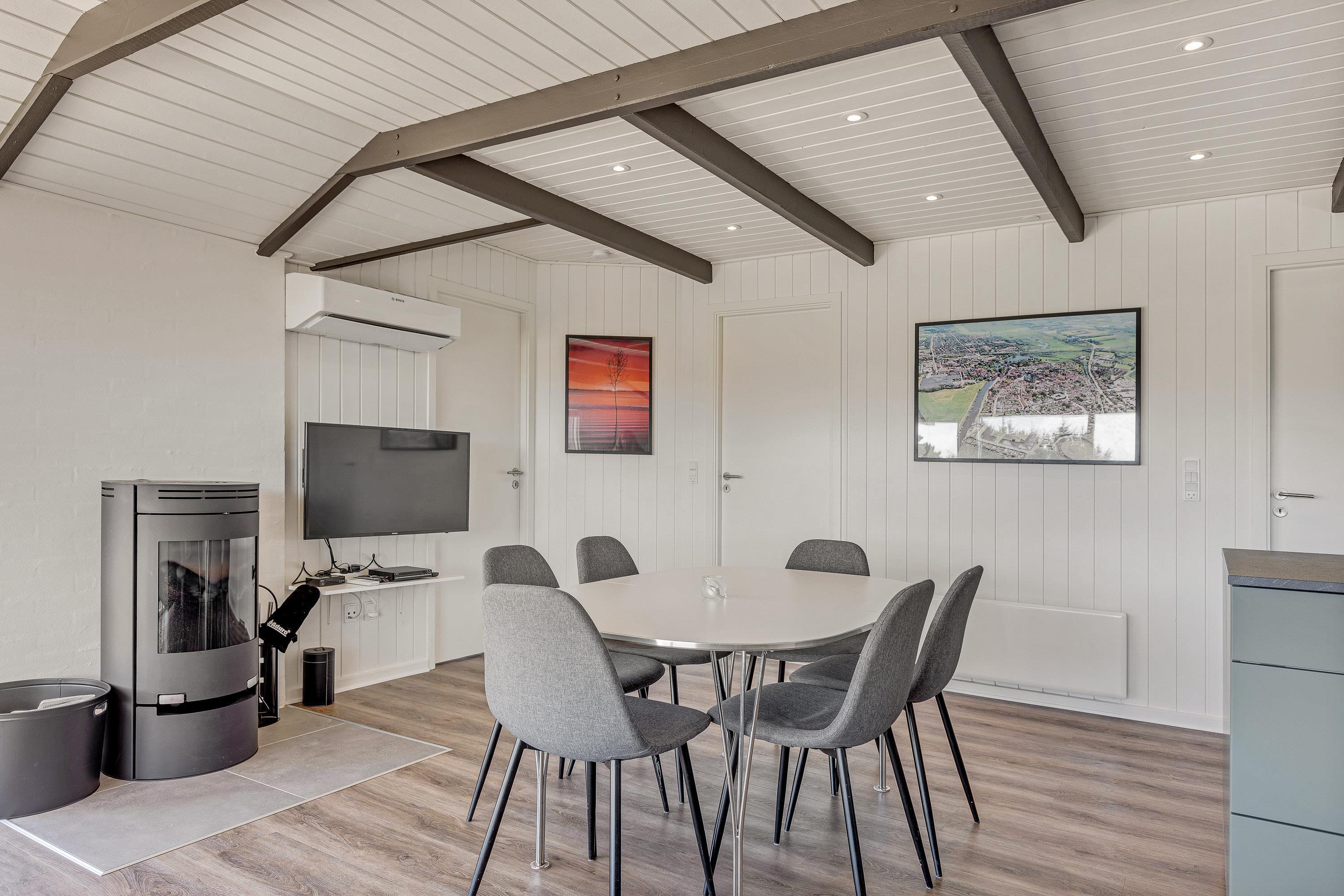 This non-smoking holiday home welcomes you with comfortable and well-maintained interior furnishings. The energy-efficient heating system, complemented by a crackling wood-burning stove in the living area, ensures a pleasant temperature. The dining area, kitchen and living room flow together in an open-plan arrangement, perfect for spending quality time with family.