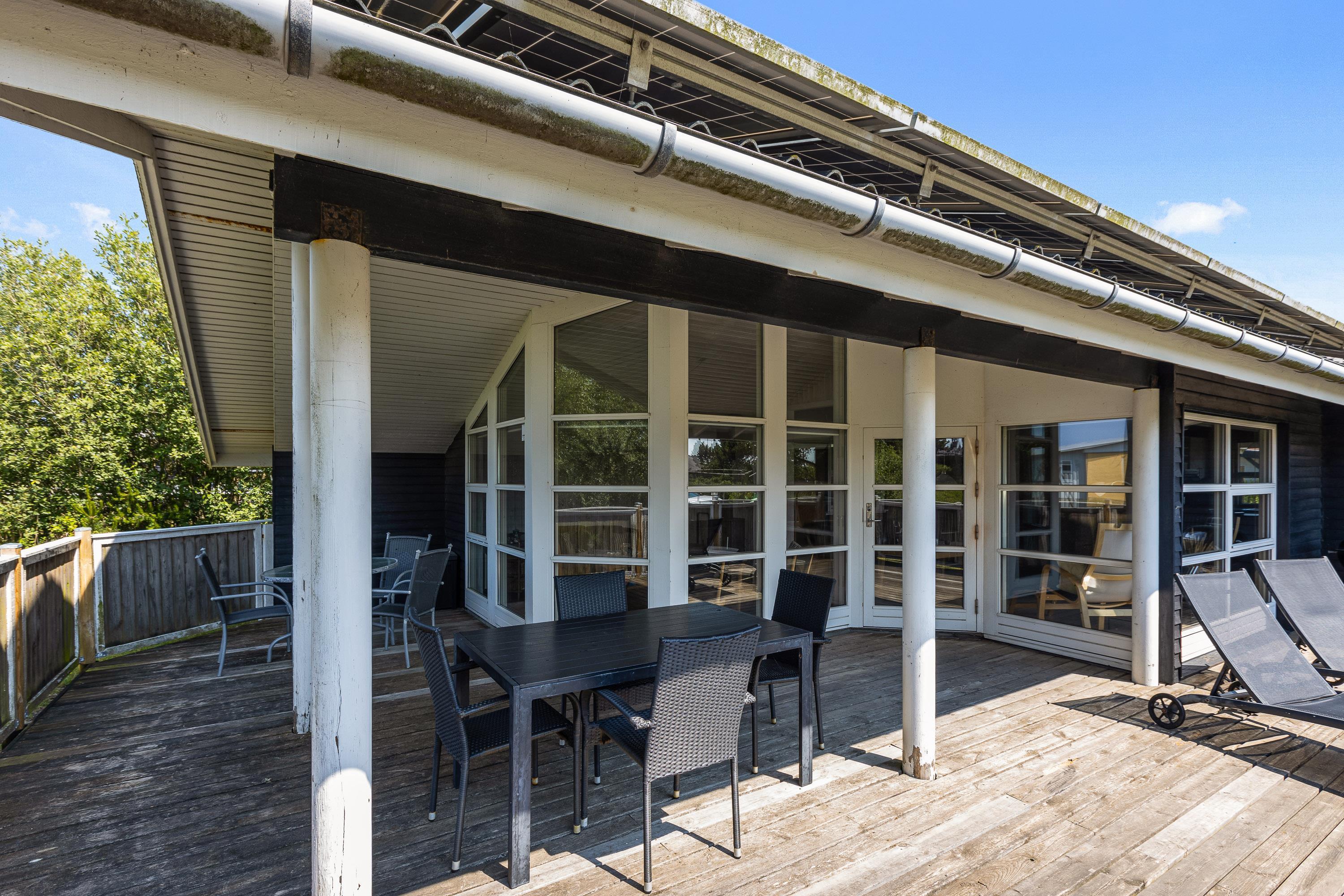 This traditional summer house in Lakolk radiates cosiness and immediately makes you feel welcome. Look forward to a spacious conservatory with fireplace where you can spend relaxing hours with a good book or glass of wine. Adjacent to the conservatory, you'll find the open-plan living and dining area with adjoining kitchen. Here you can watch films together or enjoy a games evening.