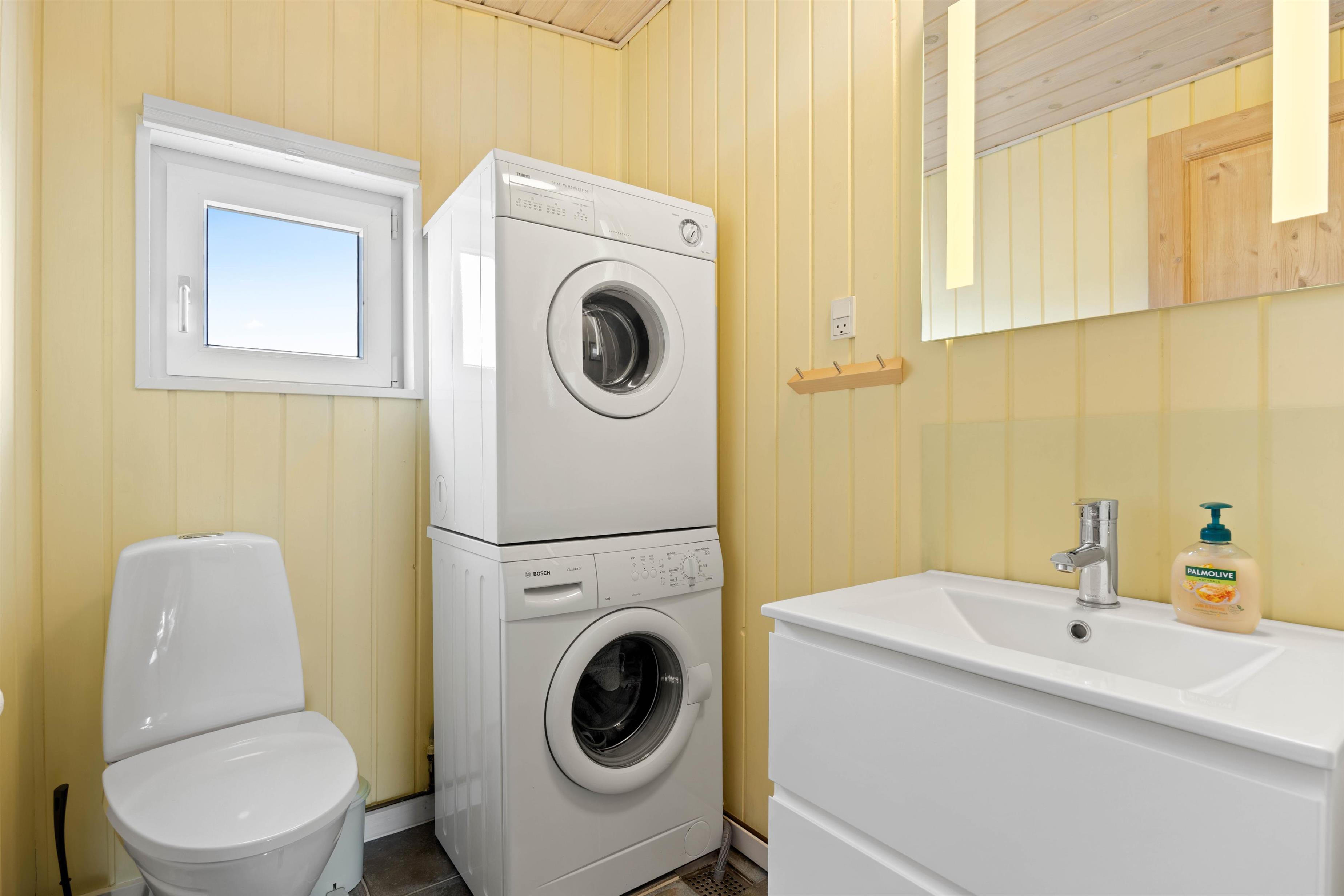 The holiday home features comprehensive amenities to make your stay as pleasant as possible. A washing machine and tumble dryer are available for your laundry needs. The modern kitchen includes a dishwasher, minimising time spent washing up. A heat pump ensures comfortable temperatures year-round, while the bathroom features underfloor heating for added comfort. In addition to the main bathroom, there's a separate guest toilet, providing extra privacy when holidaying with friends.