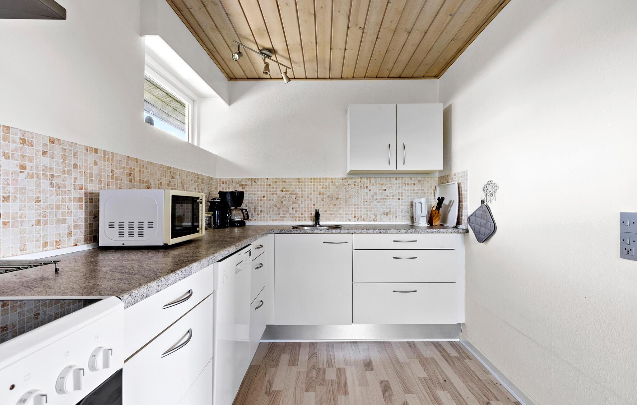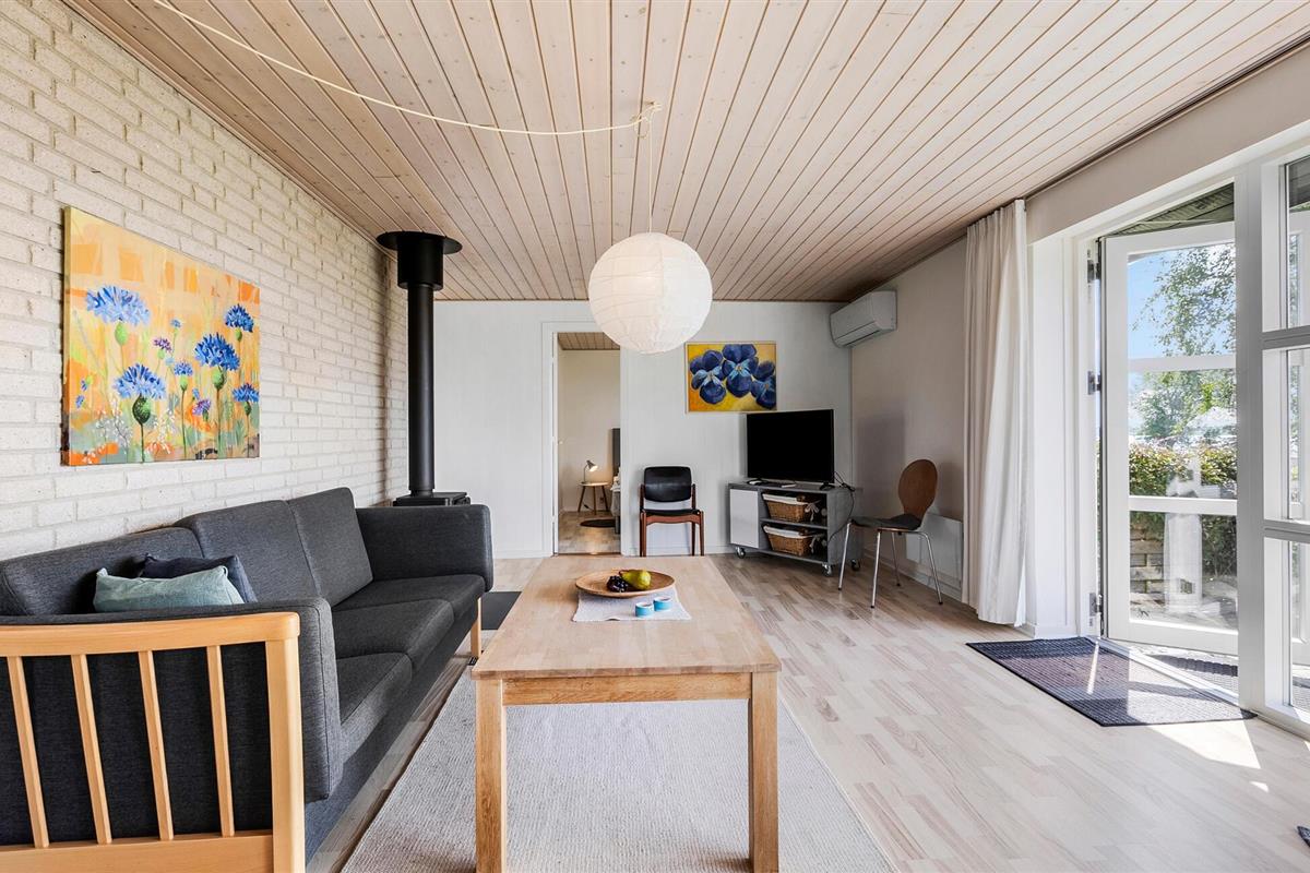 Rustig vakantiehuis aan het water in Sydals met open keuken, terras en panoramisch uitzicht.