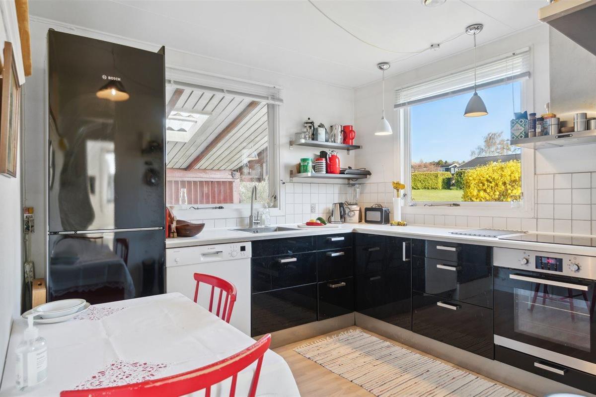 De vakantiewoning is gelegen op een 1527 m² groot natuural grond. Afstand tot de fjord 25 m. Er is een zwemsteiger in de buurt. Dichtstbijzijnde winkel 5600 m. Op zwoele avonden zorgt de buitenhaard voor een gezellige sfeer. Barbecue. Carport ter beschikking. Parkeerplaats bij het huis.