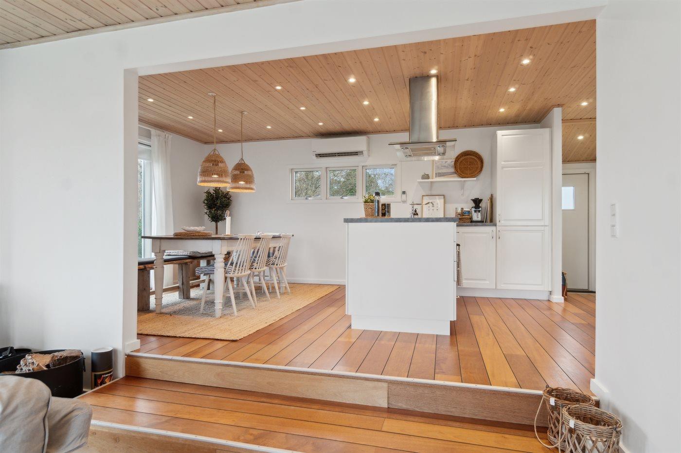 De vakantiewoning is gelegen op een 1343 m² groot aangelegde tuin. Afstand tot de fjord 175 m. Dichtstbijzijnde winkel 3900 m. Er is een golfbaan op een afstand van 11500 m. Bij de vakantiewoning hoort 35 m² terras. Barbecue. Carport ter beschikking. Parkeerplaats bij het huis.