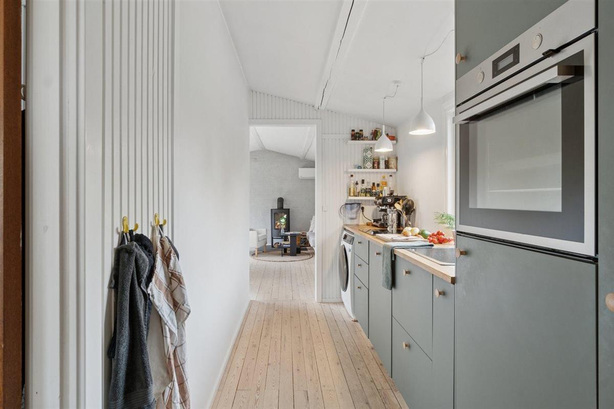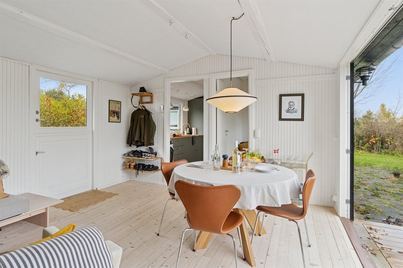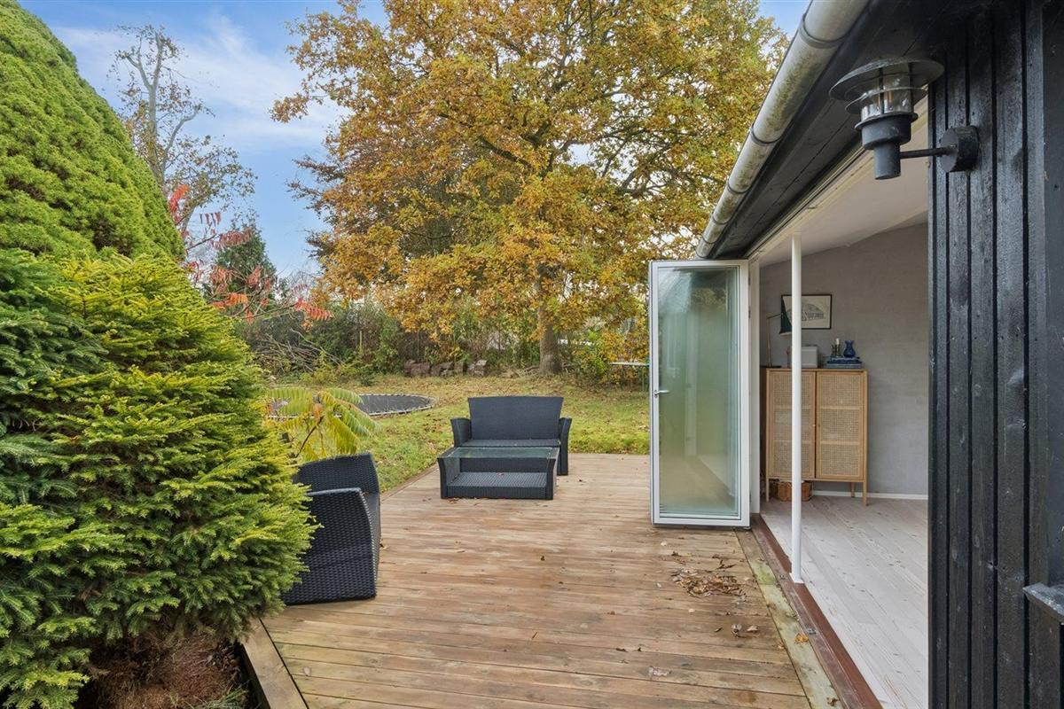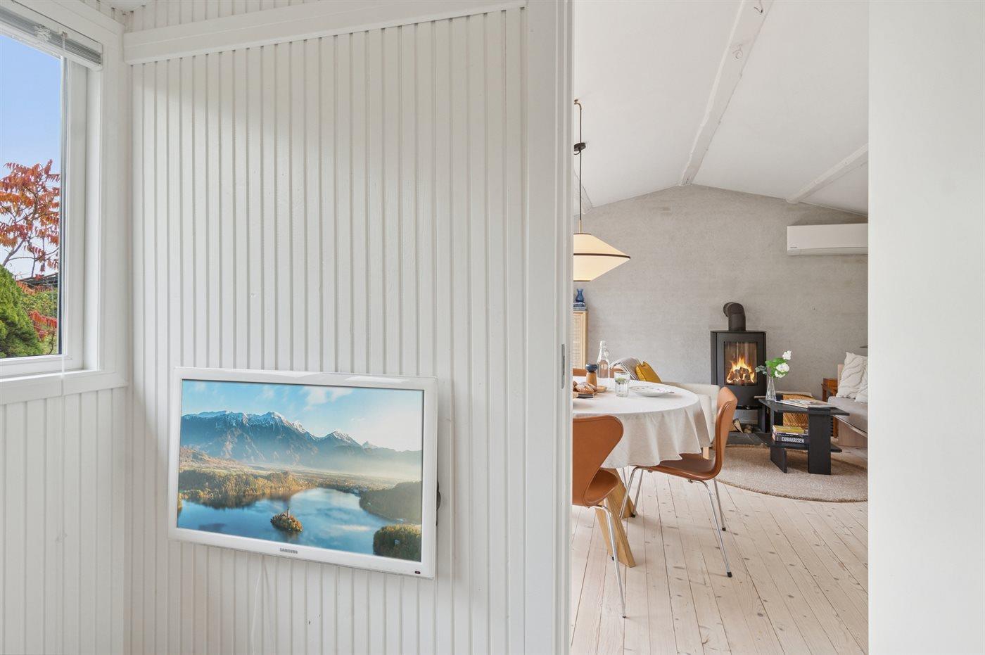 De vakantiewoning is gelegen op een 1222 m² groot aangelegde tuin. Afstand tot de fjord 300 m. Er is een zwemsteiger in de buurt. Dichtstbijzijnde winkel 4750 m. Er is een golfbaan op een afstand van 11600 m. Bij de vakantiewoning hoort 68 m² terras. Trampoline. Barbecue. Parkeerplaats bij het huis.