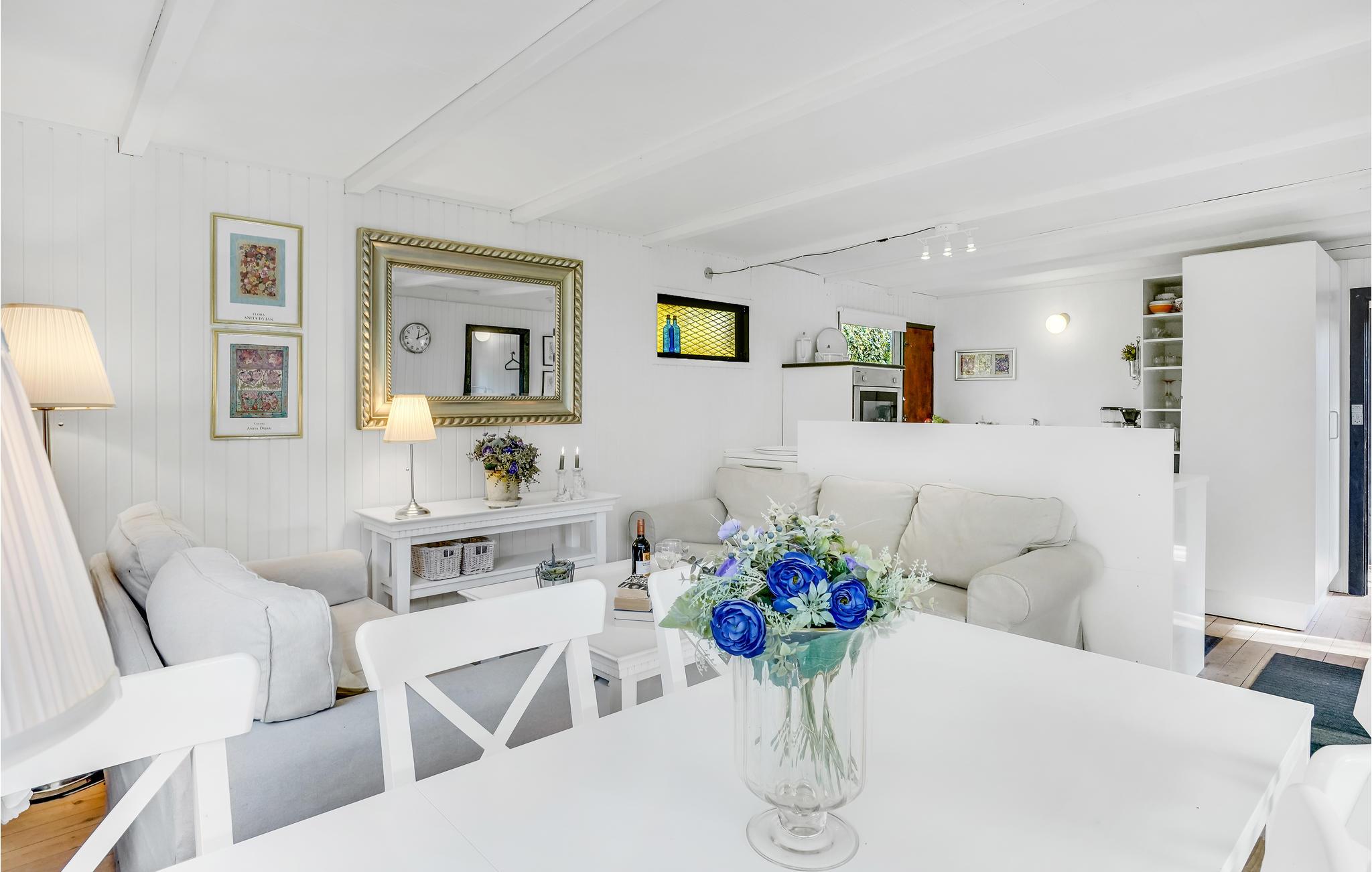 Dit charmante huis wacht op u in een gezellige vakantiehuis nederzetting. Het is zeer persoonlijk ingericht en laat u direct vanuit de woonkamer naar het terras gaan, dat overdekt is. Aan de andere kant is een ongestoord terras waar de zon de hele dag schijnt. U zult ook genieten van de tuin, die zeer groot is. Het Isefjord ligt op loopafstand en de omgeving is prachtig. Maak een tocht met uw eigen kano of koop een collectief ticket voor de vier veerboten die u op de fjord kunt nemen om het prachtige landschap vanaf het water te bewonderen. Op het schiereiland Hornsherred met het stadje Jægerspris nodigt de prachtige natuur met grote bossen en glooiende heuvels uit tot verfrissende wandelingen over de bewegwijzerde paden. Bij het mooie kasteel van Jægerspris vinden dagelijks rondleidingen plaats, en in Nordskoven, het bos bij Jægerspris, zijn meer dan 1000 jaar oude eiken te bewonderen. In het idyllische stadje Frederikssund worden jaarlijks Vikingspelen gehouden. Ook golfliefhebbers komen aan hun trekken, want Frederikssund heeft een 18-holes golfbaan. Kopenhagen ligt op slechts 50 km afstand, met vele bezienswaardigheden en amusement, zoals Tivoli, Zoo, Planetarium, Experimentarium en vele interessante musea.