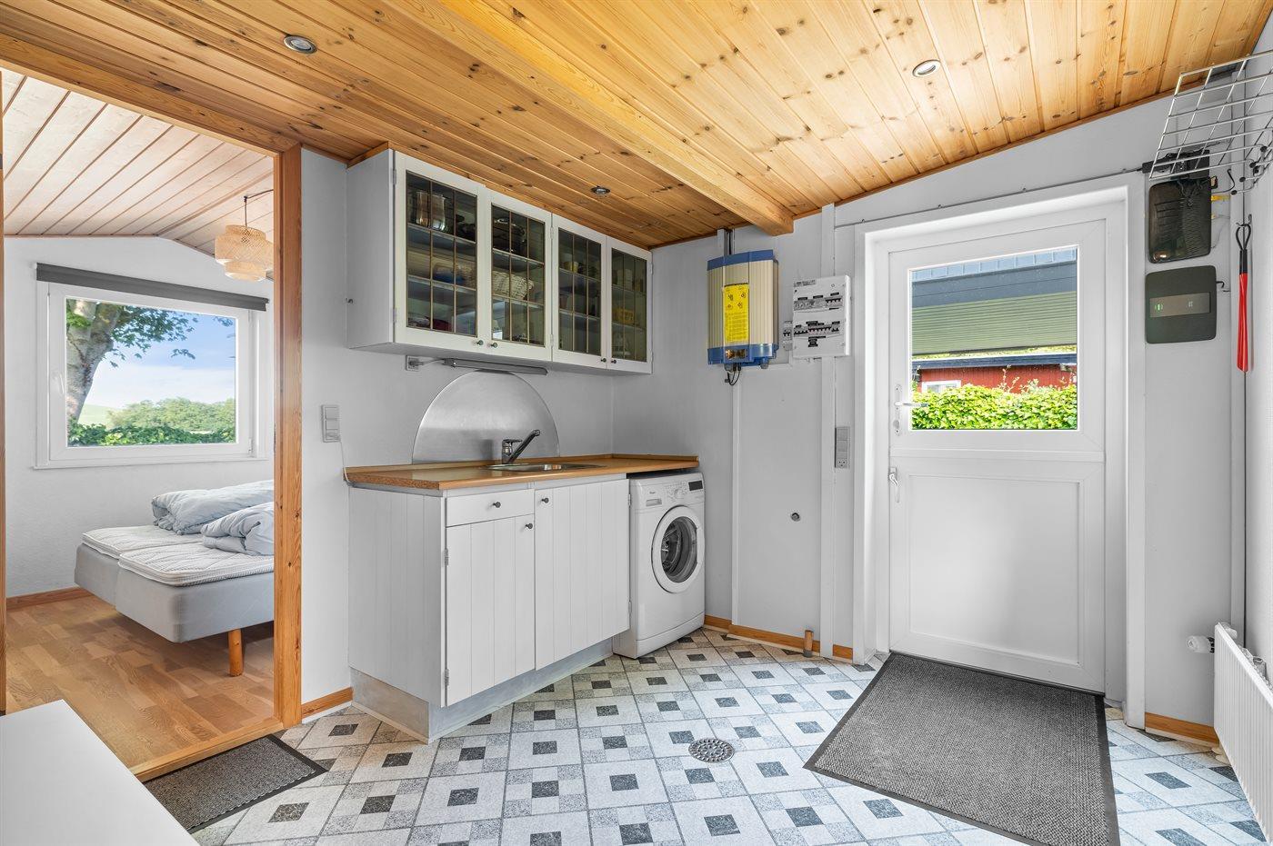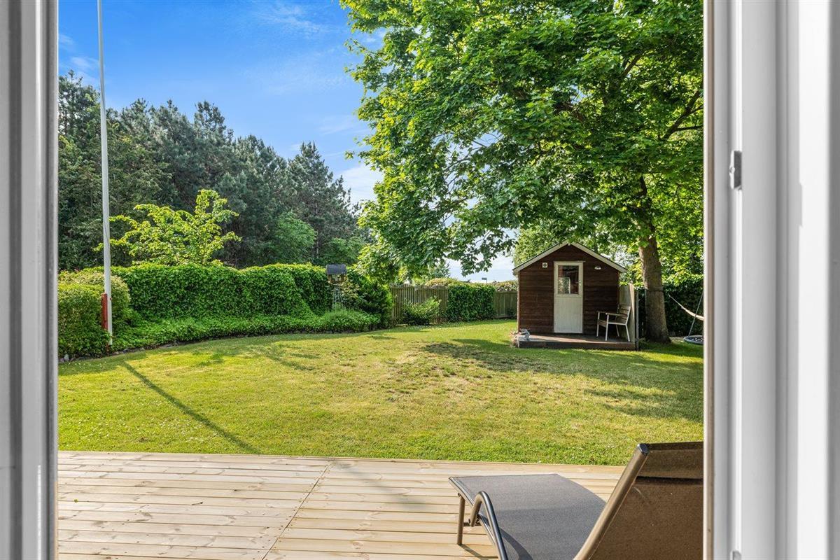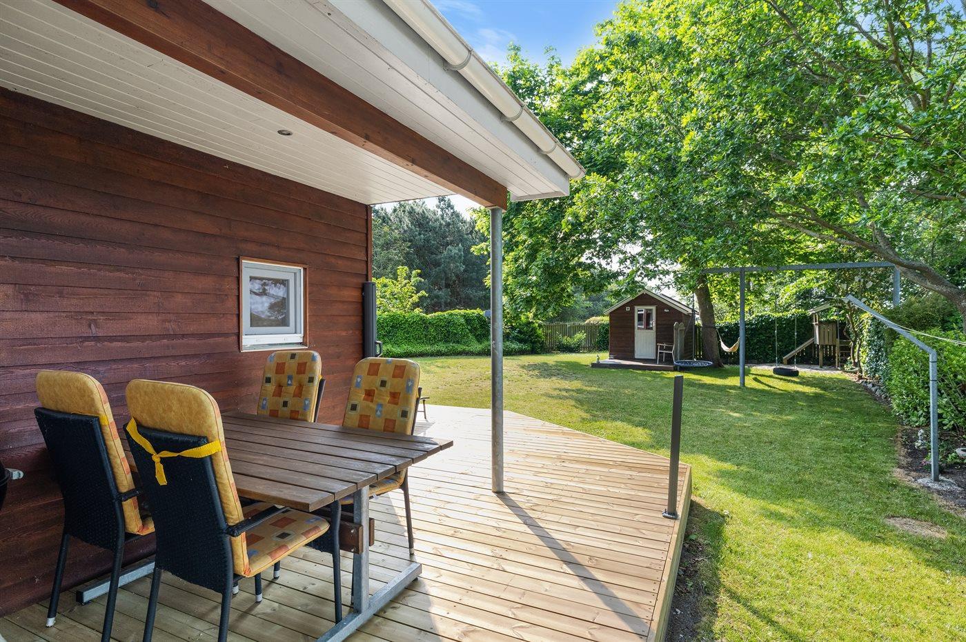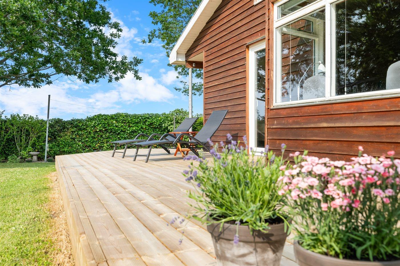 De vakantiewoning is gelegen op een 824 m² groot aangelegde tuin. De grond is omheind. Afstand tot de zee 150 m. Dichtstbijzijnde winkel 6400 m. Bij de vakantiewoning hoort terras. Daarnaast is er een overdekt terras. Schommel. Speeltoren. Glijbaan.Vuurplaats. Buitendouche. Barbecue. Parkeerplaats bij het huis.