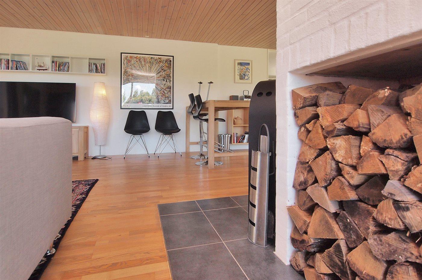 De vakantiewoning is gelegen op een 1200 m² groot natuural grond. De grond is omheind. Afstand tot de zee 5000 m. Afstand tot de fjord 250 m. Dichtstbijzijnde winkel 6000 m. Daarnaast is er een 44 m² groot overdekt terras. Bij de vakantiewoning hoort terras. Gereedschapsruimte. Schommel. Trampoline. Glijbaan. Barbecue. Carport ter beschikking. Parkeerplaats bij het huis.