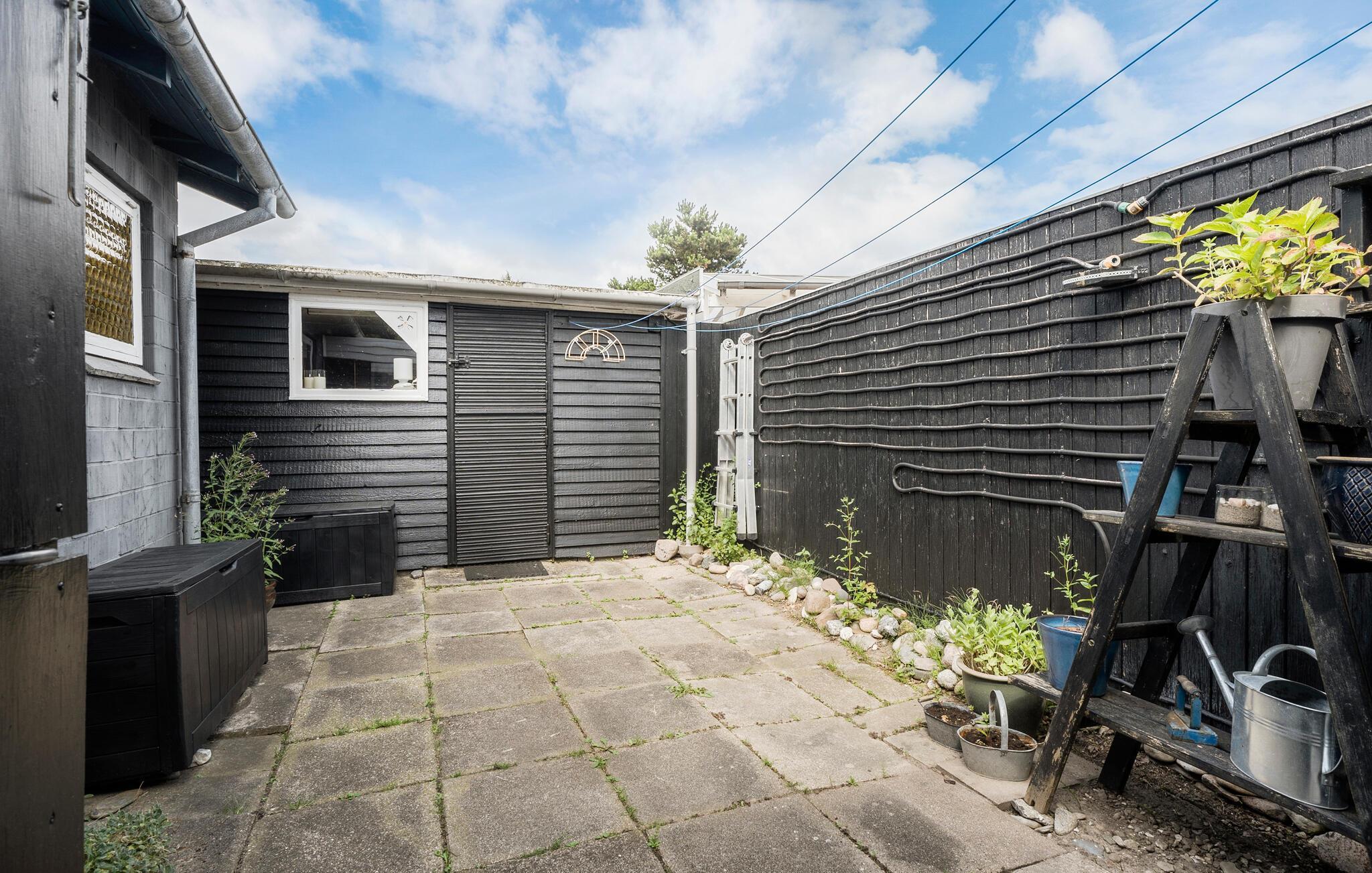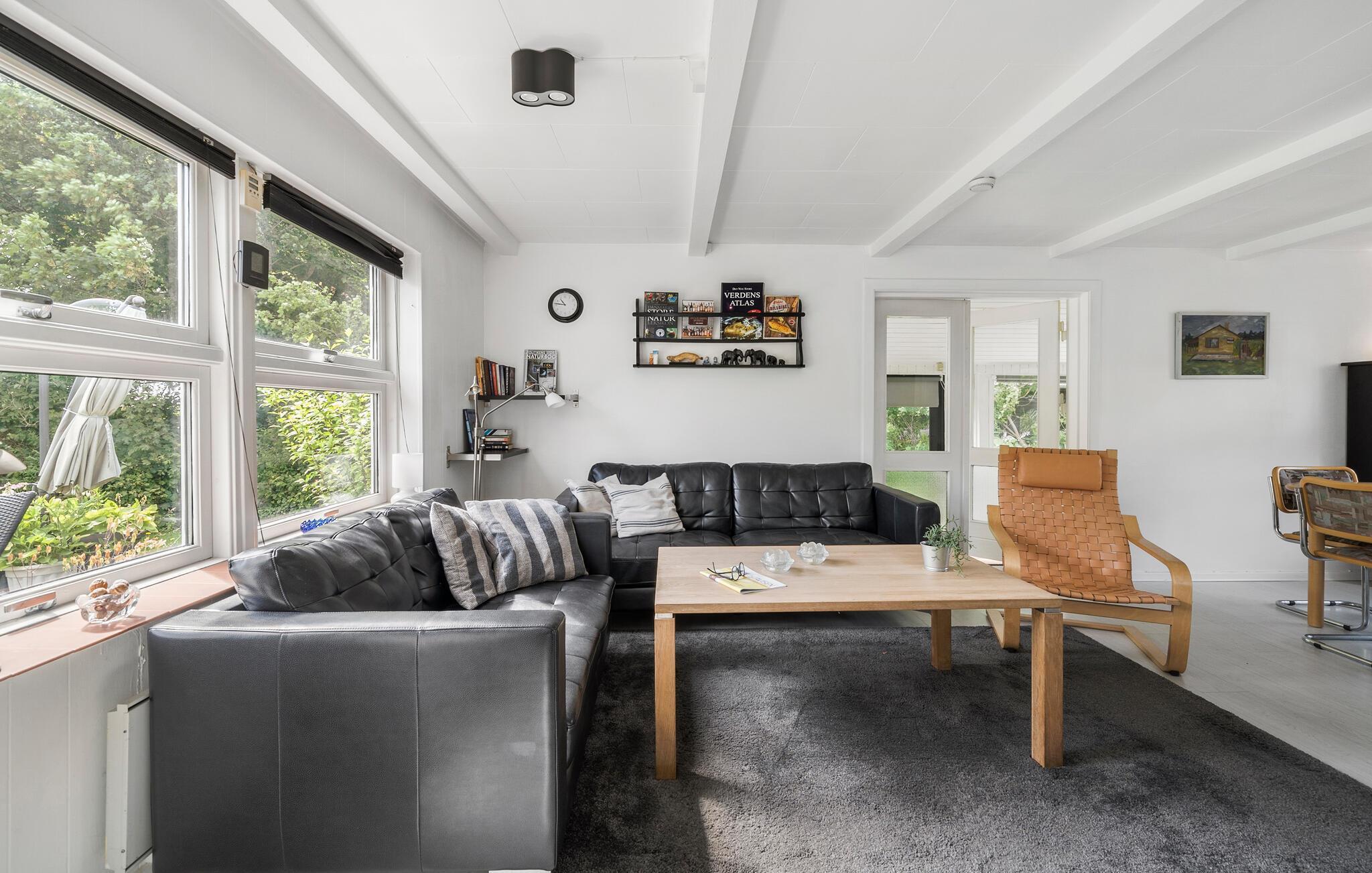 Ontdek dit gezellige houten vakantiehuis nabij Langø Strand met tuin, terras, vuurplaats en directe toegang tot het strand.