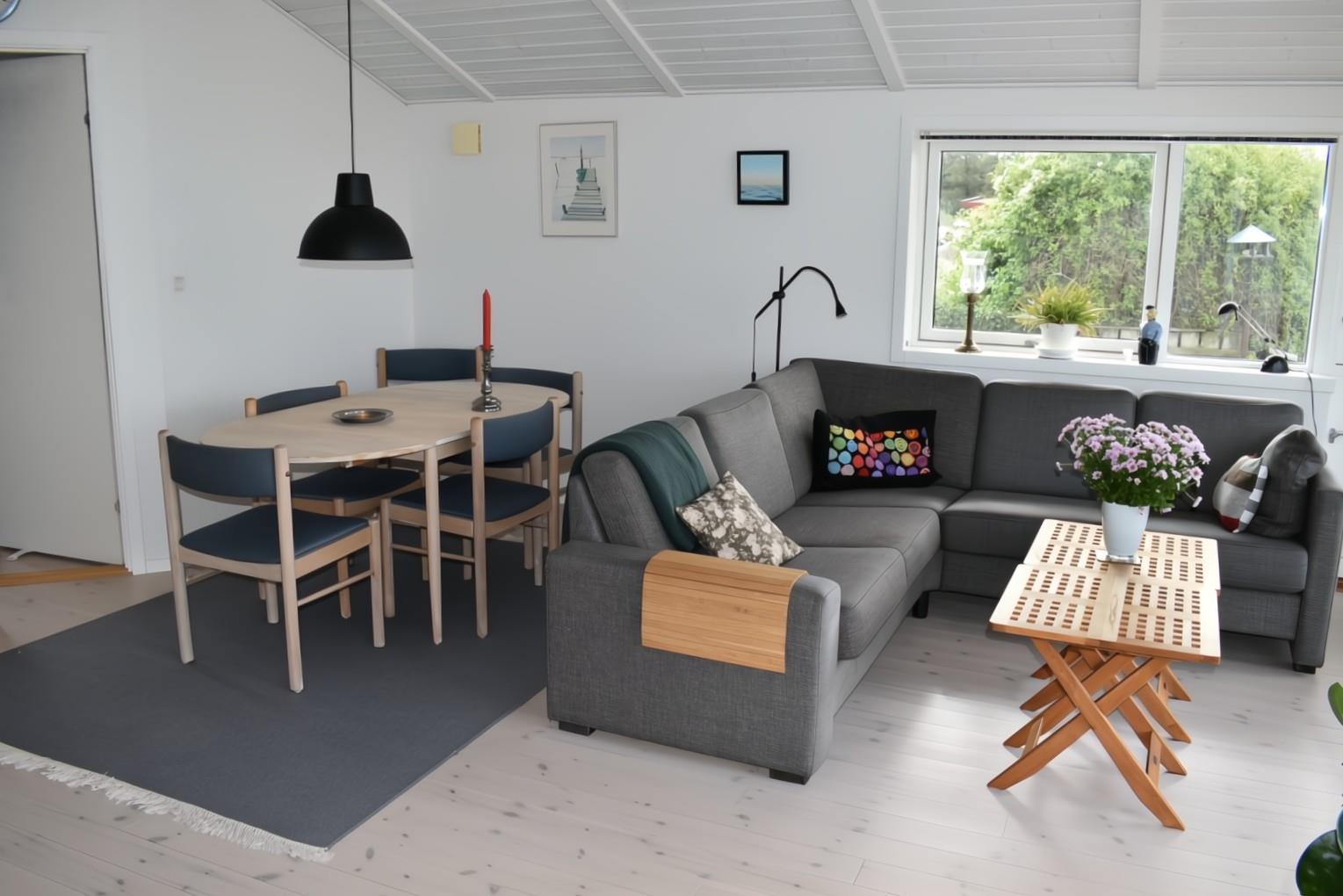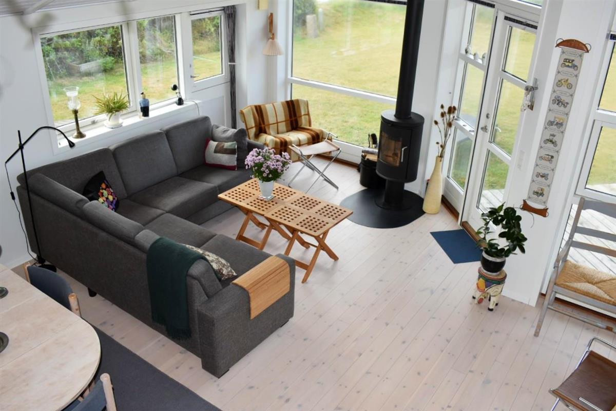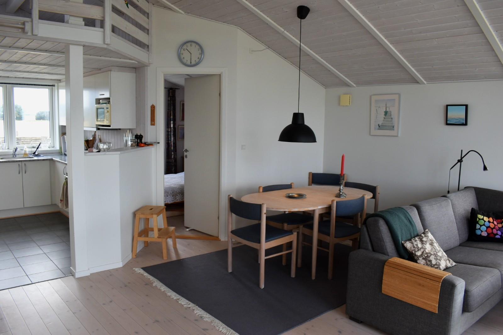 Het zomerhuis is licht en modern ingericht met twee comfortabele slaapkamers, elk met een tweepersoonsbed (140 cm en 160 cm), een badkamer met wasmachine en een volledig uitgeruste keuken die in open verbinding staat met de gezellige woonkamer. Vanuit hier geniet u van prachtig uitzicht over het water – zowel vanaf de bank als vanuit één van de slaapkamers. De woonkamer is bovendien uitgerust met een houtkachel voor extra sfeer op koelere avonden, een energiezuinige warmtepomp en een slaapzolder met één matras. Er zijn geen traditionele tv-kanalen, maar met de TV en Chromecast kun je streamen vanaf je telefoon of iPad. Er is vloerverwarming in de badkamer, gang en keuken.