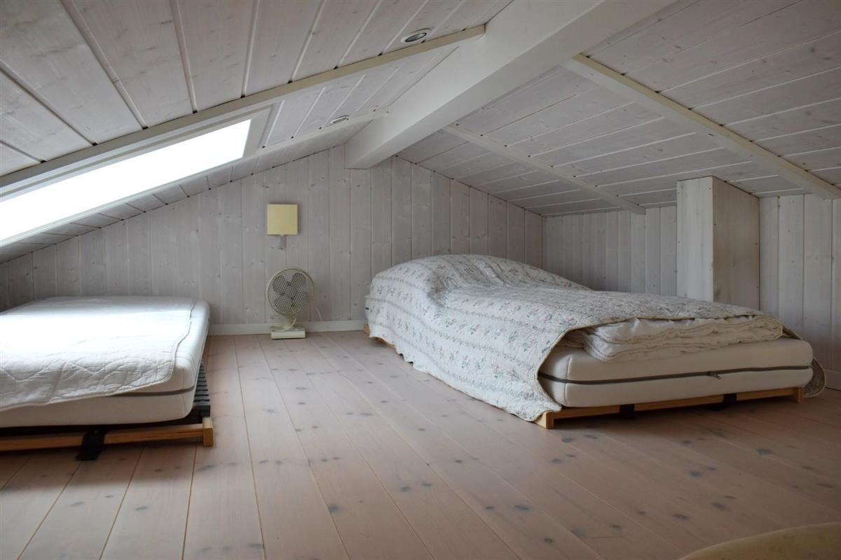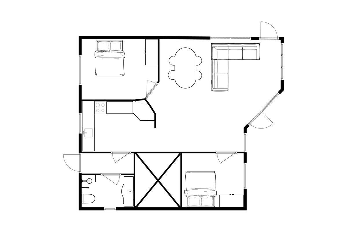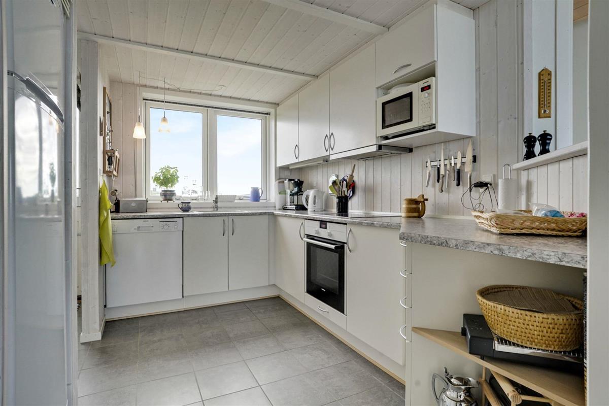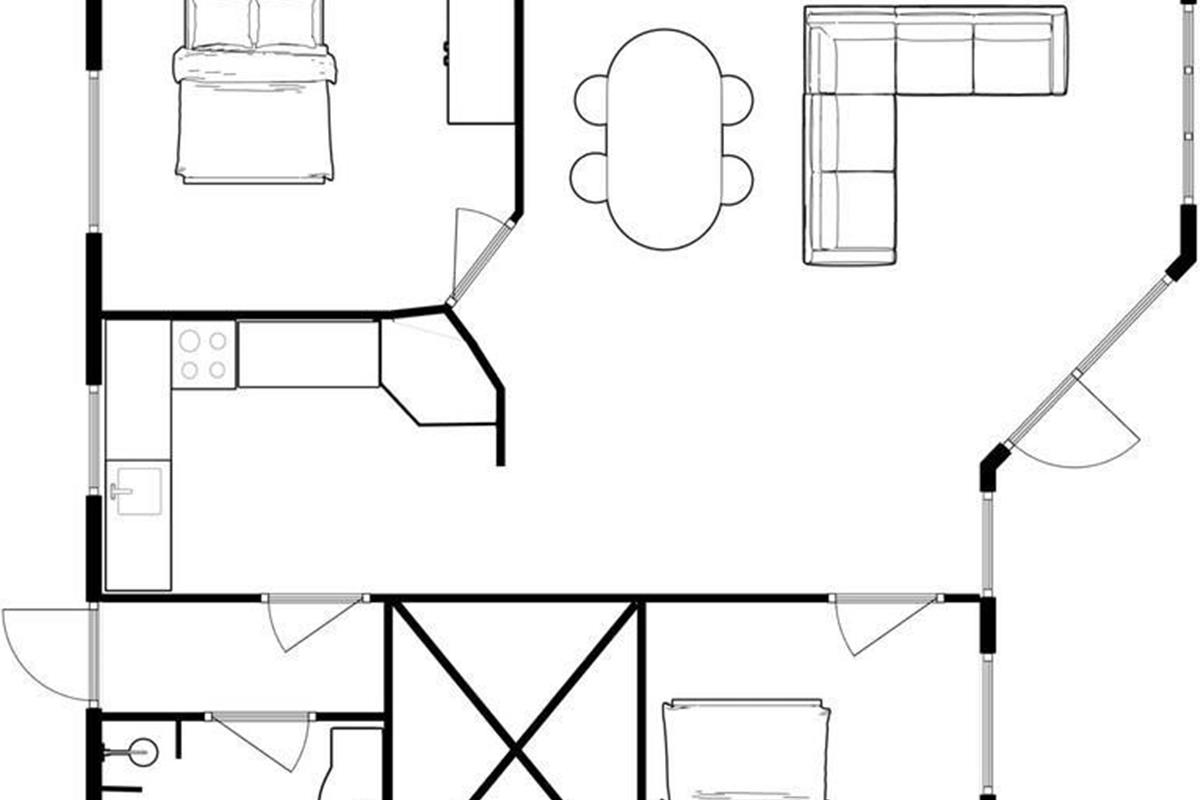 Het zomerhuis is licht en modern ingericht met twee comfortabele slaapkamers, elk met een tweepersoonsbed (140 cm en 160 cm), een badkamer met wasmachine en een volledig uitgeruste keuken die in open verbinding staat met de gezellige woonkamer. Vanuit hier geniet u van prachtig uitzicht over het water – zowel vanaf de bank als vanuit één van de slaapkamers. De woonkamer is bovendien uitgerust met een houtkachel voor extra sfeer op koelere avonden, een energiezuinige warmtepomp en een slaapzolder met één matras. Er zijn geen traditionele tv-kanalen, maar met de TV en Chromecast kun je streamen vanaf je telefoon of iPad. Er is vloerverwarming in de badkamer, gang en keuken.