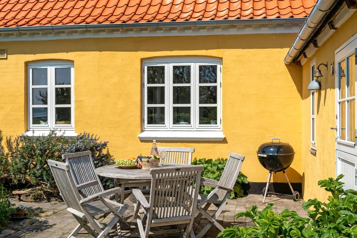 Ontdek dit moderniseerde vakantiehuis met zeezicht, open haard en ruime tuin op het groene eiland Samsø.