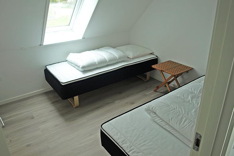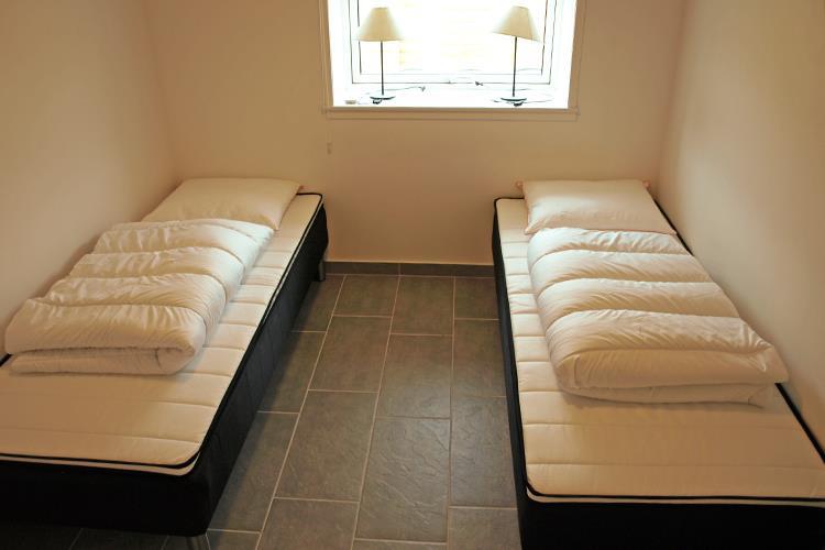 The house has a total of 8 single beds + a cot. The beds are divided into 3 bedrooms with 2 single beds each, and two single beds in a corner in the living room.