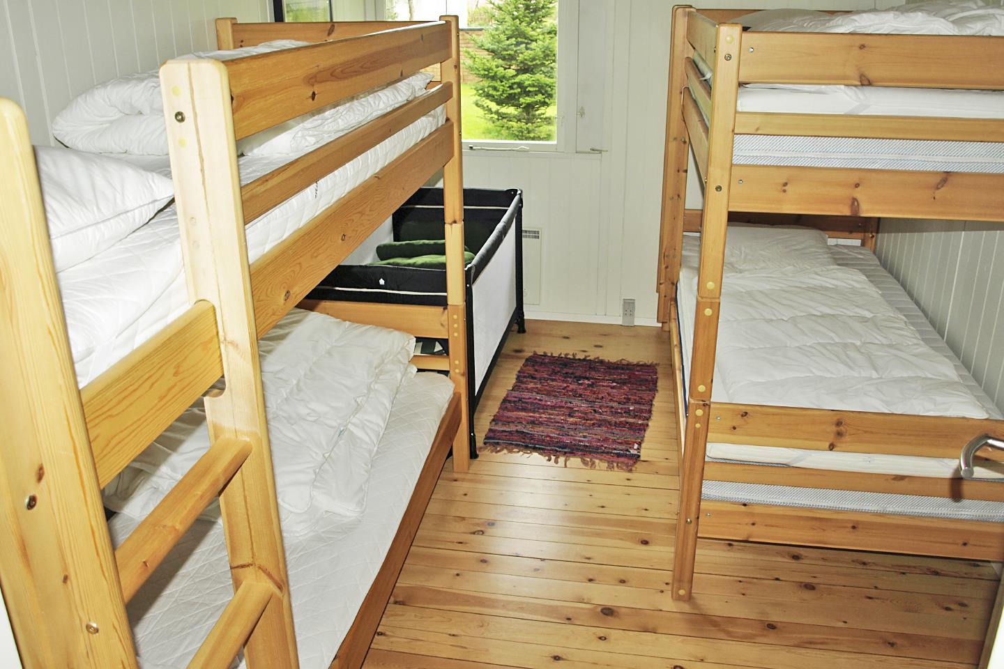 The house has 2 bedrooms with 2 double beds. Additionally, there is a sofa bed that sleeps 2. The bathroom has underfloor heating.