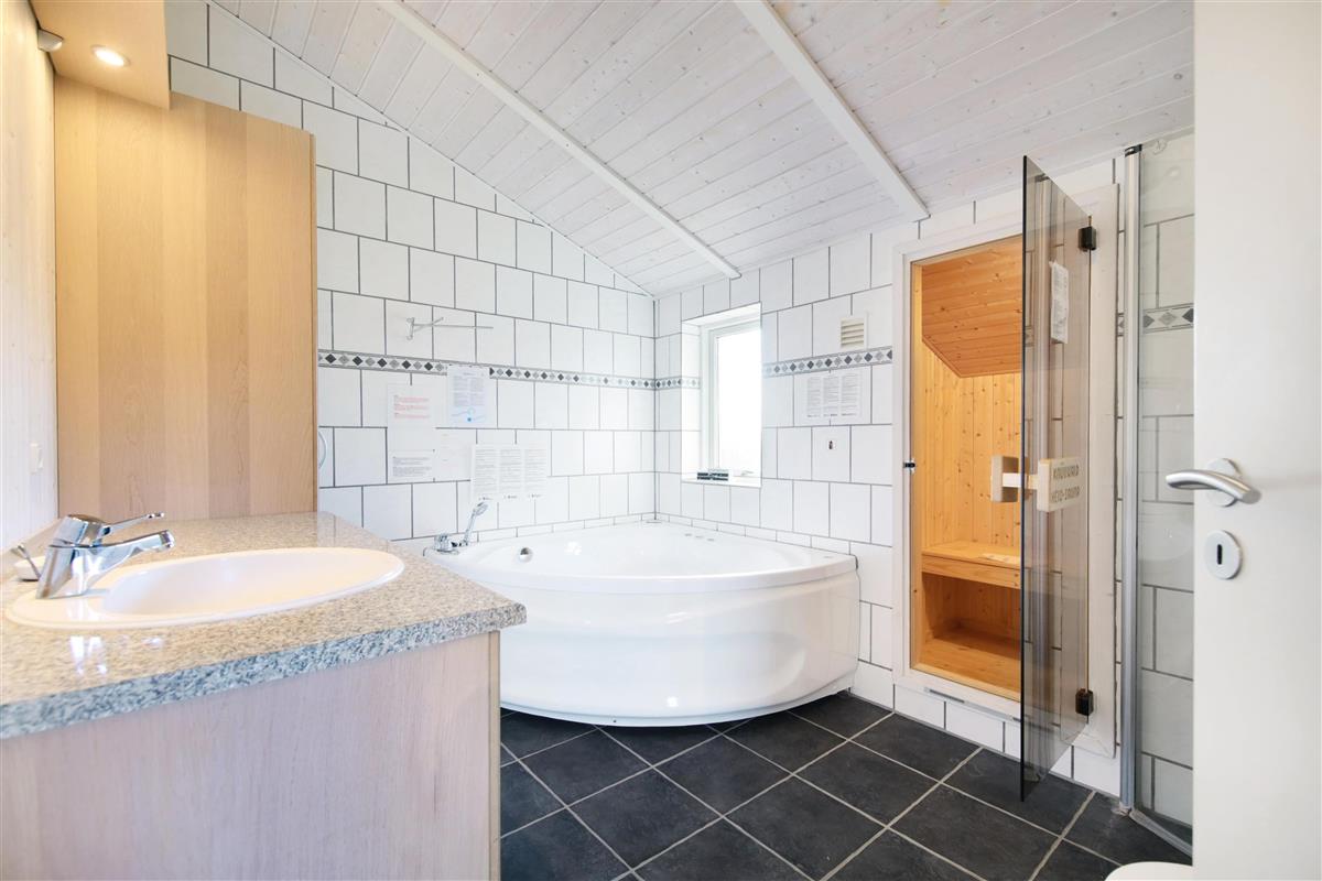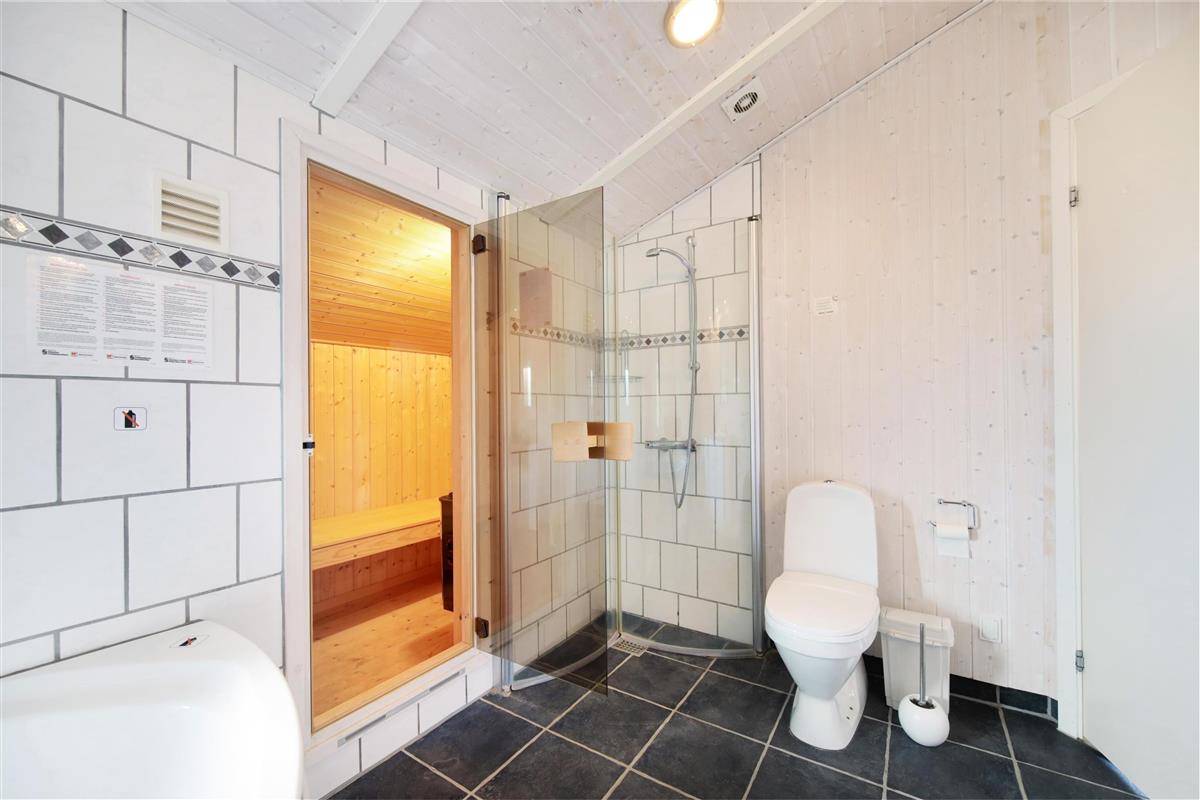 Lovely holiday home on a beautiful nature plot with a lovely wooden terrace, only 300 meters from the water. There is both a spa and a sauna. One pet is welcome.