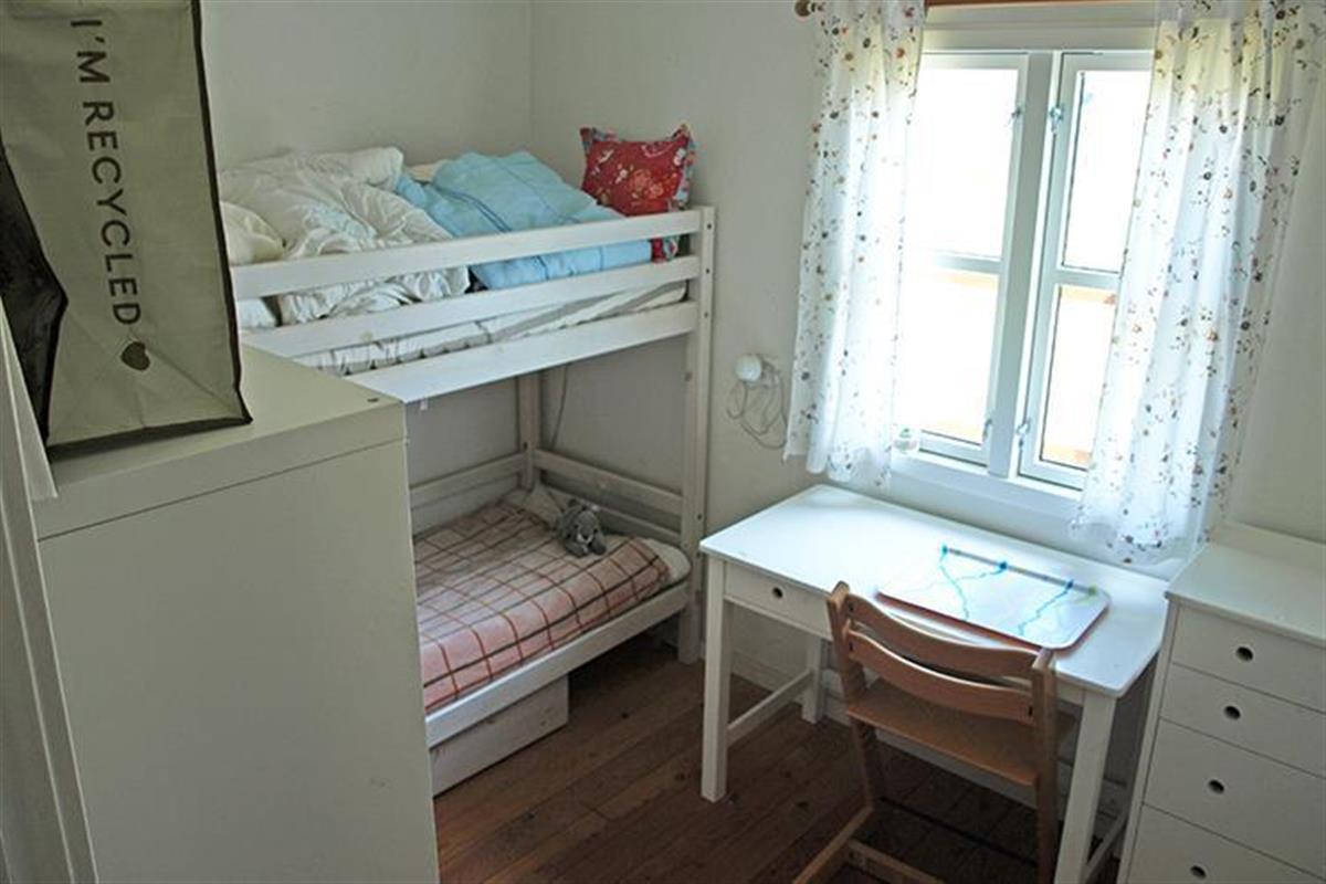 Here are 2 bedrooms. One is furnished with a double bed (two single beds placed together) and the other is furnished with a bunk bed with two sleeping places. Here there is also a small workplace with room for a PC.