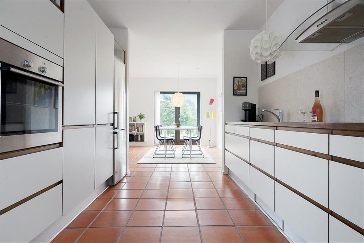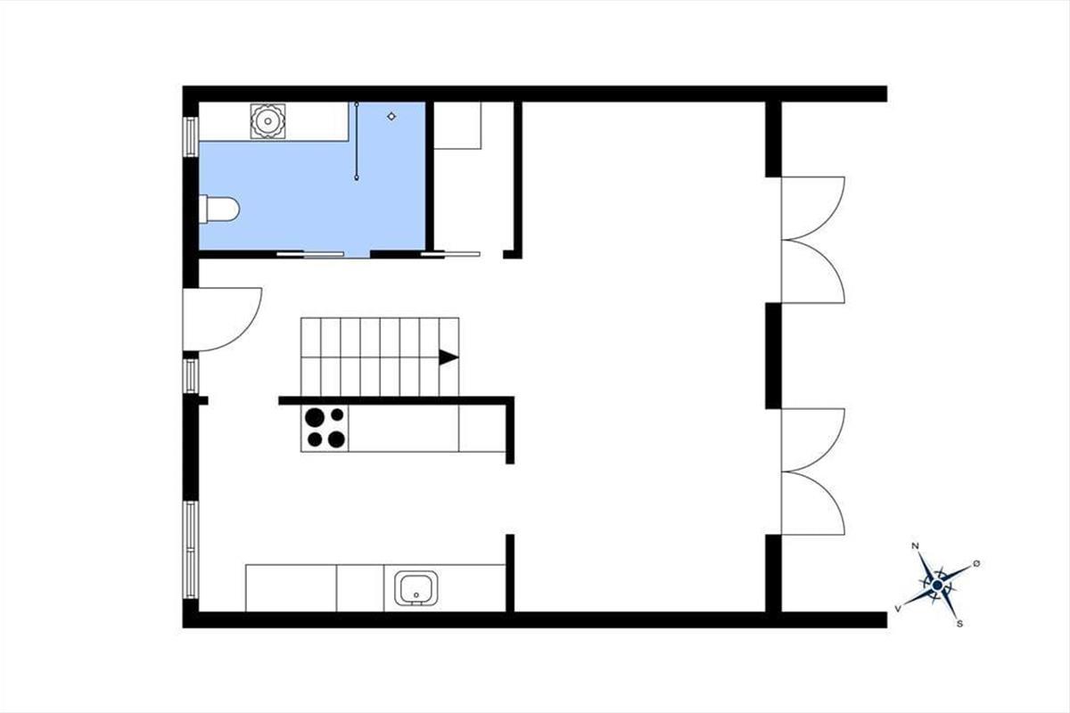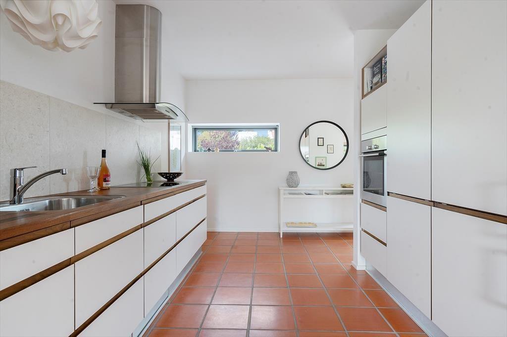 Die Küche ist offen mit dem Eingangs- und Essbereich sowie dem Wohnzimmer verbunden und gut ausgestattet mit Kühl-/Gefrierschrank, Geschirrspüler, Backofen und Herd. Du wirst es einfach finden, hier alle Ferienmahlzeiten zuzubereiten, die dann am Esstisch genossen werden können, an dem genügend Platz für alle Gäste vorhanden ist. Im Wohnbereich, beim Esstisch gibt es große Glastüren, die dir direkten Zugang zur Terrasse bieten. Die großen Fensterpartien lassen zudem viel Licht in die Küche. Es bietet sich auch an, bei schönem Wetter die Mahlzeiten im Freien einzunehmen.