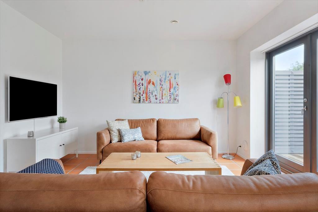 In Verbindung mit dem Esstisch gibt es zwei Sofas, auf denen ihr gemeinsam Spiele spielen oder Filme auf dem an der Wand montierten Fernseher mit Chromecast und dänischen Sendern genießen könnt. Die Ferienwohnung verfügt auch über einen kostenlosen Internetzugang.