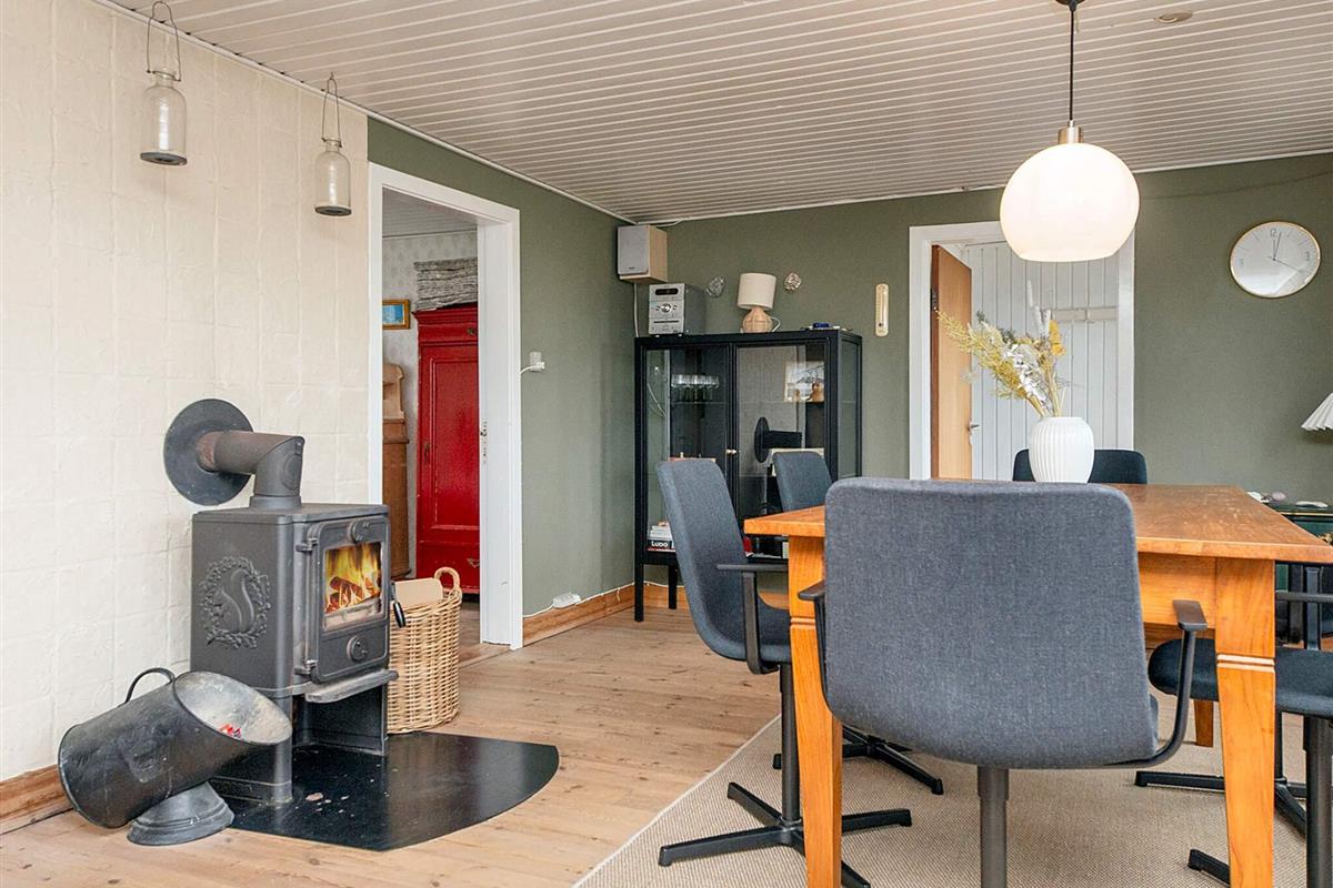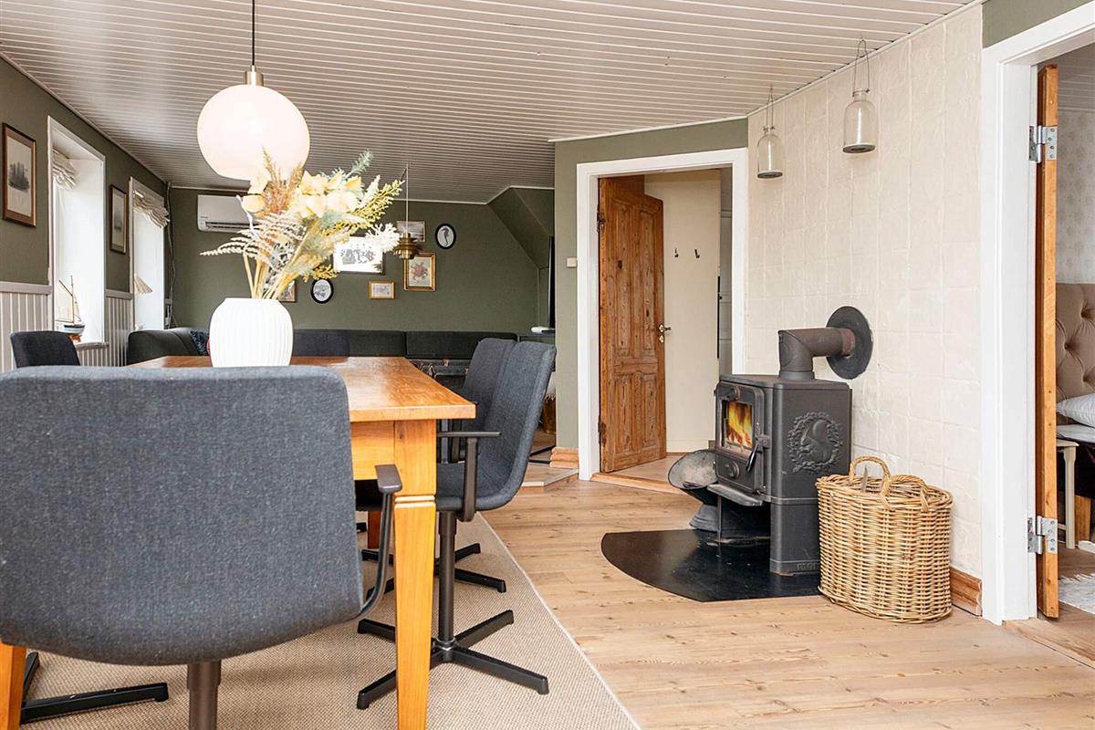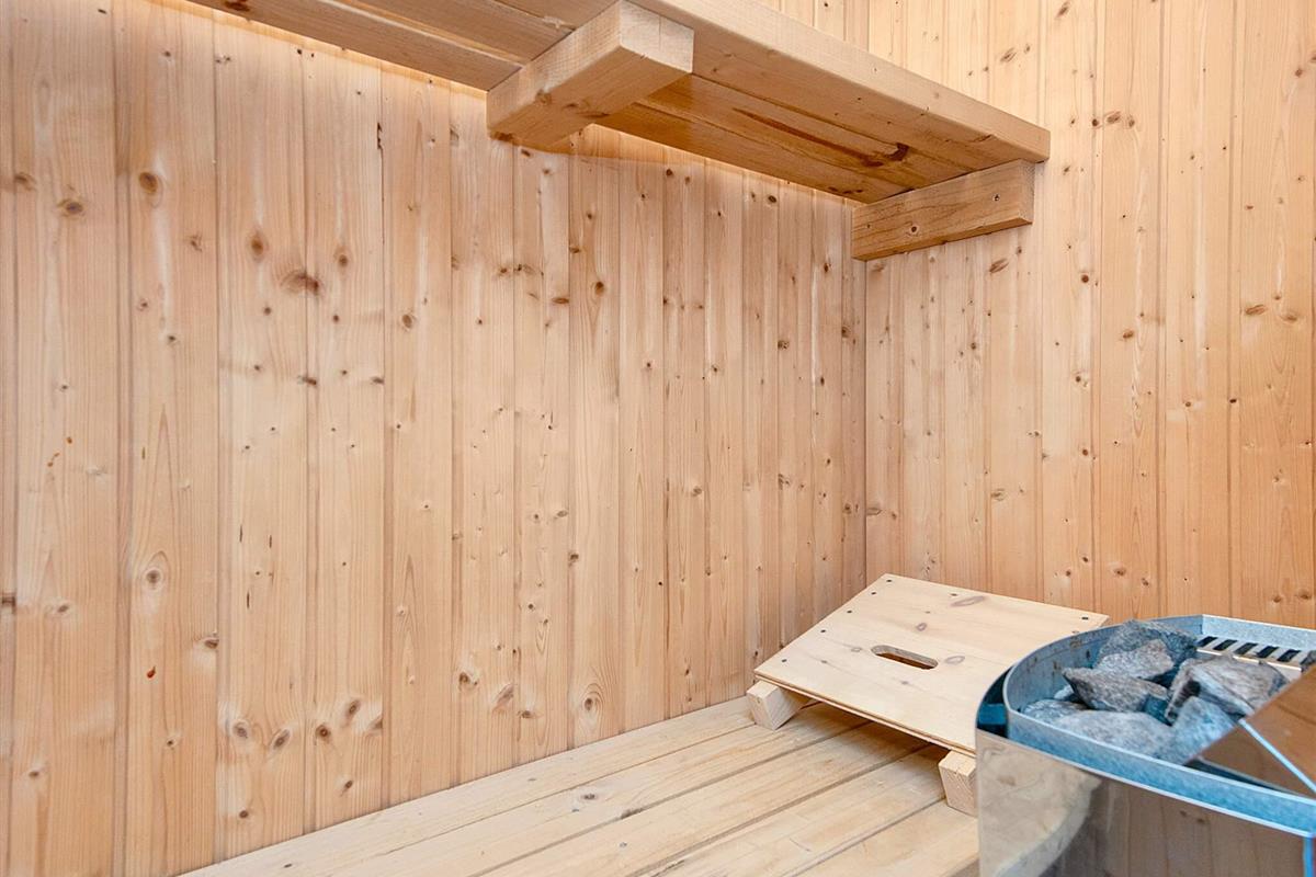 Im Inneren des massiven Hauses gibt es einen gemütlichen Wohn-/Essbereich mit Kaminofen. Im TV stehen auch einige deutsche Sender zur Auswahl, zudem gibt es eine schnelle Internetverbindung im Haus zum Downloaden und Streamen. Zur Küchenausstattung gehören u.a. Cerankochfeld, Dunstabzugshaube, separater Backofen mit Grill und Kühlschrank. Es gibt zudem zwei Schlafzimmer im Erdgeschoss, beide mit jeweils zwei Schlafplätzen. Großes, helles Badezimmer mit Badewanne, Dusche, Fußbodenheizung, Whirlpool für 2 Personen und Zugang zur hauseigenen Sauna. Das Haus hat auch eine Waschmaschine und einen Trockner. Im Dachgeschoss befindet sich ein großer, offener Schlaf-/Aufenthaltsbereich. Im Außenbereich findet man eine teilweise abgeschirmte Terrassenfläche mit Gartenmöbeln und Grill, auf der Sie die Sonnentage und Grillabende genießen können. Dank der Wärmepumpe im Haus, halten sich die Energiekosten in Grenzen.