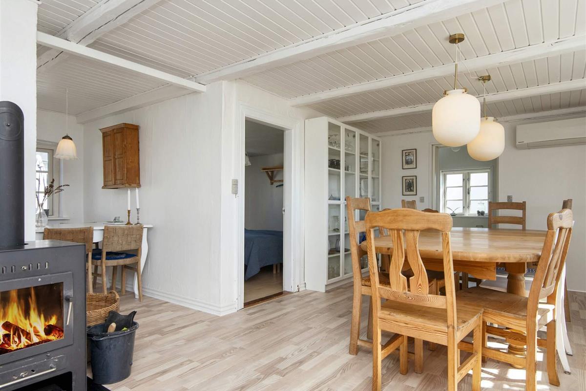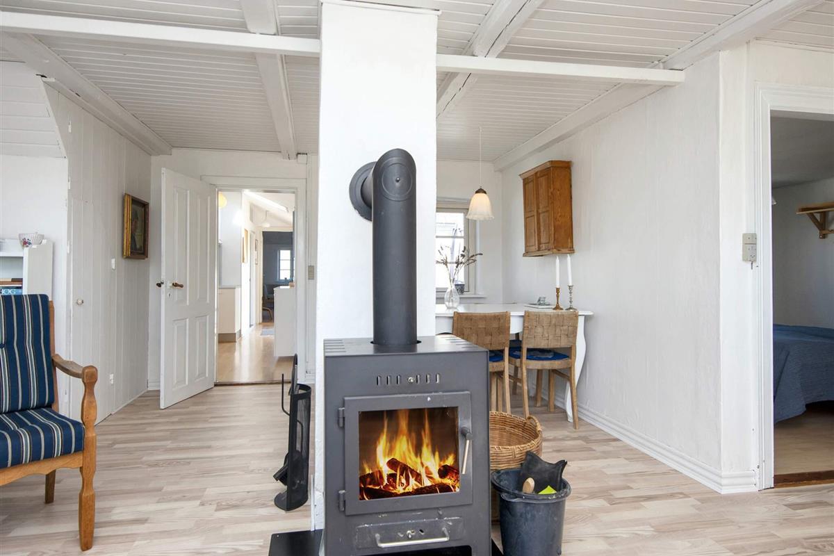 Das Wohnzimmer ist mit bequemen Möbeln, kostenlosem Highspeed-Internet und einem Flachbildfernseher mit deutschen und dänischen Sendern, darunter TV2, ausgestattet. Für kühle Sommerabende oder verregnete Herbstabende steht ein Holzofen zur Verfügung.