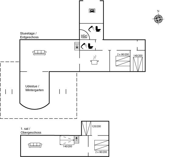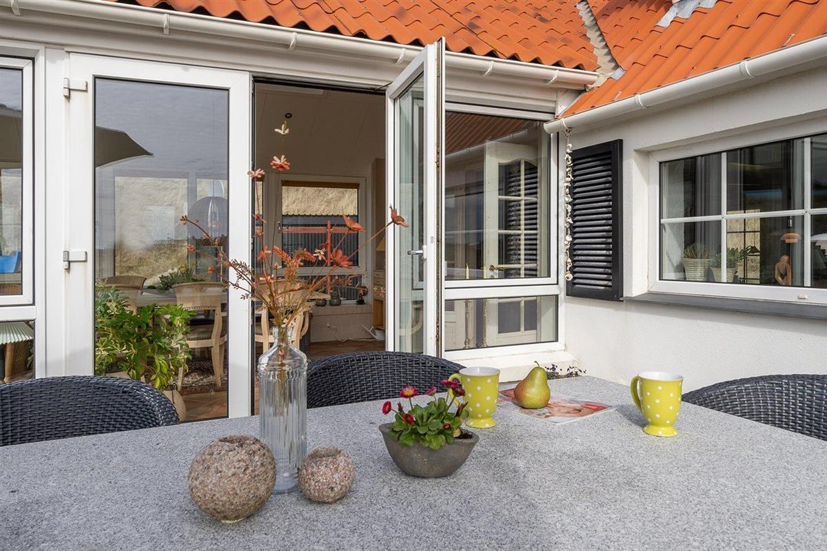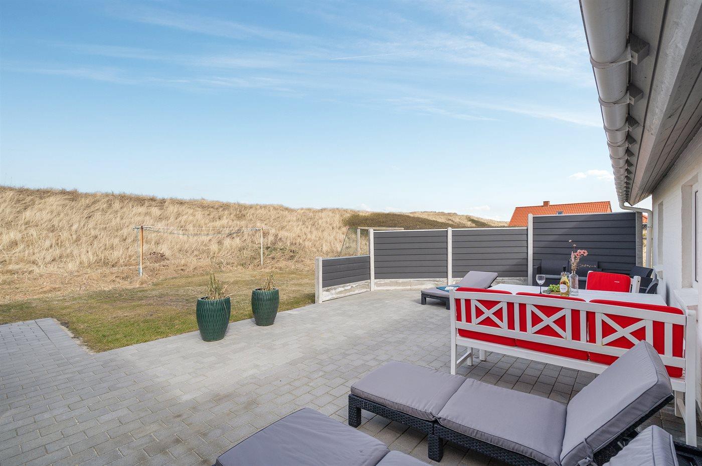 De vakantiewoning is gelegen op een 1250 m² groot natuural grond. Afstand tot de zee 75 m. Dichtstbijzijnde winkel 500 m. Bij de vakantiewoning hoort 70 m² terras. Gereedschapsruimte. Schommel. Zandbak. Speelhuisje. Parkeerplaats bij het huis.