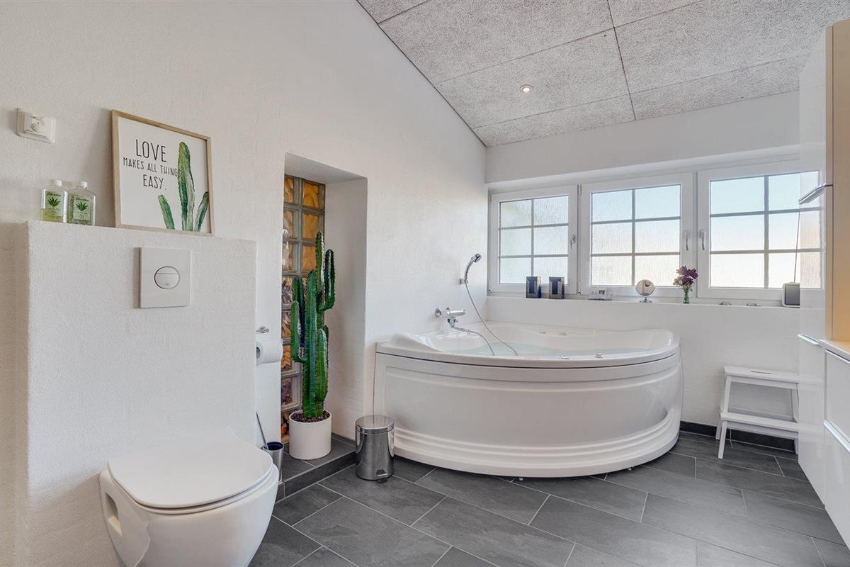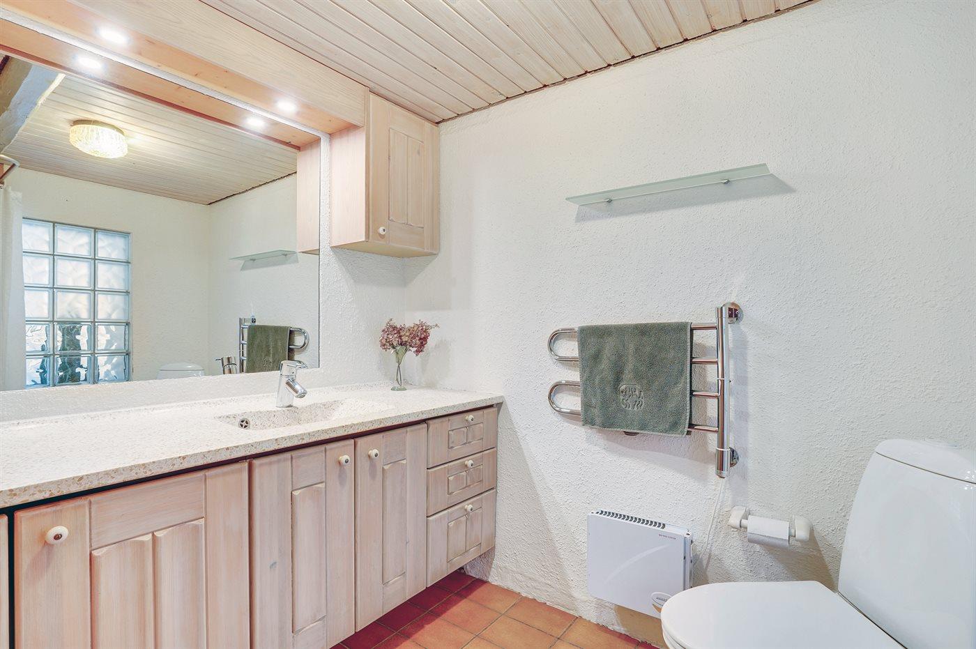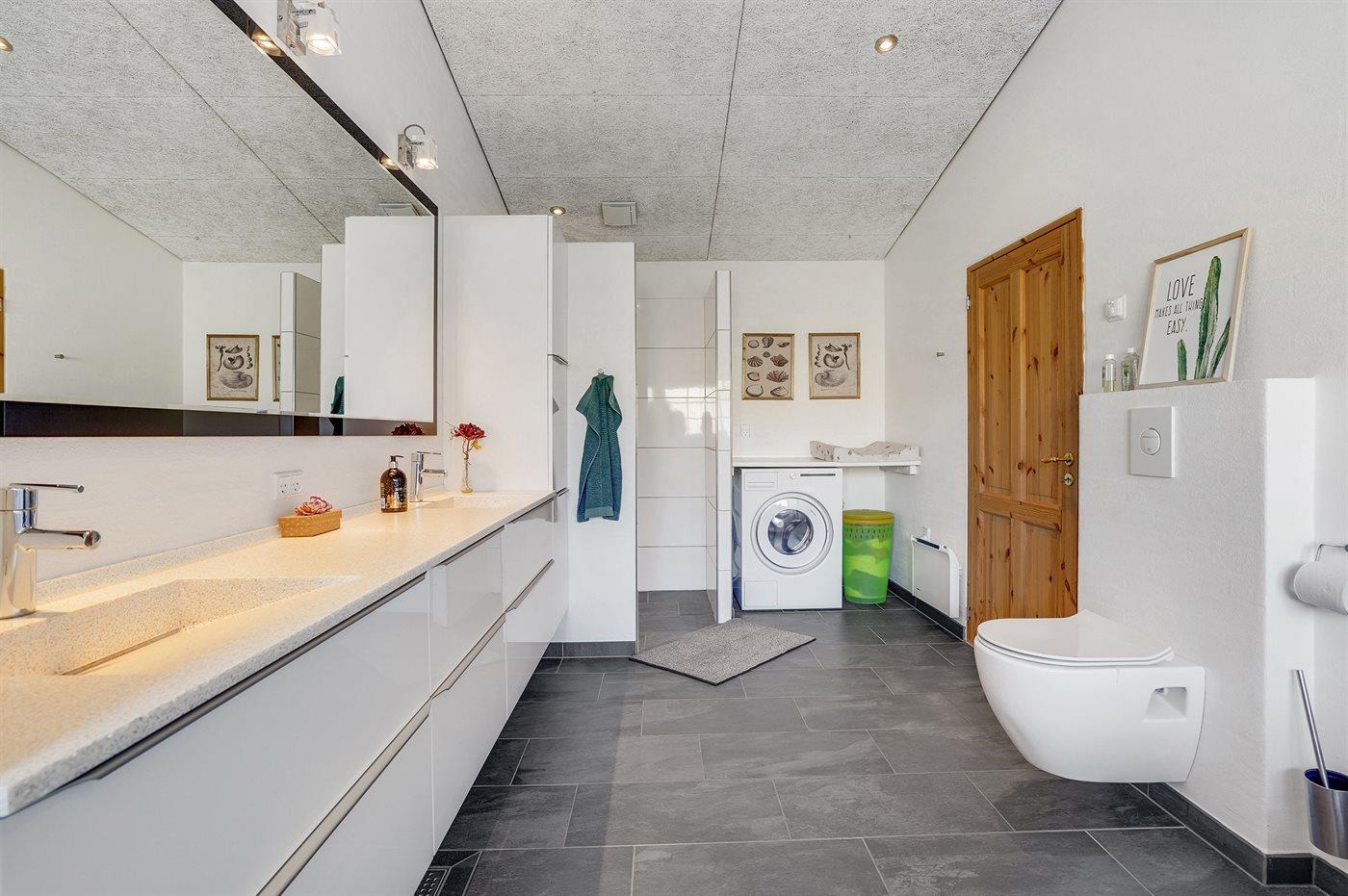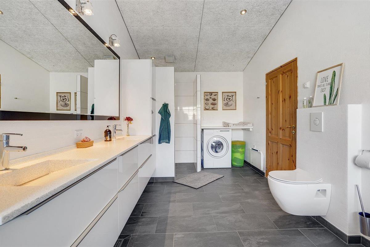 Er is 2 badkamers met douchehok en 2 toiletten. Er is vloerverwarming in 2 van de badkamers.