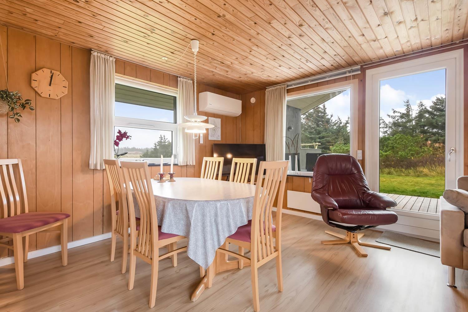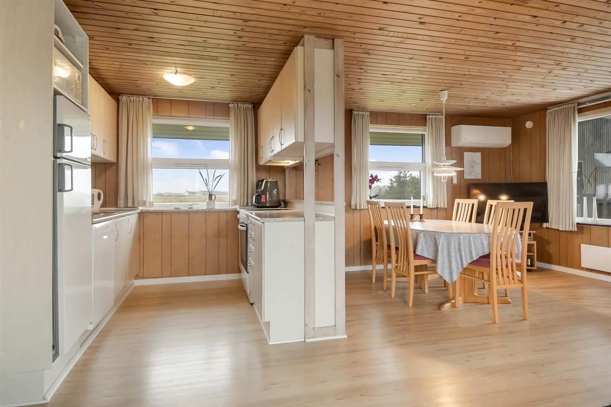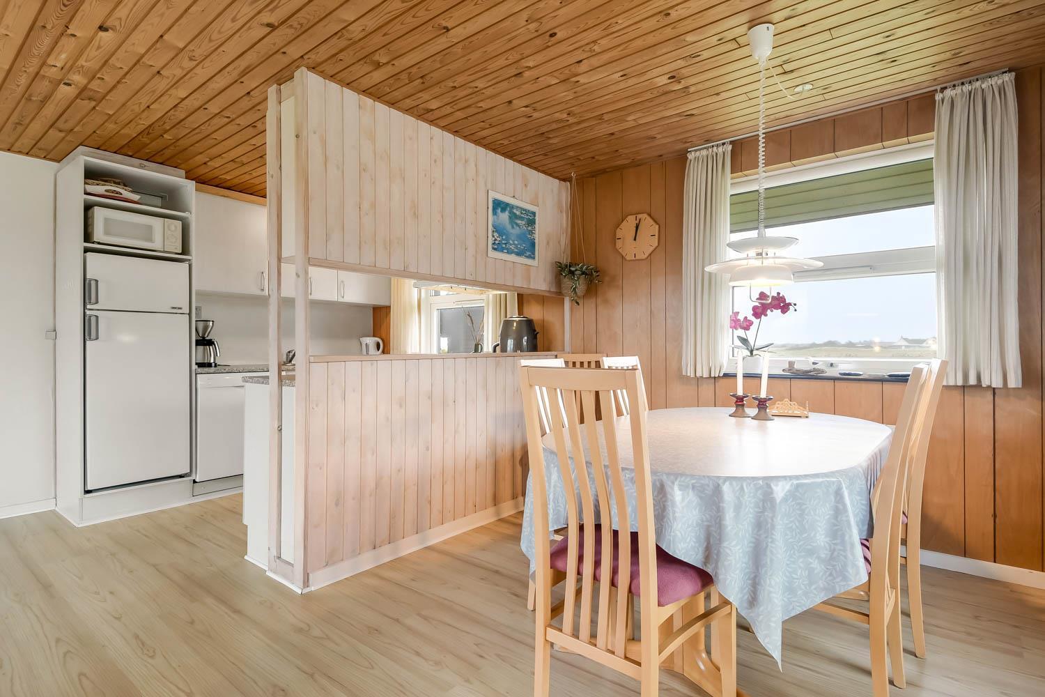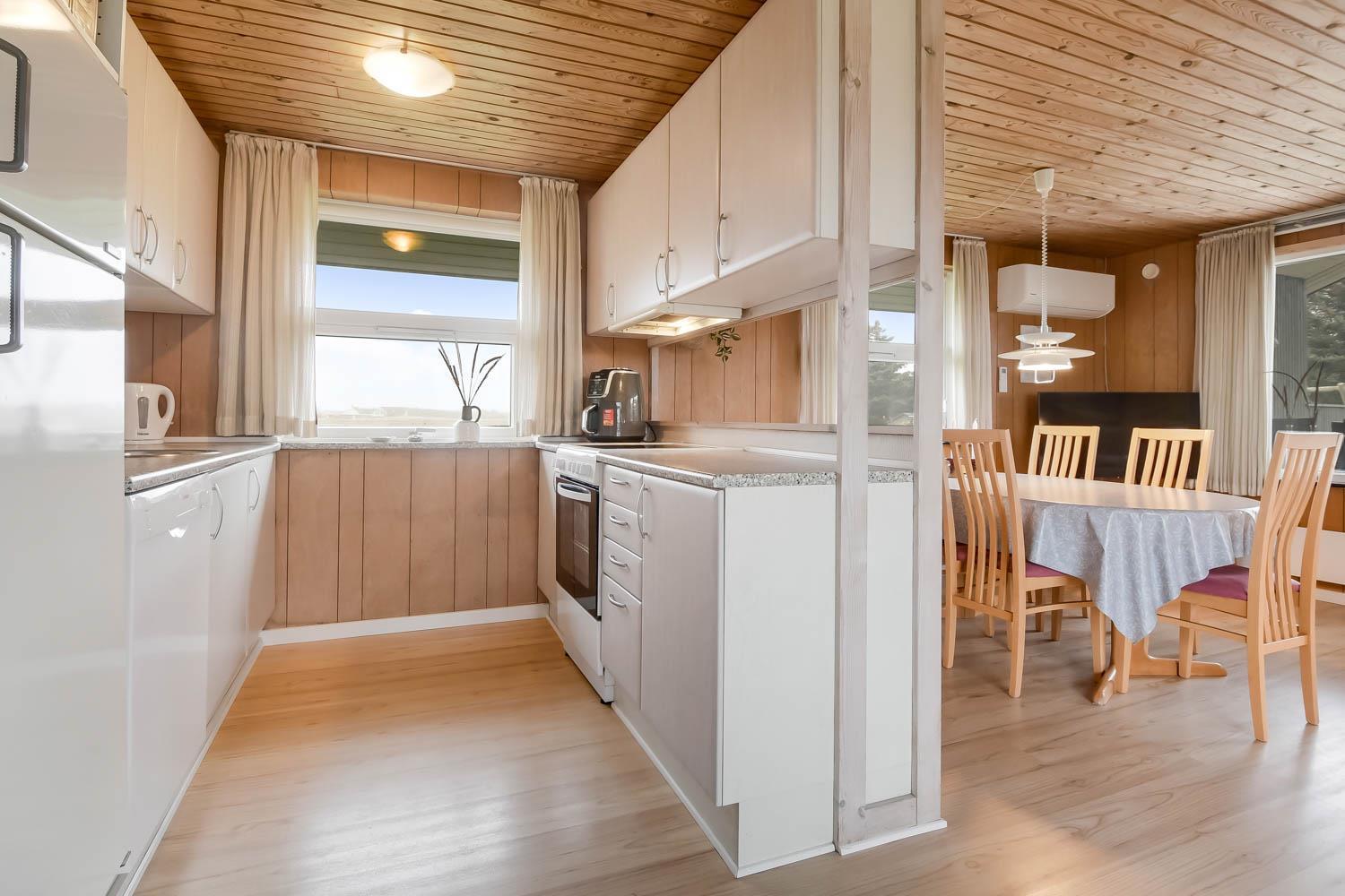 Das Haus ist schön eingerichtet mit eine klassischen Aufteilung von Wohnraum und Schlafräumen. Wohnraum und Küche sind im gleichem Raum und der Wohnraum hat einen Kaminofen, Couchgruppe, Esstisch und TV mit dänischen und deutschen Programmen und Radio. Küche mit Ceranfeld-Kochherd, Mikrowelle, Kühlschrank mit Gefrierfach 20 l und Geschirrspüler. Haben Sie kleine Kinder, so gibt es Kinderstuhl und Kinderbett im Haus. Badezimmer im Haus mit Toilette, Dusche und Waschbecken. Im Anbau können Sie das andere Badezimmer mit Fußbodenheizung, Sauna, Waschbecken, Whirlpool, Toilette und Dusche nutzen. Außerdem gibt es eine Waschmaschine und Trockner im Haus. 3 Schlafräume, wovon 2 Schlafräume im Haus sind mit 1DB + 2B. Im Anbau gibt es auch einen Schlafraum mit 1 DB. Haben Sie ein Elektroauto, gibt es einen Typ 2 Auflader. Sie müssen Ihr eigenes Kabel mitbringen. Nichtraucher-Haus