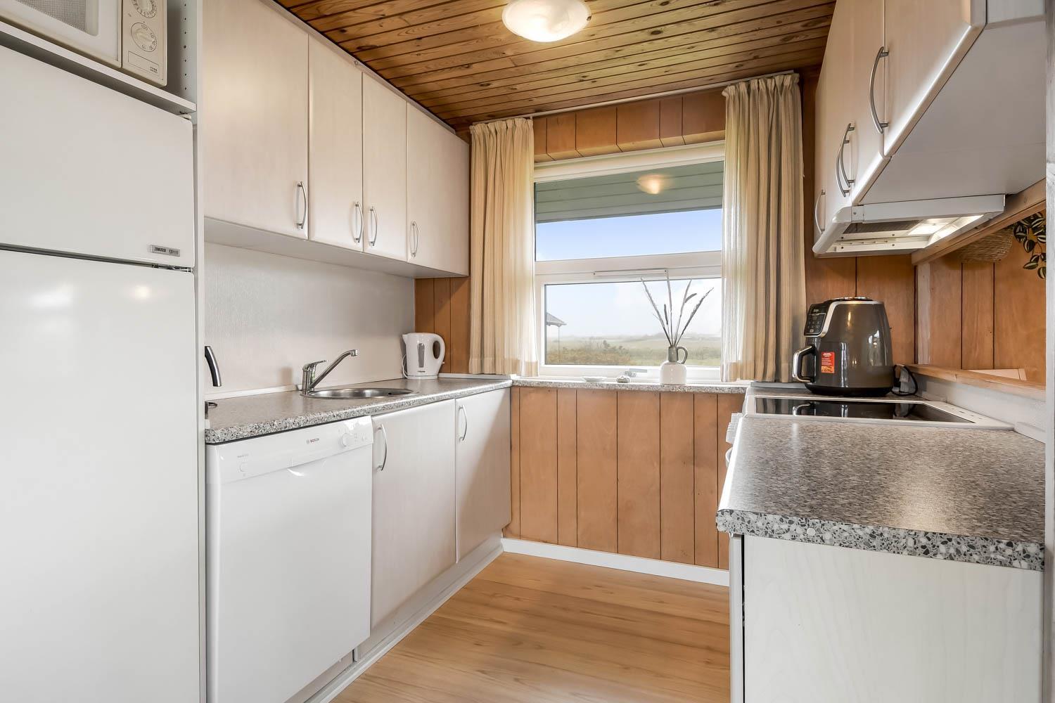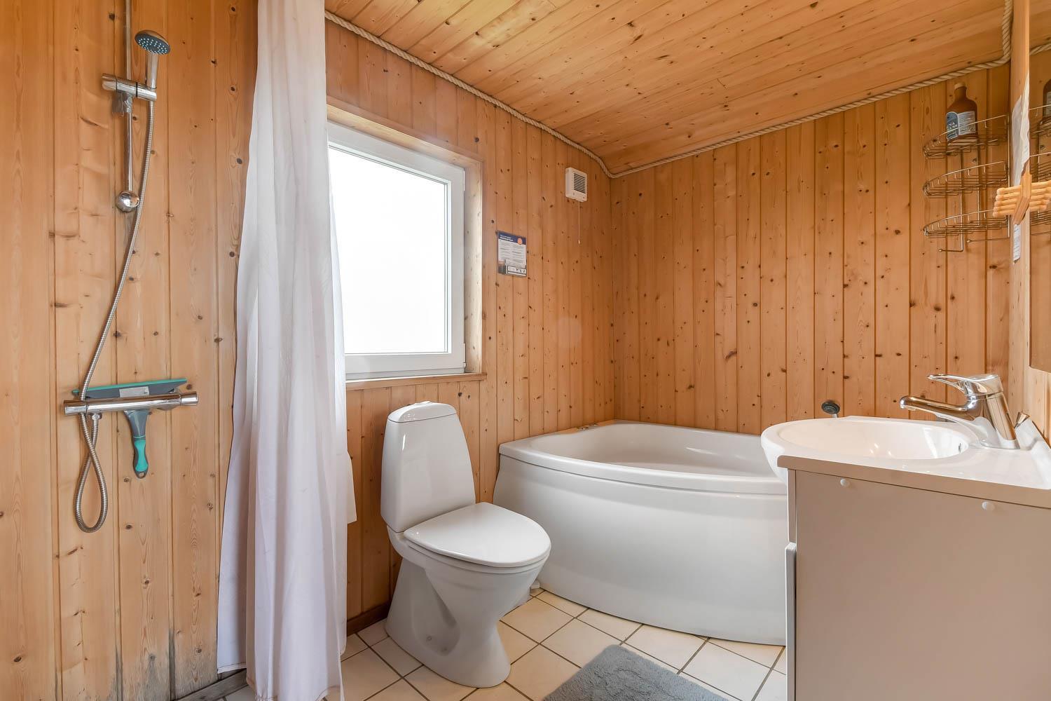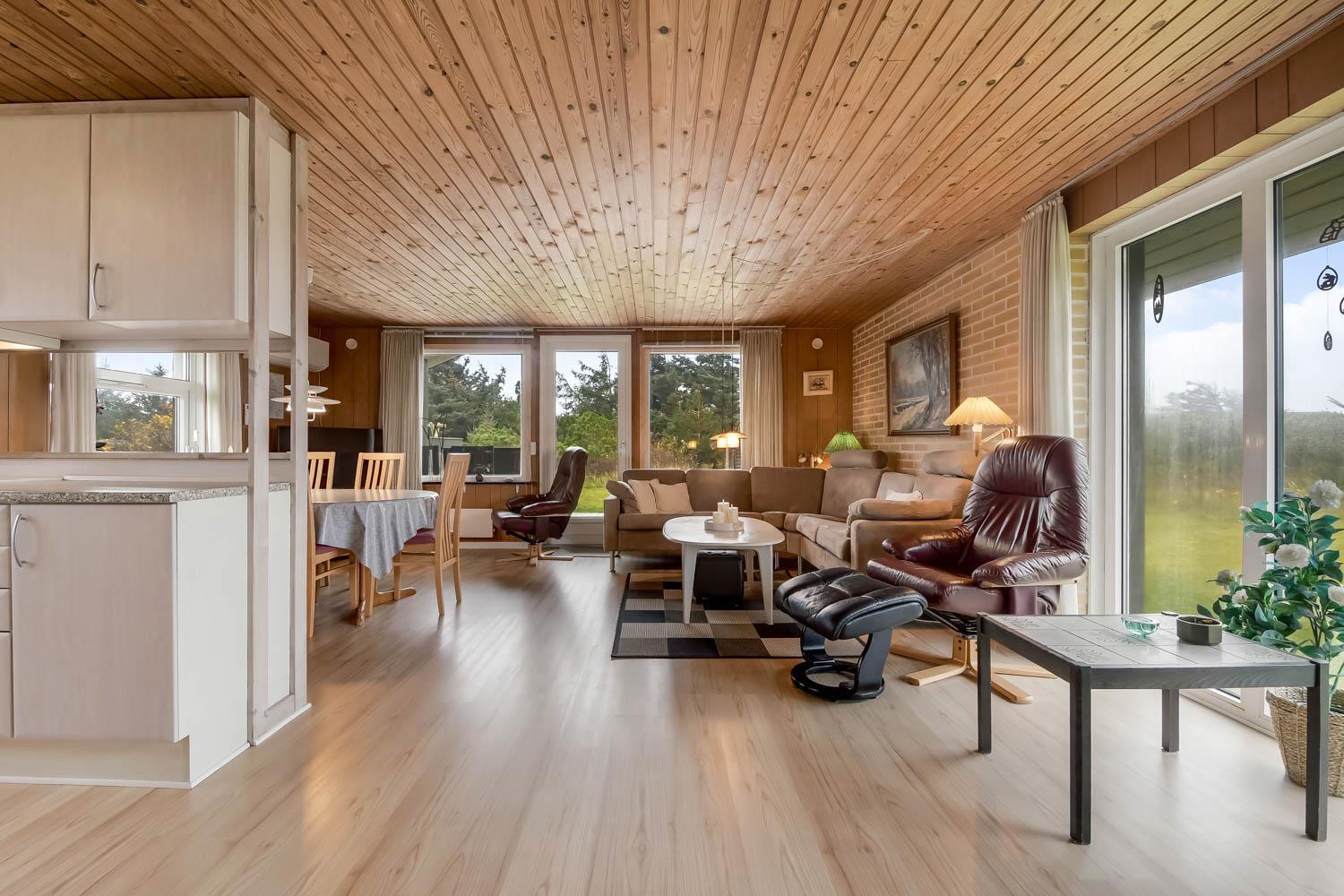 Das Haus ist schön eingerichtet mit eine klassischen Aufteilung von Wohnraum und Schlafräumen. Wohnraum und Küche sind im gleichem Raum und der Wohnraum hat einen Kaminofen, Couchgruppe, Esstisch und TV mit dänischen und deutschen Programmen und Radio. Küche mit Ceranfeld-Kochherd, Mikrowelle, Kühlschrank mit Gefrierfach 20 l und Geschirrspüler. Haben Sie kleine Kinder, so gibt es Kinderstuhl und Kinderbett im Haus. Badezimmer im Haus mit Toilette, Dusche und Waschbecken. Im Anbau können Sie das andere Badezimmer mit Fußbodenheizung, Sauna, Waschbecken, Whirlpool, Toilette und Dusche nutzen. Außerdem gibt es eine Waschmaschine und Trockner im Haus. 3 Schlafräume, wovon 2 Schlafräume im Haus sind mit 1DB + 2B. Im Anbau gibt es auch einen Schlafraum mit 1 DB. Haben Sie ein Elektroauto, gibt es einen Typ 2 Auflader. Sie müssen Ihr eigenes Kabel mitbringen. Nichtraucher-Haus