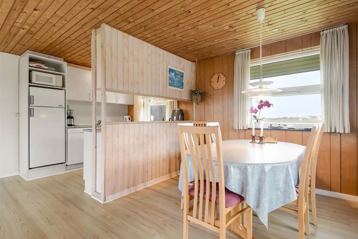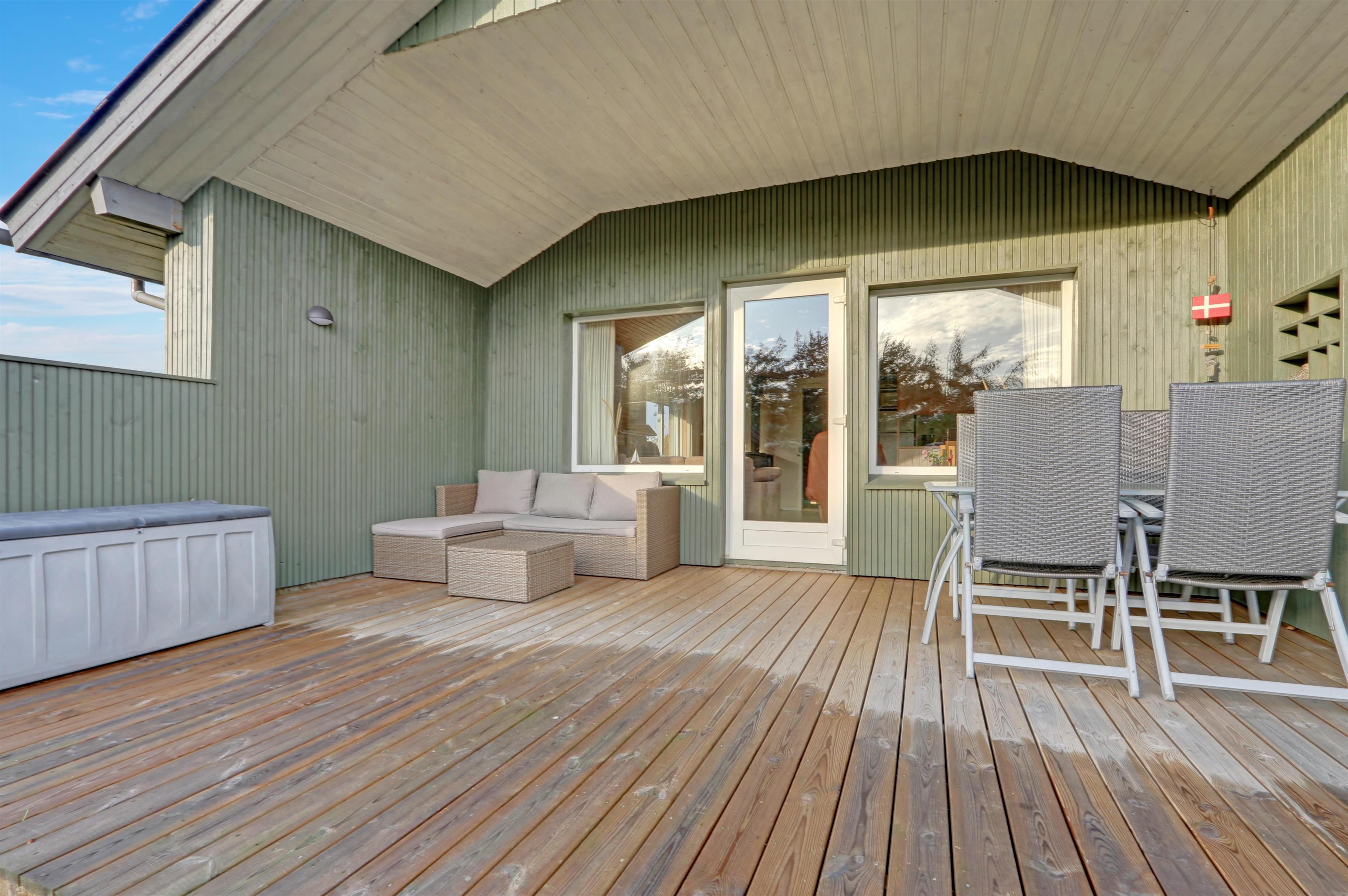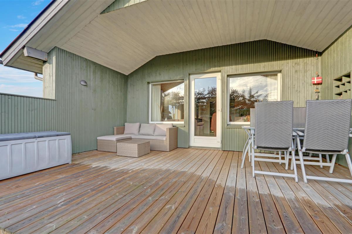 Die Südterrasse hat Gartenmöbel und Grill, damit Sie den ganzen Tag die Terrasse genießen können. Es gibt Schaukel und Sandkasten auf dem Grundstück. 300 m Richtung West liegt der große Strand und die Nordsee. Hier gibt es viel Platz und es ist immer einen Besuch wert. Hier können Sie Drachen steigen lassen, baden, Bernsteine suchen, angeln oder blo eine Wanderung am Wasser entlang machen. Vergessen Sie nicht die tollen Sonnenuntergänge zu genießen. Etwa 1500 m vom Haus gibt es Brugsen und Rema1000, wo Sie jeden Tag Ihre täglichen Einkäufe machen können. Besuchen Sie auch Thyborøn, wo es einen Hafen, einen kinderfreundlichen Sandstrand, Jyllandsakvarium und das Sneglehuset gibt.