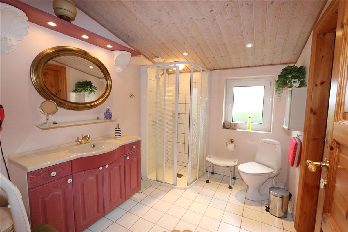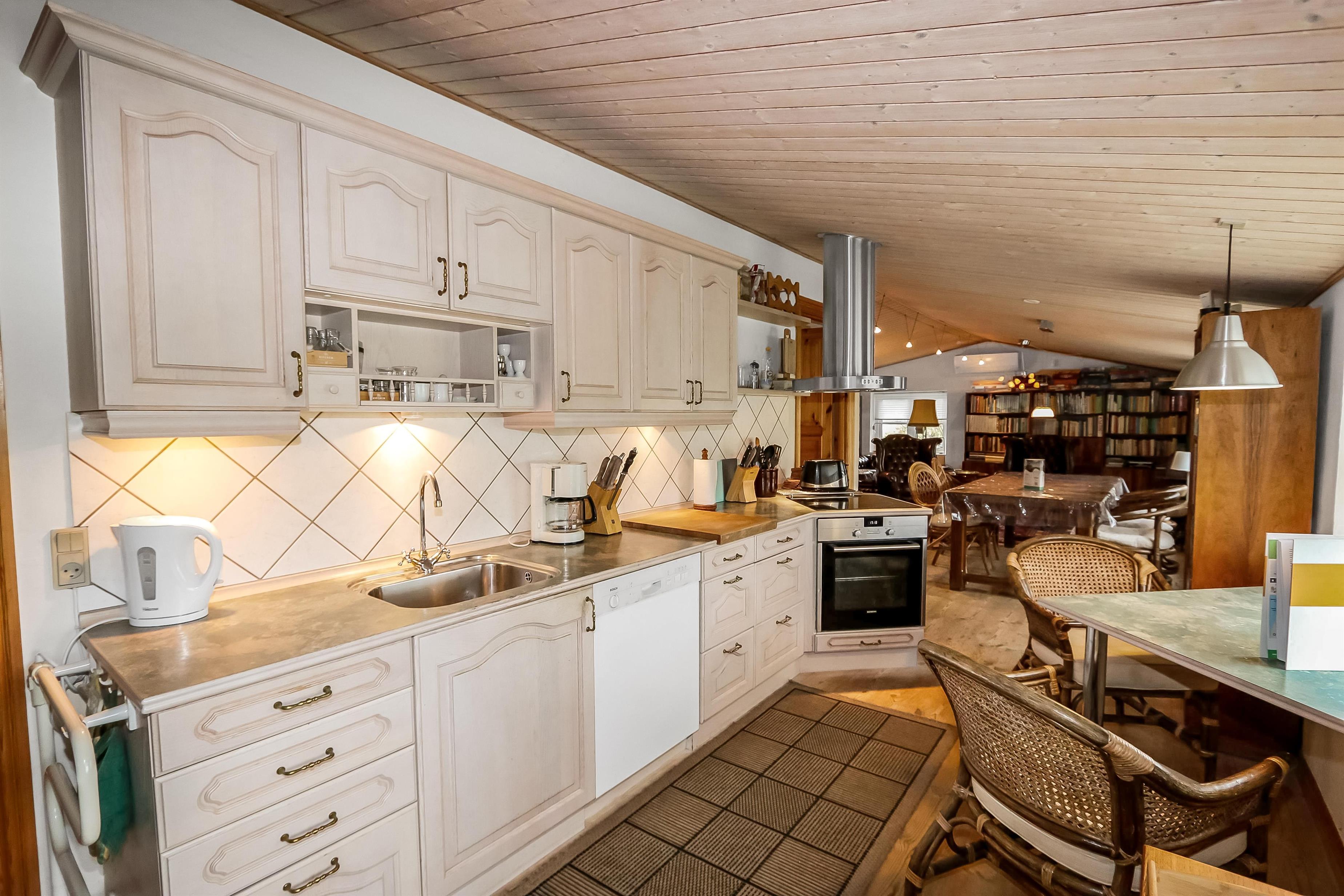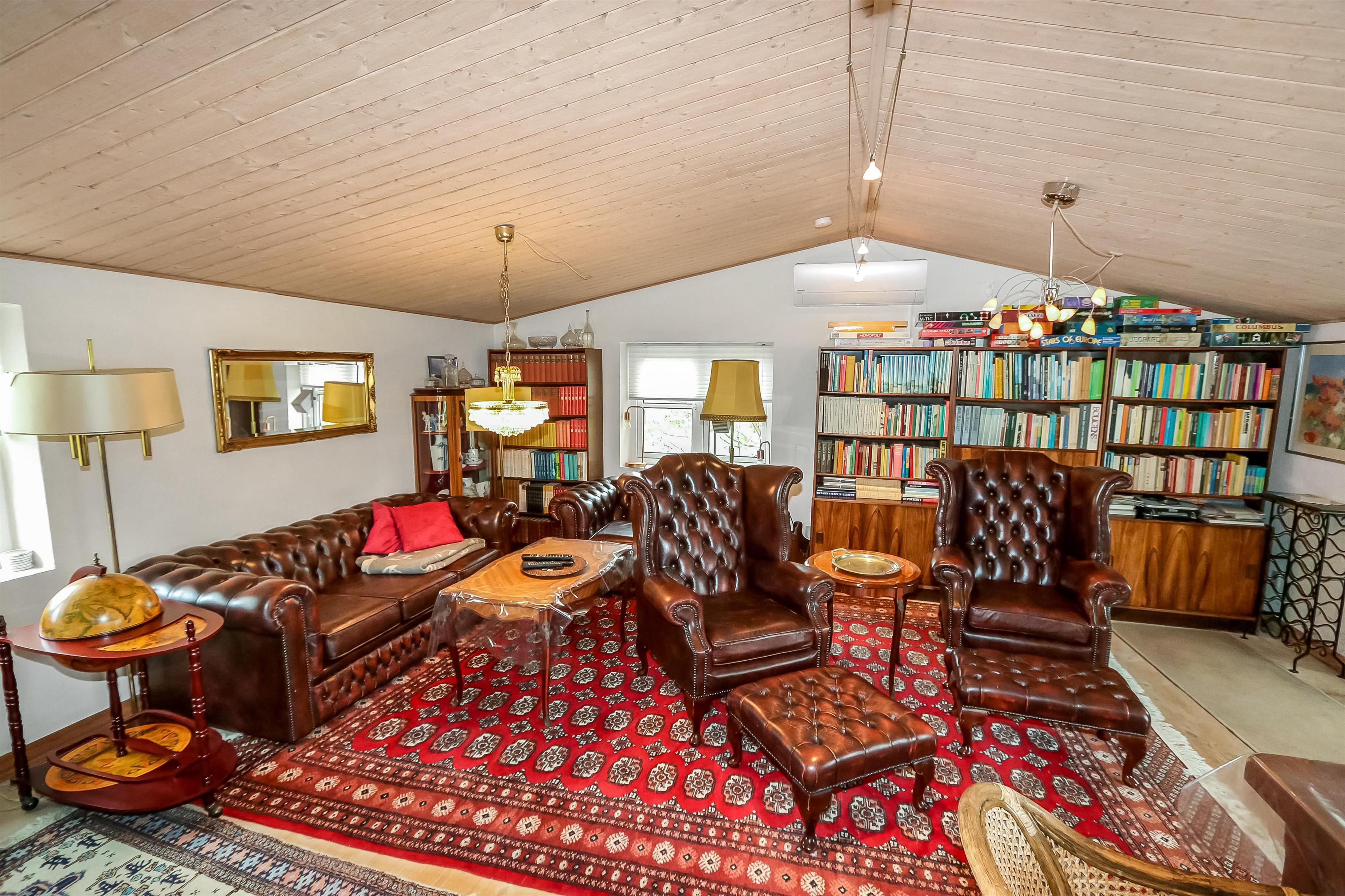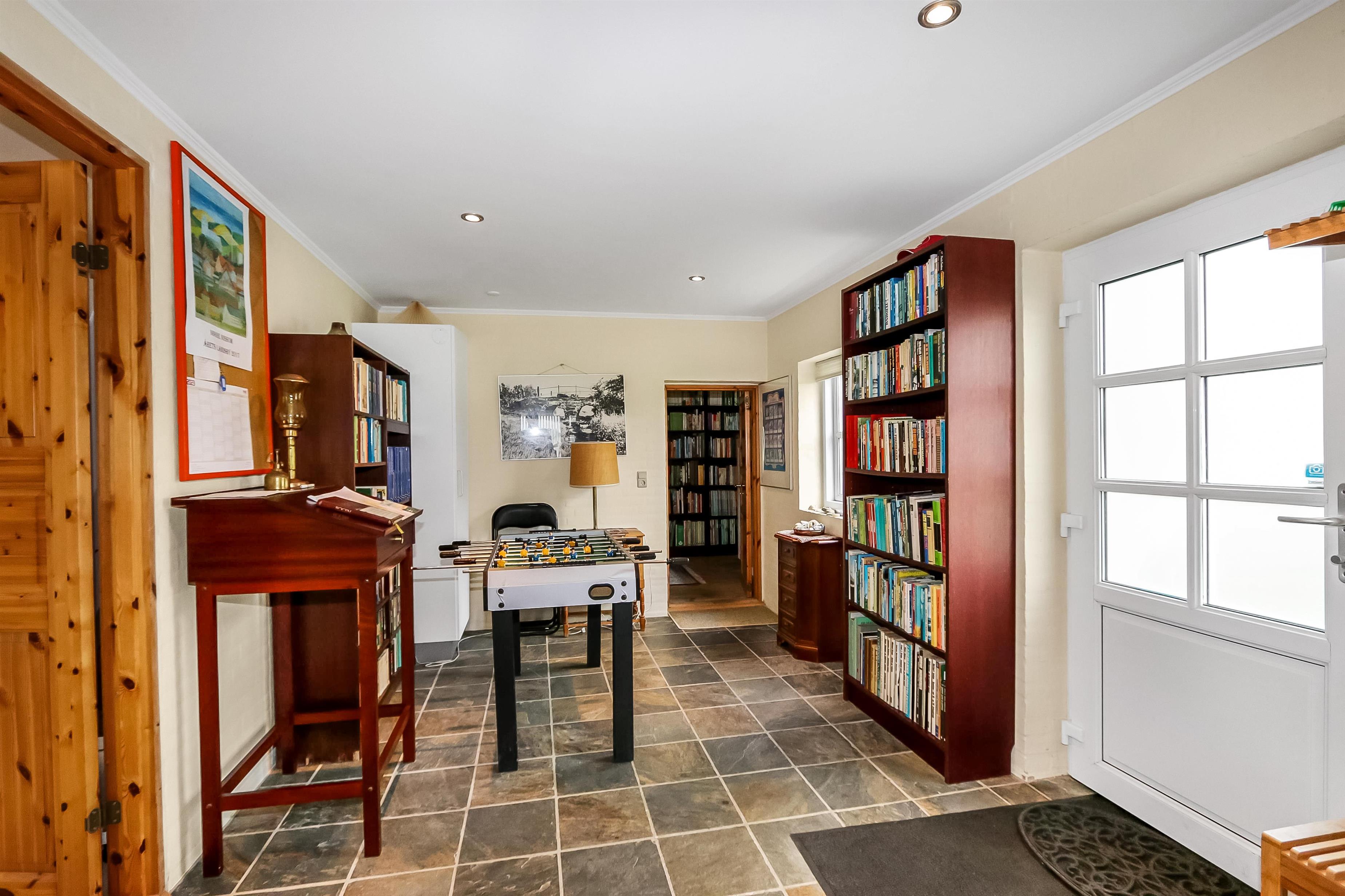 Das Haus wurde im Jahr 1877 erbaut, in 2016 renoviert und durch Anbauten vergrößert. Ein Flur heißt Sie willkommen. Hier gibt es viel Platz zum Aufhängen von Garderobe und es gibt hier auch die Möglichkeit, Tischfußball zu spielen. Der Flur ist auch ein Verteilerflur; von hier gibt es Zugang zum großen Badezimmer, Wohnraum und Küche. In der Küche gibt es ein extra Waschbecken, Waschmaschine und Trockner. In demselben Haus gibt es auch ein Extrabadezimmer mit Toilette, Bad und Waschbecken. Dieses Badezimmer hat auch direkten Zugang zu dem Schlafraum mit 1DB (Elevationsbett) und TV. Es gibt auch noch einen Schlafraum mit 1DB und extra TV. Offene Küche mit Ceranfeld Kochplatten, eingebautem Ofen mit Pyrolyse-Programm, Mikrowelle, Geschirrspüler, Abzugshaube, Kühlschrank, Gefrierschrank mit 170 l und kleinem Tisch mit 2 Sitzplätzen. Großer Wohnraum mit großem Esstisch, großem TV mit dänischen und deutschen Programmen und Chesterfield Möbeln. Vom Flur gibt es auch Zugang zu einem großen Badezimmer mit Toilette, Wachbecken, Dampfkabine, direkten Zugang zur Glassauna, Whirlpool für 2 Personen und einen Fliesenboden mit Fußbodenheizung. Von dem großen, mit Ledermöbeln und vielen anderen persönlichen Möbeln und Gegenständen und Fußbodenheizung ausgestatteten Wohnraum, gelangen Sie über eine Wendeltreppe in den 1. Stock. Das Haus ist gut isoliert und hat 2 Wärmepumpen, die für eine energiefreundliche Wärme sorgen; der Kaminofen im Wohnraum sorgt für eine gemütliche Wärme. Das Haus ist sehr persönlich eingerichtet. Es gibt z.B. viele Regale mit Büchern und mehreren Antiquitäten und andere schöne Möbel im Haus. Insgesamt gibt es 6 TV´s mit DVD im Haus und 5 Chromecast. Ein Kinderstuhl und Kinderbett sind vorhanden. Nichtraucher-Haus. 2 Haustiere sind erlaubt.