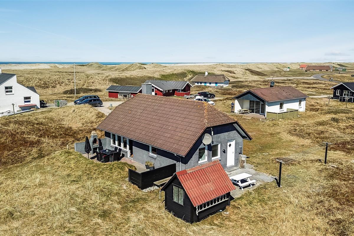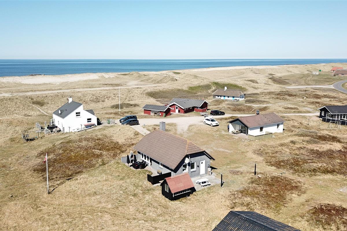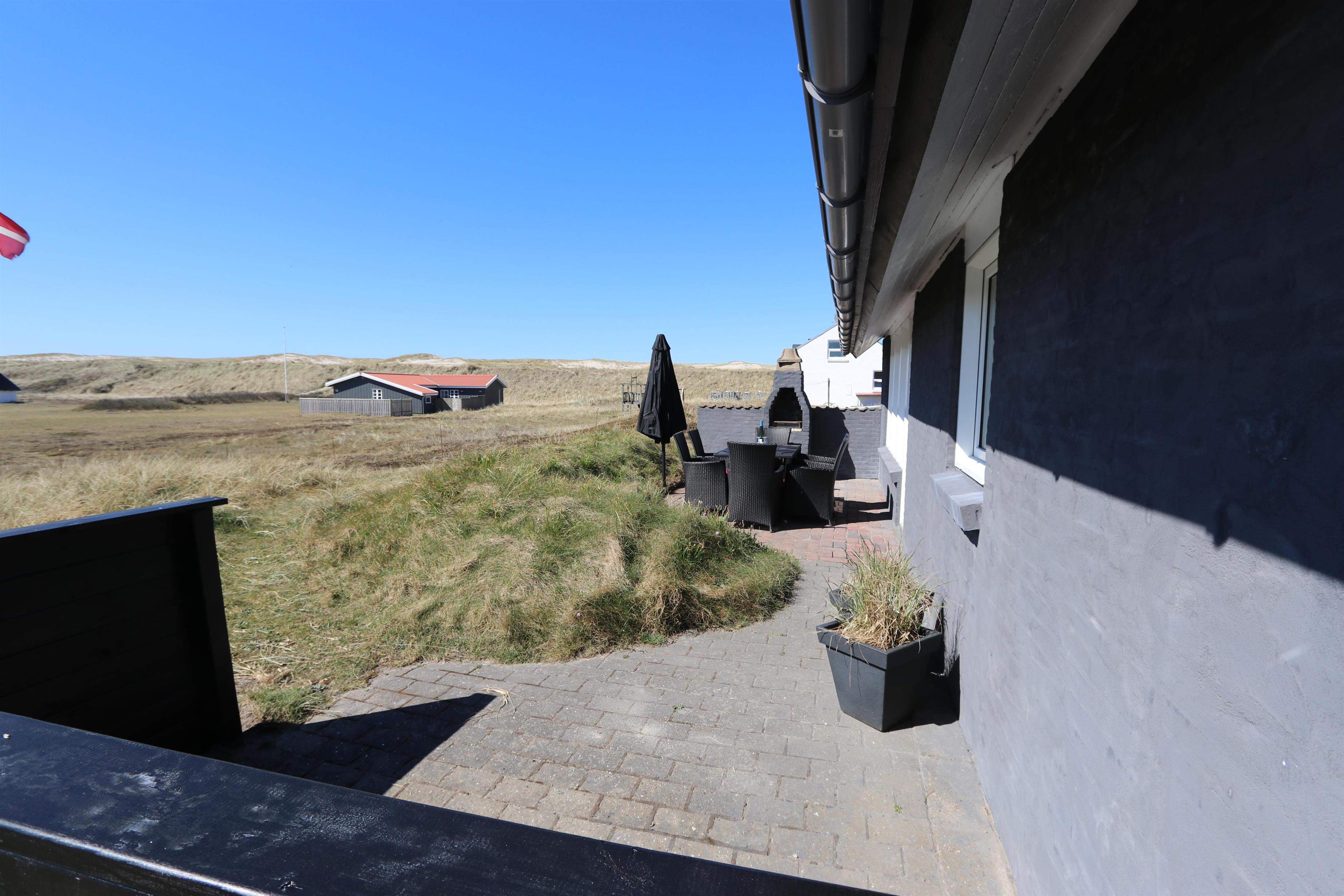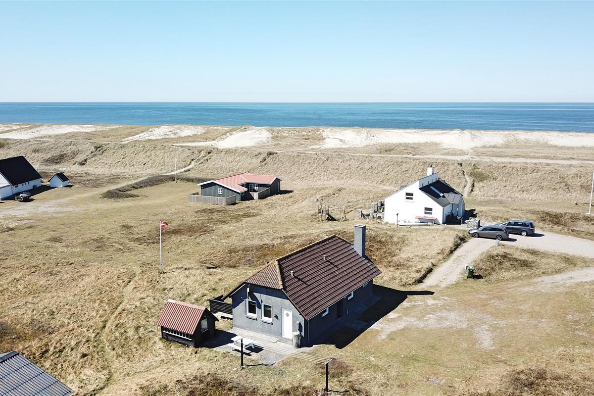 Das Haus liegt auf einem Dünengrundstück mit Stutenstroh, Grass und Heide. Es gibt die Möglichkeite direkt beim Haus zu parken. Vom Wohnraum haben Sie einen Zugang zur Terrasse, die Richtung süd liegt. Hier gibt es Gartenmöbel, Grill und 2 Sonnenliegen. Nutzen Sie auch gerne den Aussenkamin um die hellen Sommerabende draussen zu verlängern. Es ist möglich, lose Zäune im Haus aufzustellen, ideal, wenn kleinere Kinder oder Hunde mitgebracht werden. Die Dünen zur Nordsee sind nur einen langen Steinwurf entfernt und auf der anderen Seite befindet sich ein breiter Strand mit der Möglichkeit zu schwimmen, Sandburgen zu bauen, lange Spaziergänge zu machen oder zu angeln. So liegt etwa 500 m nördlich der erste Hof von Süden. Er bildet eine Art Felsenriff im Meer und wird für Angler empfolen. Wenn Sie einkaufen möchten, sind es nur etwa 1 km bis Brugsen in Harboøre, die jeden Tag des Jahres geöffnet sind. Dies ist die Heimat eines klassischen Nordseeurlaubs.