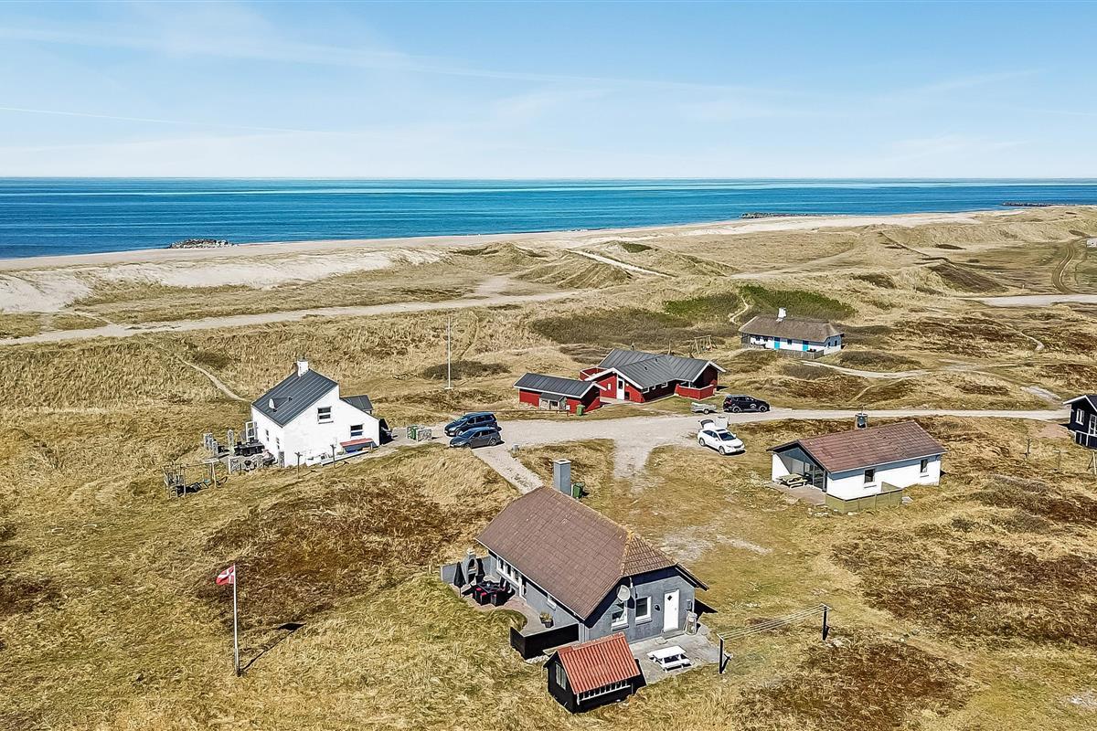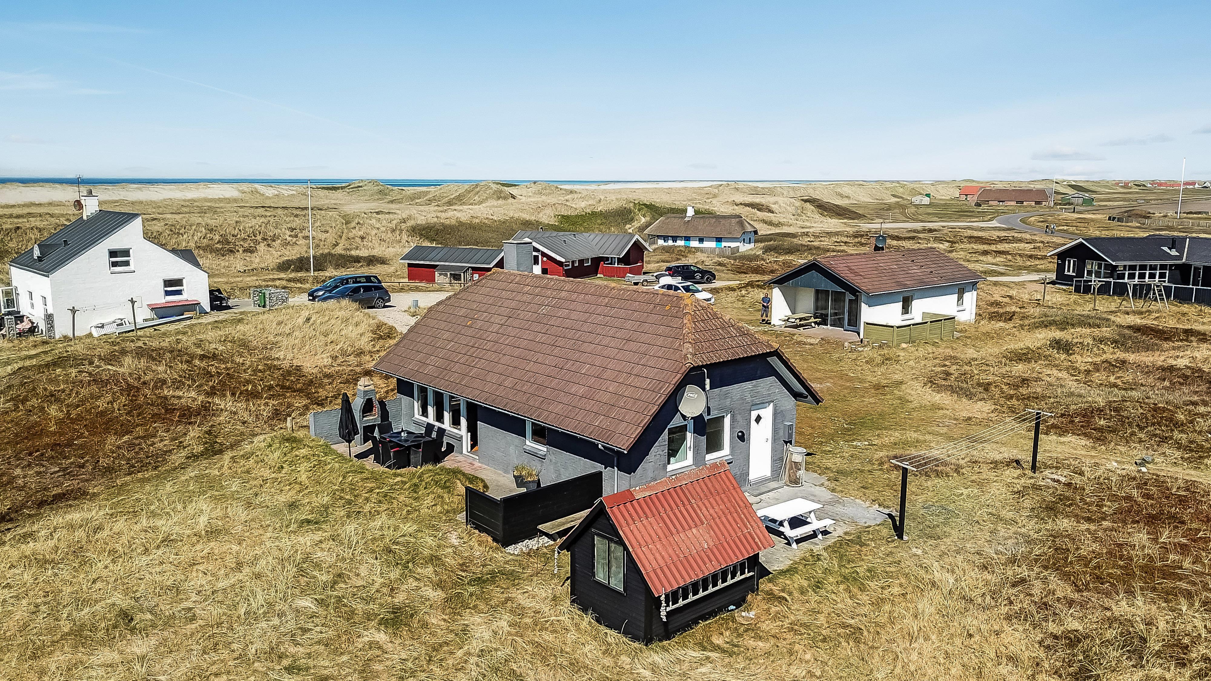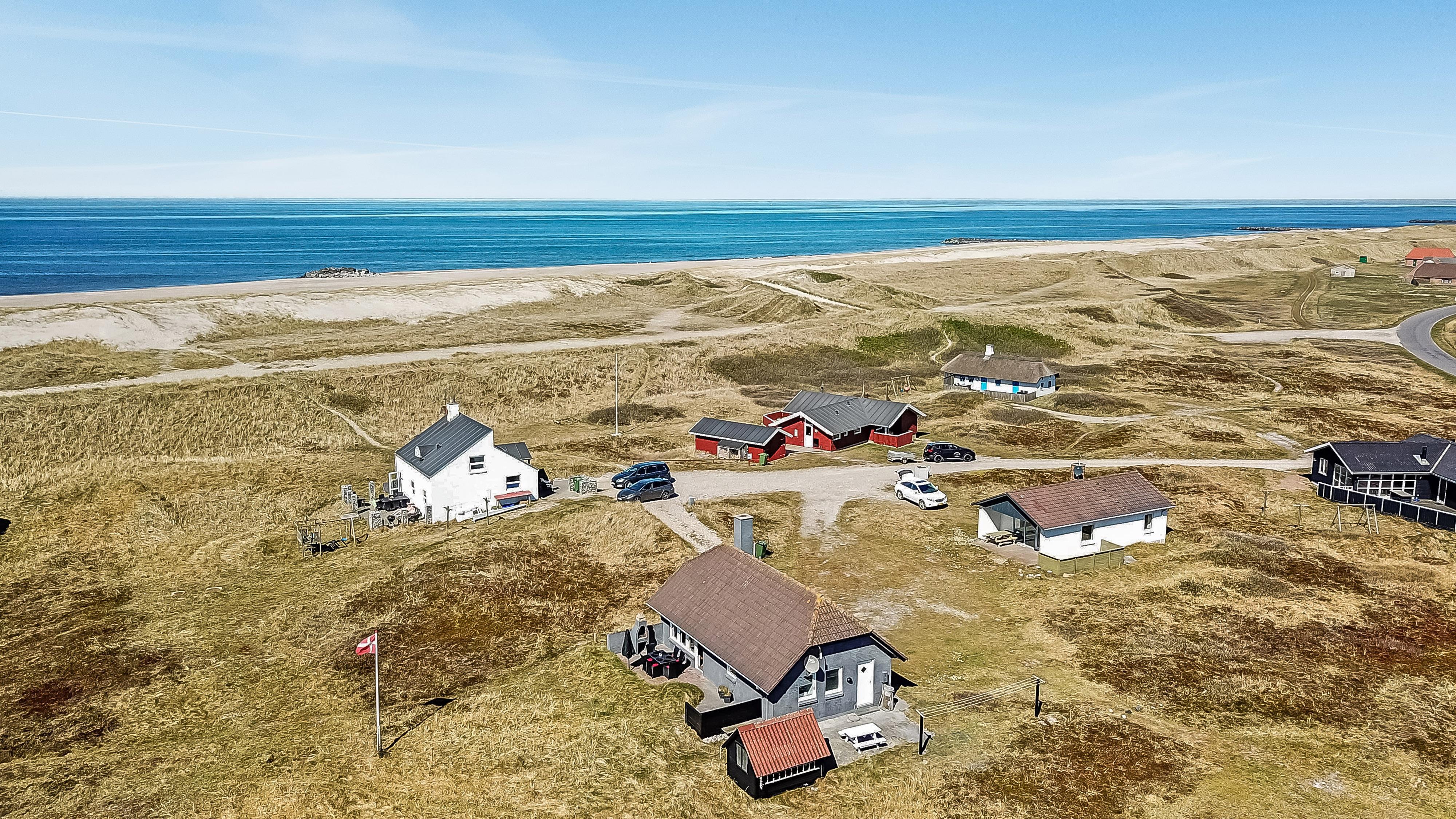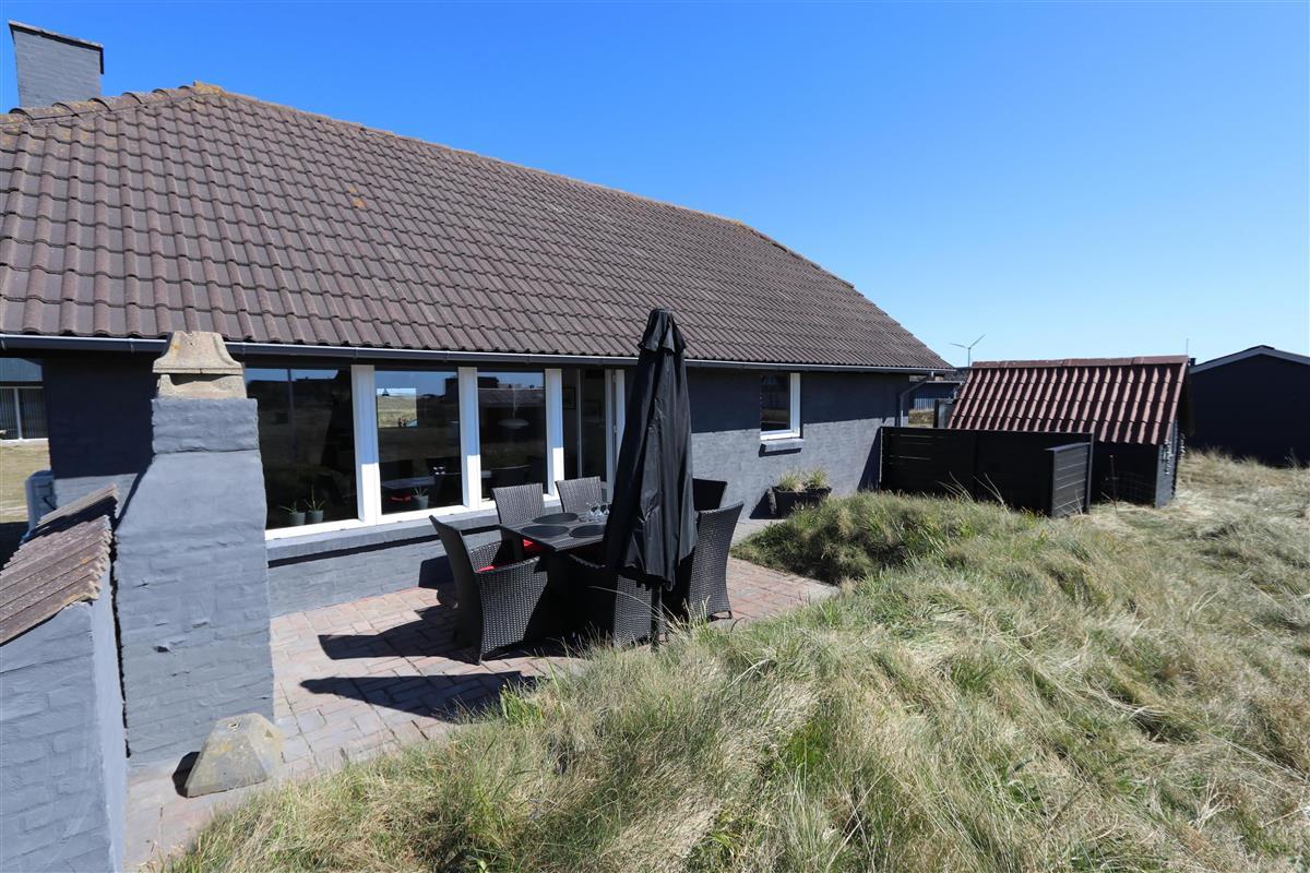 Das Haus liegt auf einem Dünengrundstück mit Stutenstroh, Grass und Heide. Es gibt die Möglichkeite direkt beim Haus zu parken. Vom Wohnraum haben Sie einen Zugang zur Terrasse, die Richtung süd liegt. Hier gibt es Gartenmöbel, Grill und 2 Sonnenliegen. Nutzen Sie auch gerne den Aussenkamin um die hellen Sommerabende draussen zu verlängern. Es ist möglich, lose Zäune im Haus aufzustellen, ideal, wenn kleinere Kinder oder Hunde mitgebracht werden. Die Dünen zur Nordsee sind nur einen langen Steinwurf entfernt und auf der anderen Seite befindet sich ein breiter Strand mit der Möglichkeit zu schwimmen, Sandburgen zu bauen, lange Spaziergänge zu machen oder zu angeln. So liegt etwa 500 m nördlich der erste Hof von Süden. Er bildet eine Art Felsenriff im Meer und wird für Angler empfolen. Wenn Sie einkaufen möchten, sind es nur etwa 1 km bis Brugsen in Harboøre, die jeden Tag des Jahres geöffnet sind. Dies ist die Heimat eines klassischen Nordseeurlaubs.