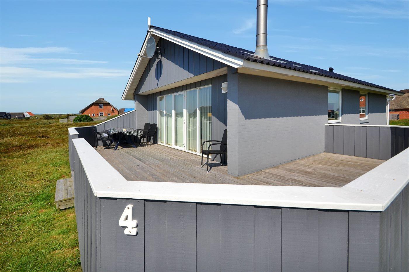 Vom Wohnraum gibt es einen Ausgang zu einer schönen, großzügigen und eingezäunten Terrasse mit Gartenmöbeln, Sonnenliegen und Grill. Carport und extra Raum zum Aufbewahren. Schaukel für die Kinder. Ein sehr schönes Ferienhaus in perfekter Lage auf einem schönen Naturgrundstück dicht an der einmaligen Nordsee, die täglich einen Besuch wert ist, egal ob es sonnig oder windig ist. Nehmen Sie das Auto oder das Fahrrad und holen Sie die Brötchen für die Familie in einem der Supermärkte, die ganz in der Nähe sind. Möchten Sie einen entspannten oder auch einen aktiven Urlaub, dieses Haus ist mit Lage, Ausstattung und Umgebung eine gute Wahl.