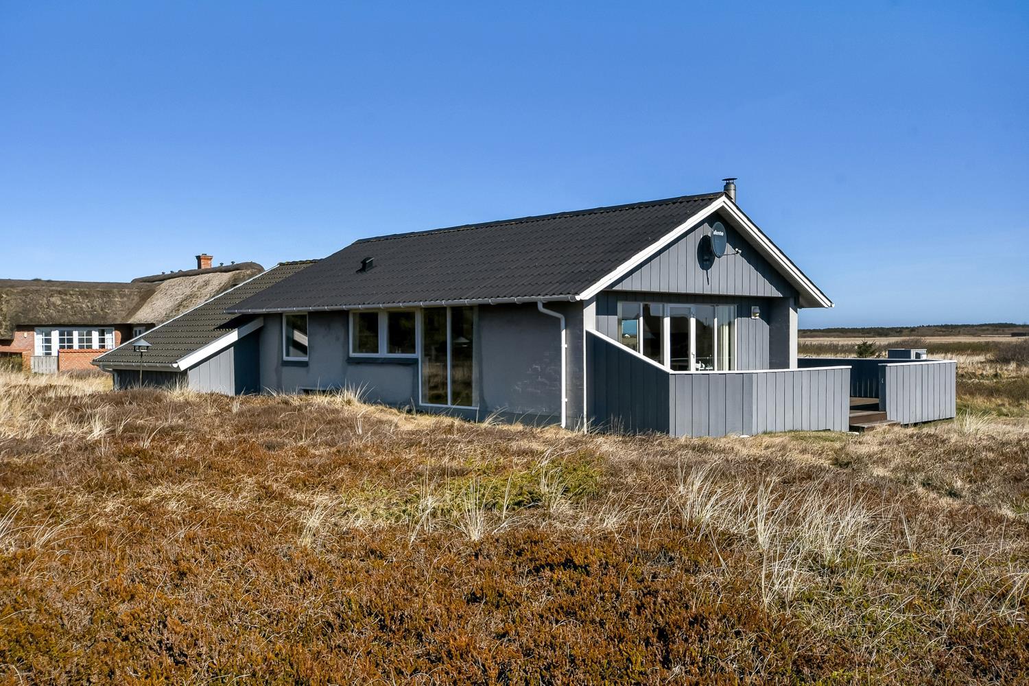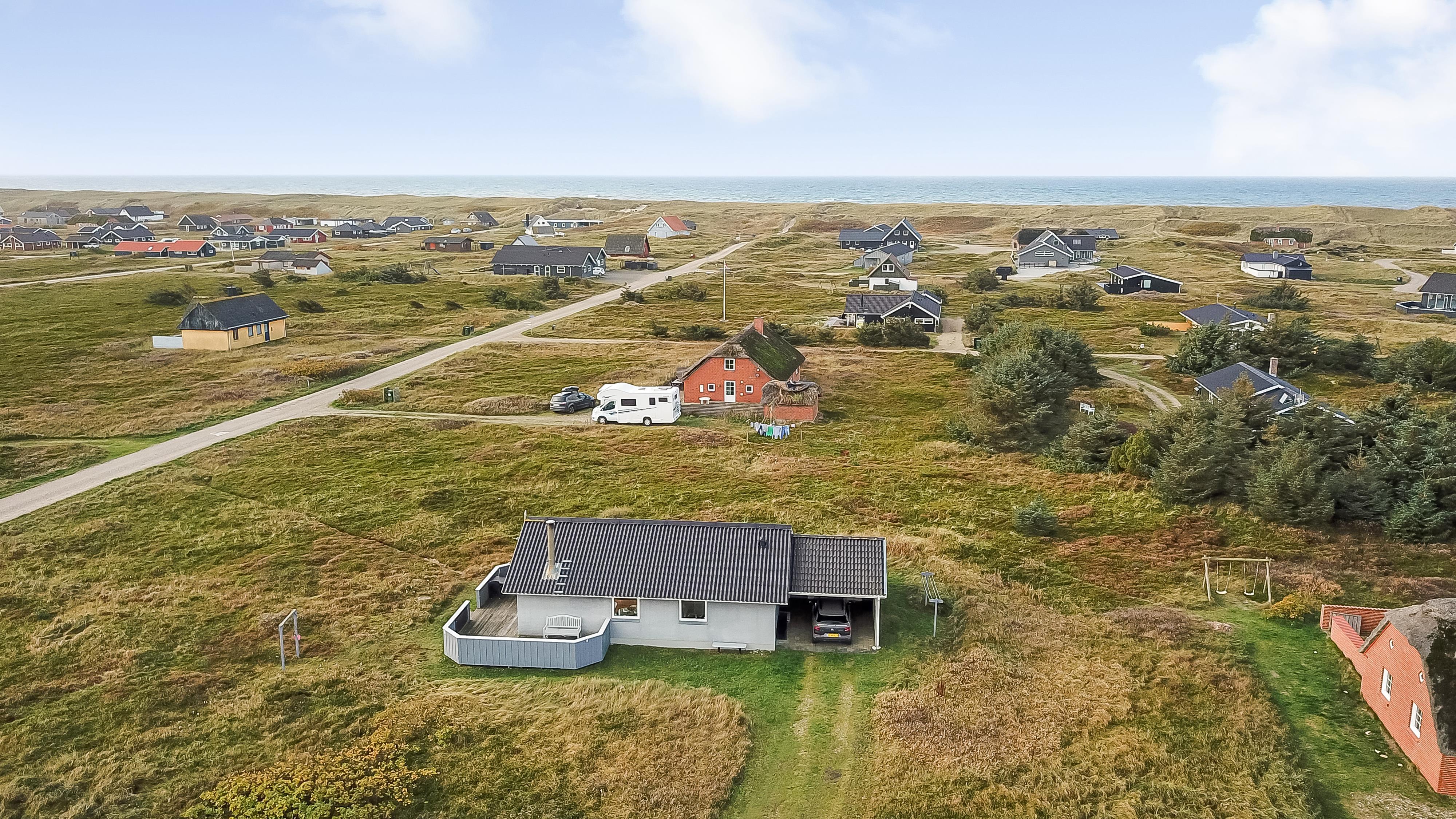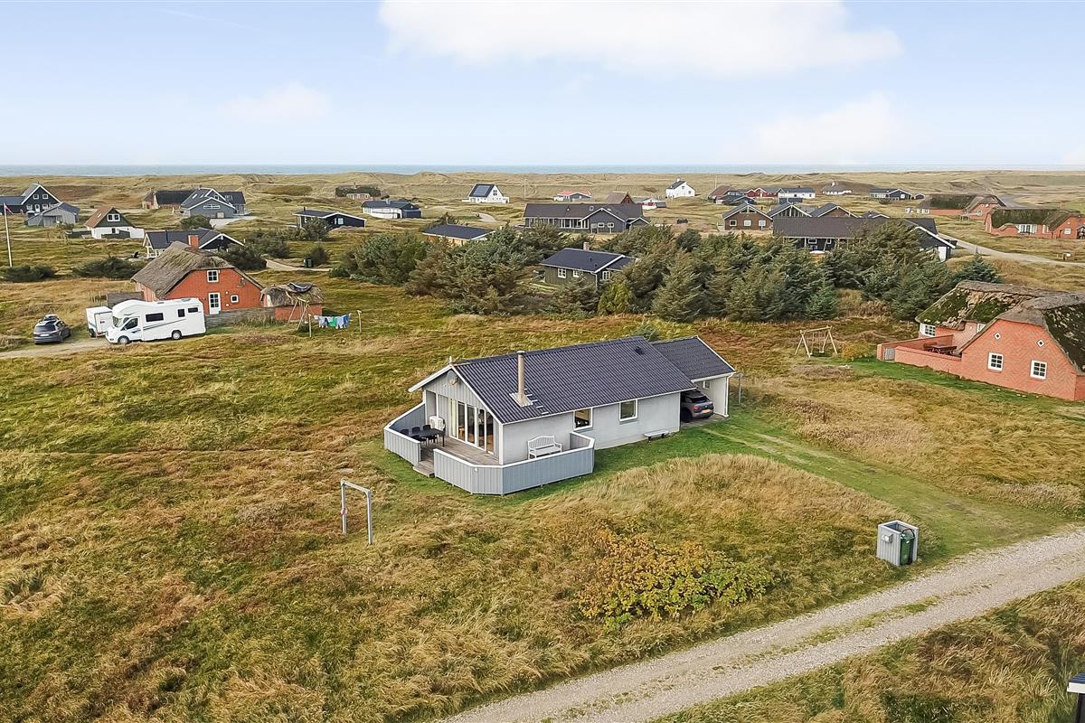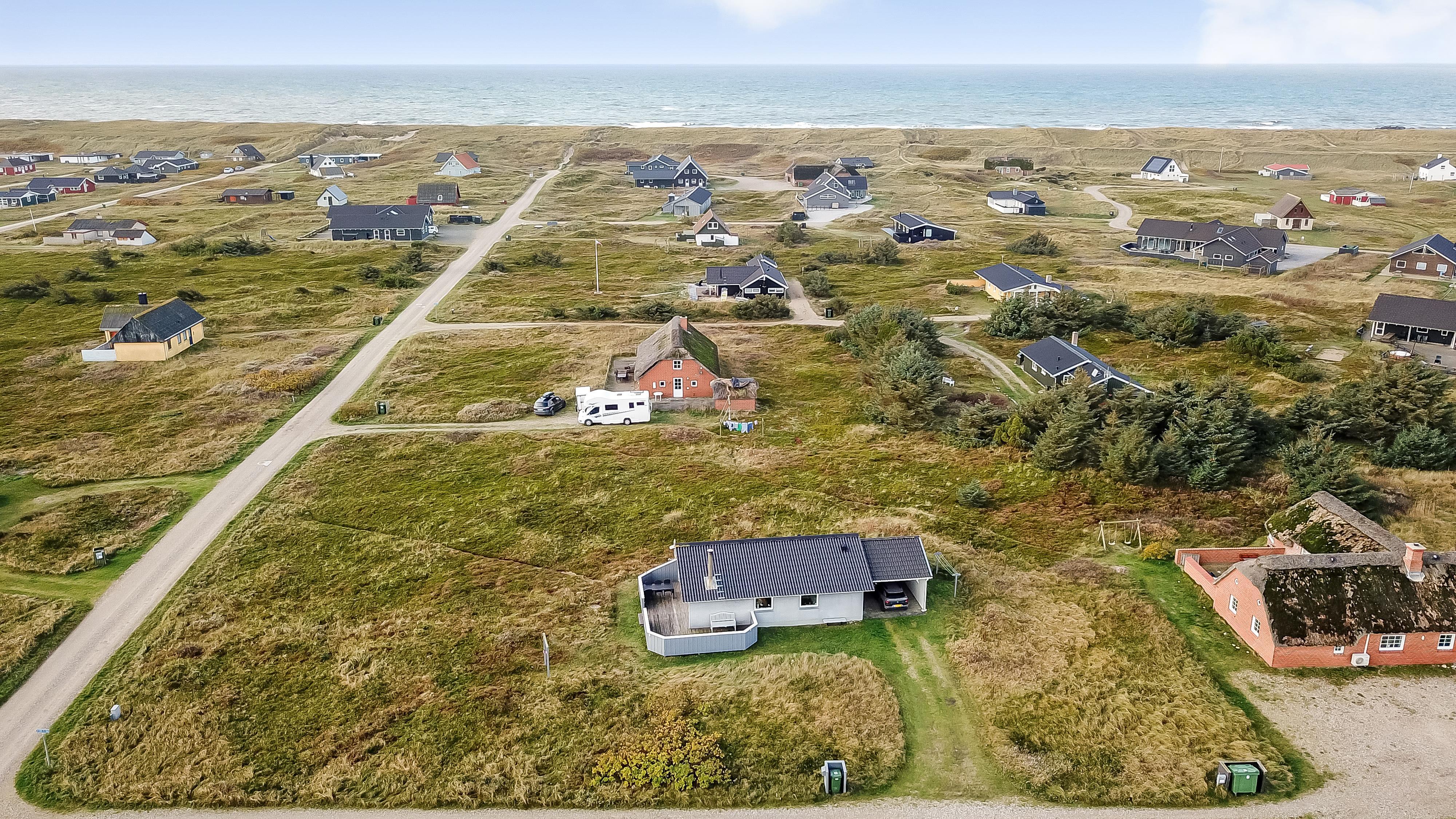 Gut zu nutzendes klassisches Ferienhaus auf etwa 75 qm mit Blick zu den hohen Dünen an der Nordsee. 2 Schlafräume: 1DB, 2EB und 1 ETB. Das Haus wurde im Jahr 2006 renoviert und wird laufend modernisiert. Das großzügig holzverkleidete Sommerhaus ist mit Ledermöbeln und großem Esstisch eingerichtet. Es ist ein TV mit dänischen und deutschen Programmen und der Möglichkeit des Streamings von TV/Radio/Apps, sofern Sie selber ein Abonnement haben, sowie Internet Radio, DVD- und CD Player vorhanden. Ein gemütlicher Kaminofen und eine Wärmepumpe sorgen für günstigere Nebenkosten und machen es extra gemütlich auch während der kälteren Tage an der Nordsee.