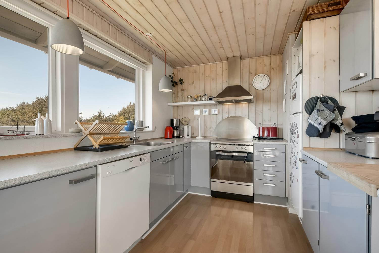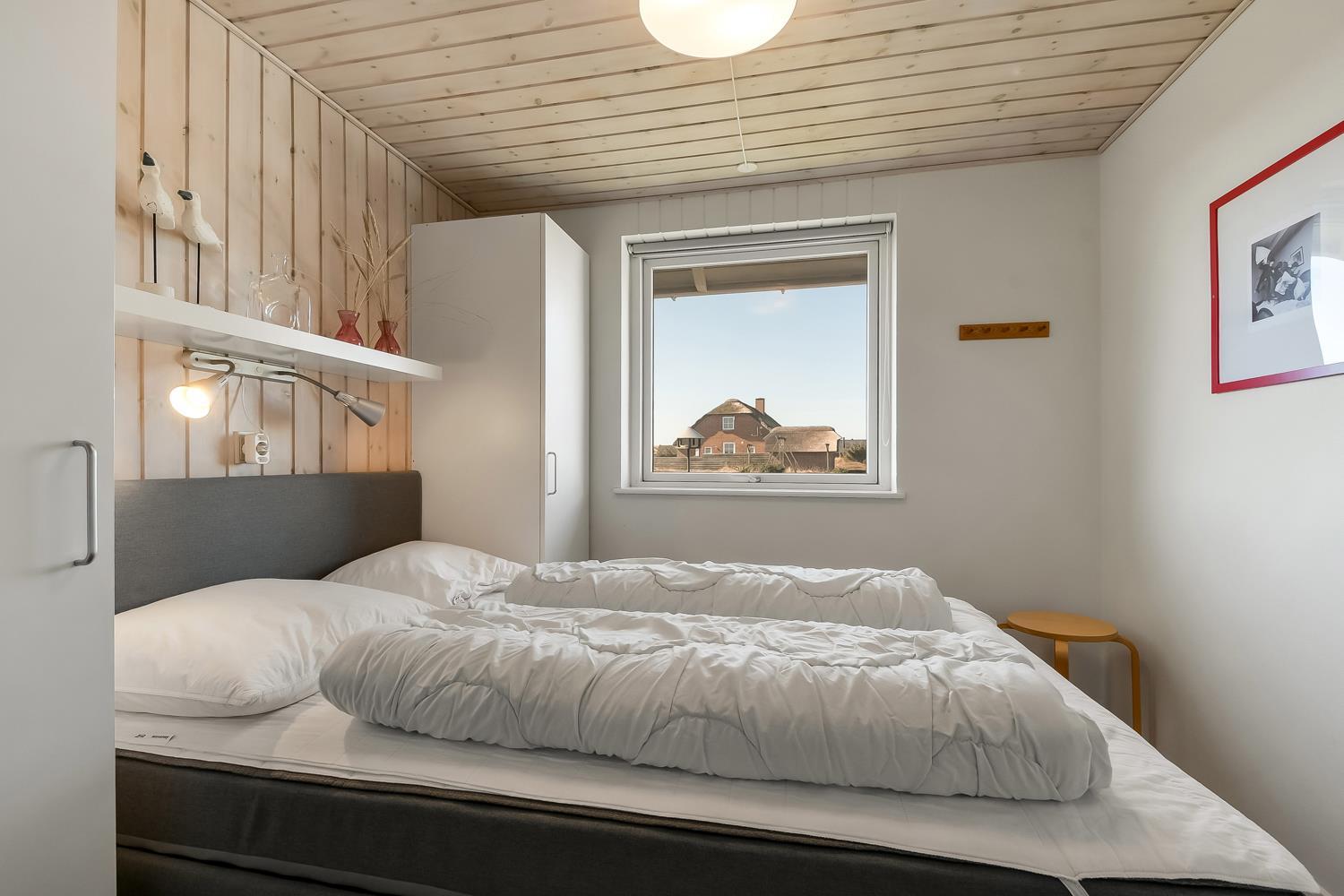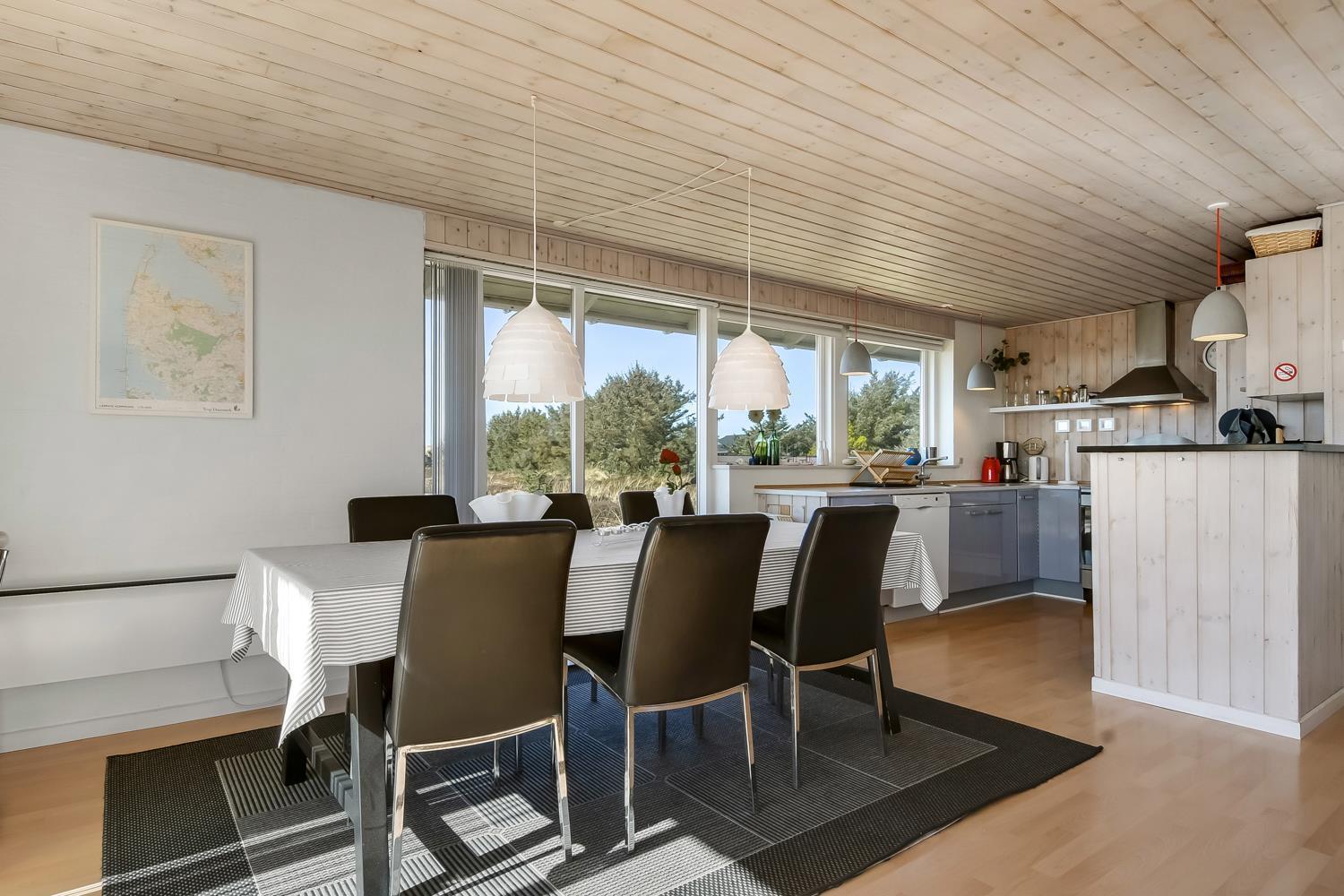 Gut zu nutzendes klassisches Ferienhaus auf etwa 75 qm mit Blick zu den hohen Dünen an der Nordsee. 2 Schlafräume: 1DB, 2EB und 1 ETB. Das Haus wurde im Jahr 2006 renoviert und wird laufend modernisiert. Das großzügig holzverkleidete Sommerhaus ist mit Ledermöbeln und großem Esstisch eingerichtet. Es ist ein TV mit dänischen und deutschen Programmen und der Möglichkeit des Streamings von TV/Radio/Apps, sofern Sie selber ein Abonnement haben, sowie Internet Radio, DVD- und CD Player vorhanden. Ein gemütlicher Kaminofen und eine Wärmepumpe sorgen für günstigere Nebenkosten und machen es extra gemütlich auch während der kälteren Tage an der Nordsee.