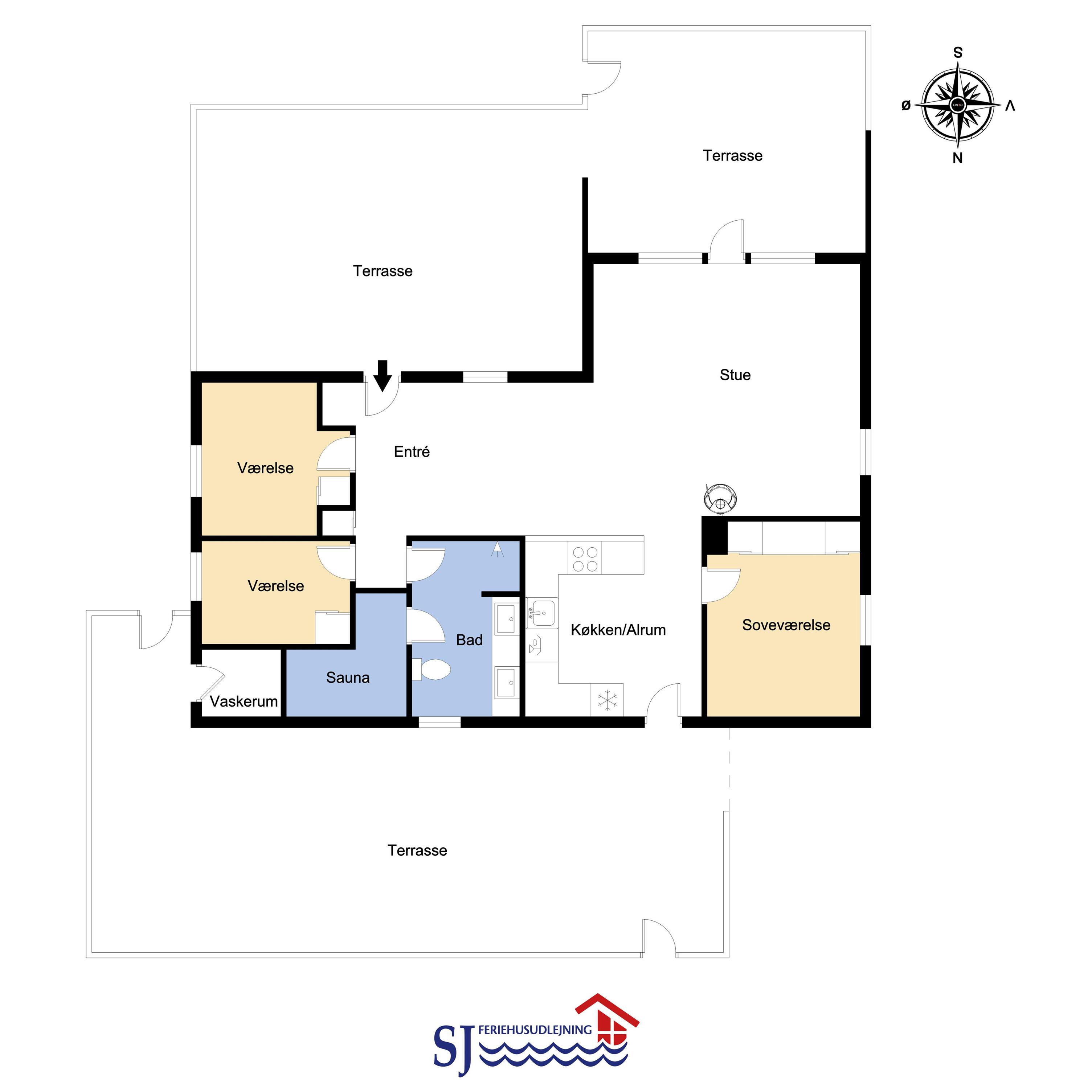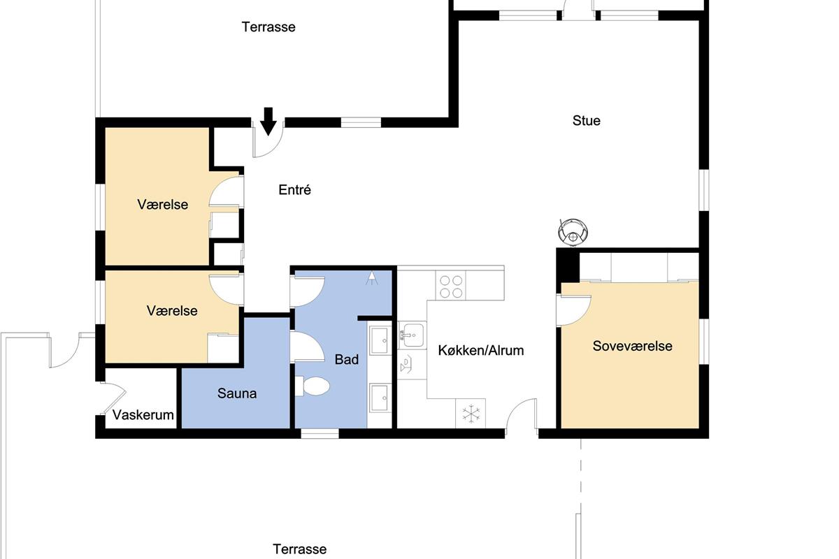 Das Haus ist persönlich und gemütlich eingerichtet mit Holzboden und losen Teppichen. Schönes Badezimmer mit Toilette, Waschbecken, Dusche, Fußbodenheizung und Zugang zur Sauna. Die Küche ist gut eingerichtet und kombiniert mit dem Wohnraum. Der Wohnraum ist mit Kaminofen, Radio und TV mit DR1 und TV2 und einer Parabolantenne mit deutschen Programmen ausgestattet. Außerdem gibt es ein Chromecast mit der Möglichkeit für Streaming von APP/Radio/TV, für die Sie selber ein Abonnement haben. Es gibt auch eine Wärmepumpe im Haus, die zusammen mit dem Kaminofen für eine gute Wärme sorgt, auch an den kalten Tagen, und beide helfen dabei, die Nebenkostenrechnung niedriger zu machen. Es gibt schöne Ledermöbel im Wohnraum. Dicht an der Küche steht der Esstisch mit Platz für 6 Personen. Die Küche ist gut ausgestattet und hat einen Herd mit Cerankochfeld, Abzugshaube, Kühl-/Gefrierschrank, Geschirrspüler und Fliesenboden. Das Haus hat 3 Schlafräume: 2B + 1DB + 1E. Glasfasernetz. 2 Hunde sind erlaubt. Nichtraucher-Haus. Obligatorische Endreinigung