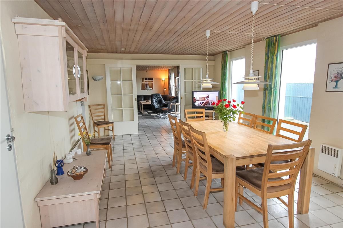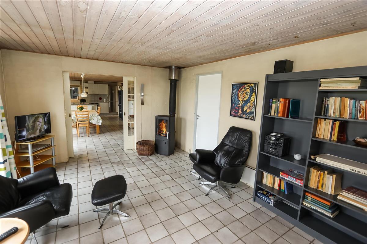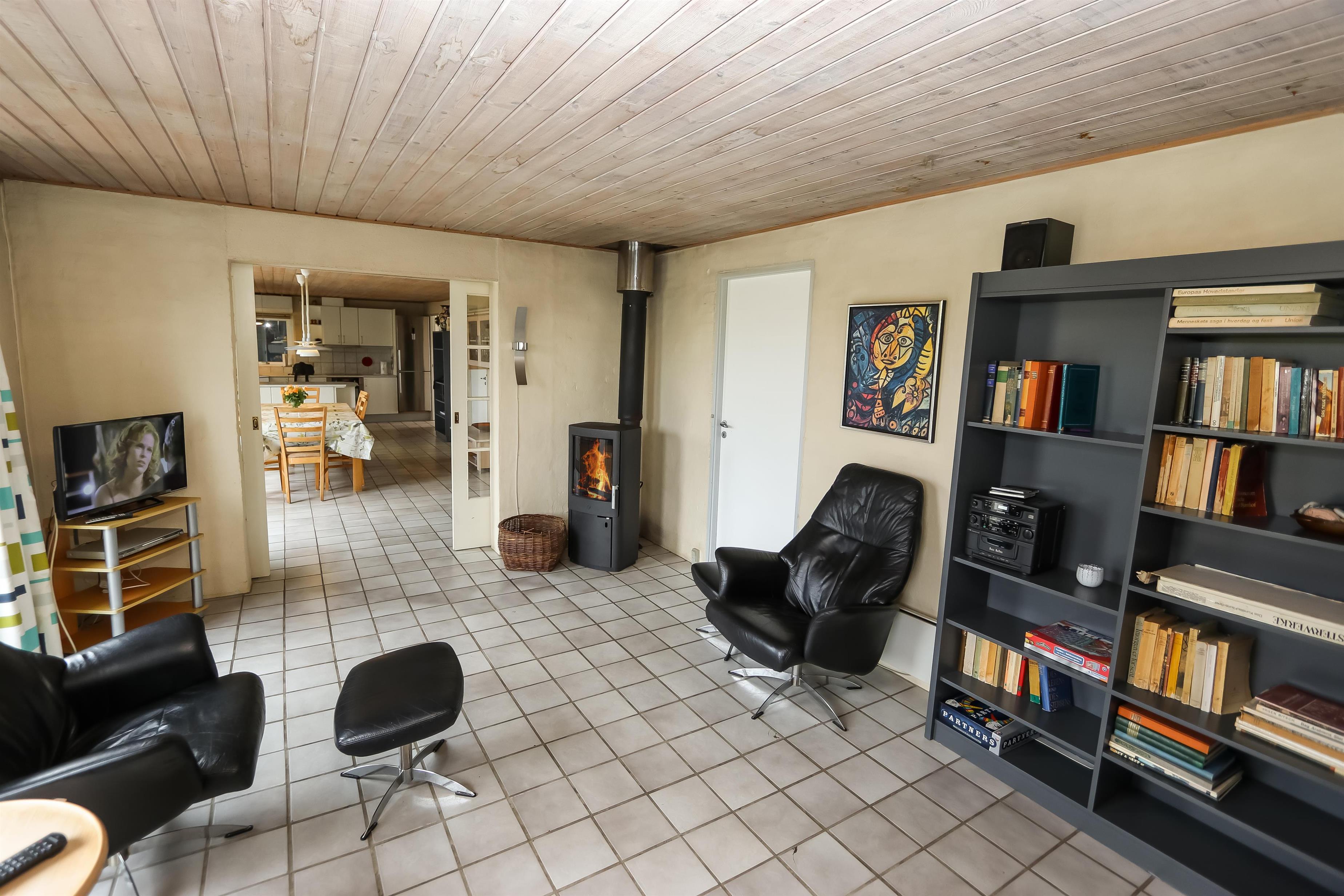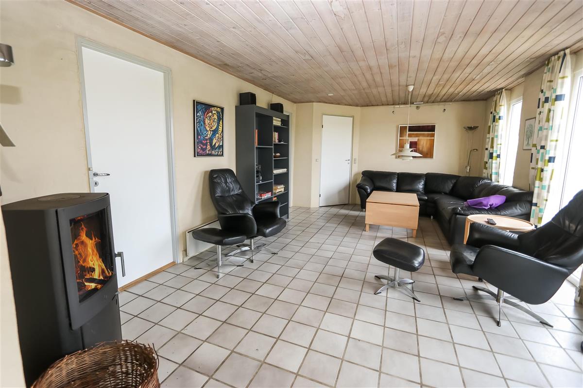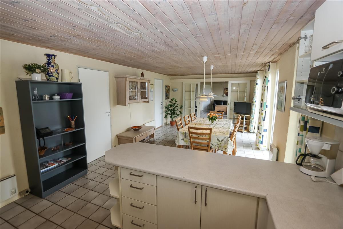 Das Haus verfügt über eine große Küche, in der Sie über die Küchentheke unterhalten können. Hier finden Sie fast alles, was Sie normalerweise zu Hause haben: Herd mit Cerankochfeld, Mikrowelle, Kühl- / Gefrierschrank, separater Gefrierschrank mit 60 Litern und Geschirrspüler. Der Wohnraum ist eine Erweiterung der Küche und bietet einen Flachbildschirm mit DR sowie deutschen Kanälen, CD-Player und DVD-Player. Darüber hinaus gibt es eine gemütliche Sofagruppe mit Wohnzimmertisch und Kaminofen.