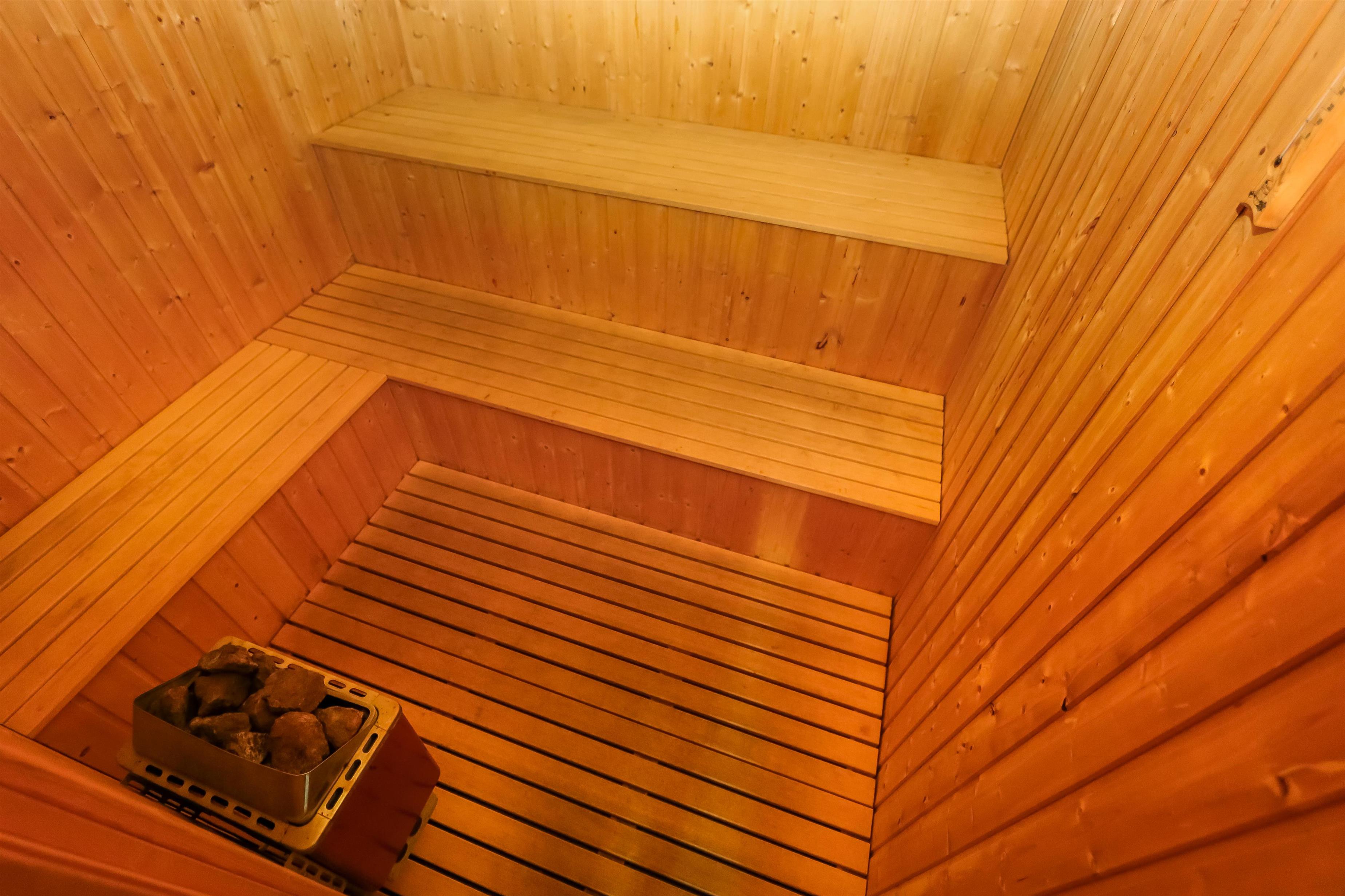 Hier sind zwei Badezimmer und beide haben eine Dusche, ein Waschbecken und eine Toilette. Das große Badezimmer verfügt jedoch auch über einen großen Wellnessbereich für 4-5 Personen und eine relativ große Sauna.