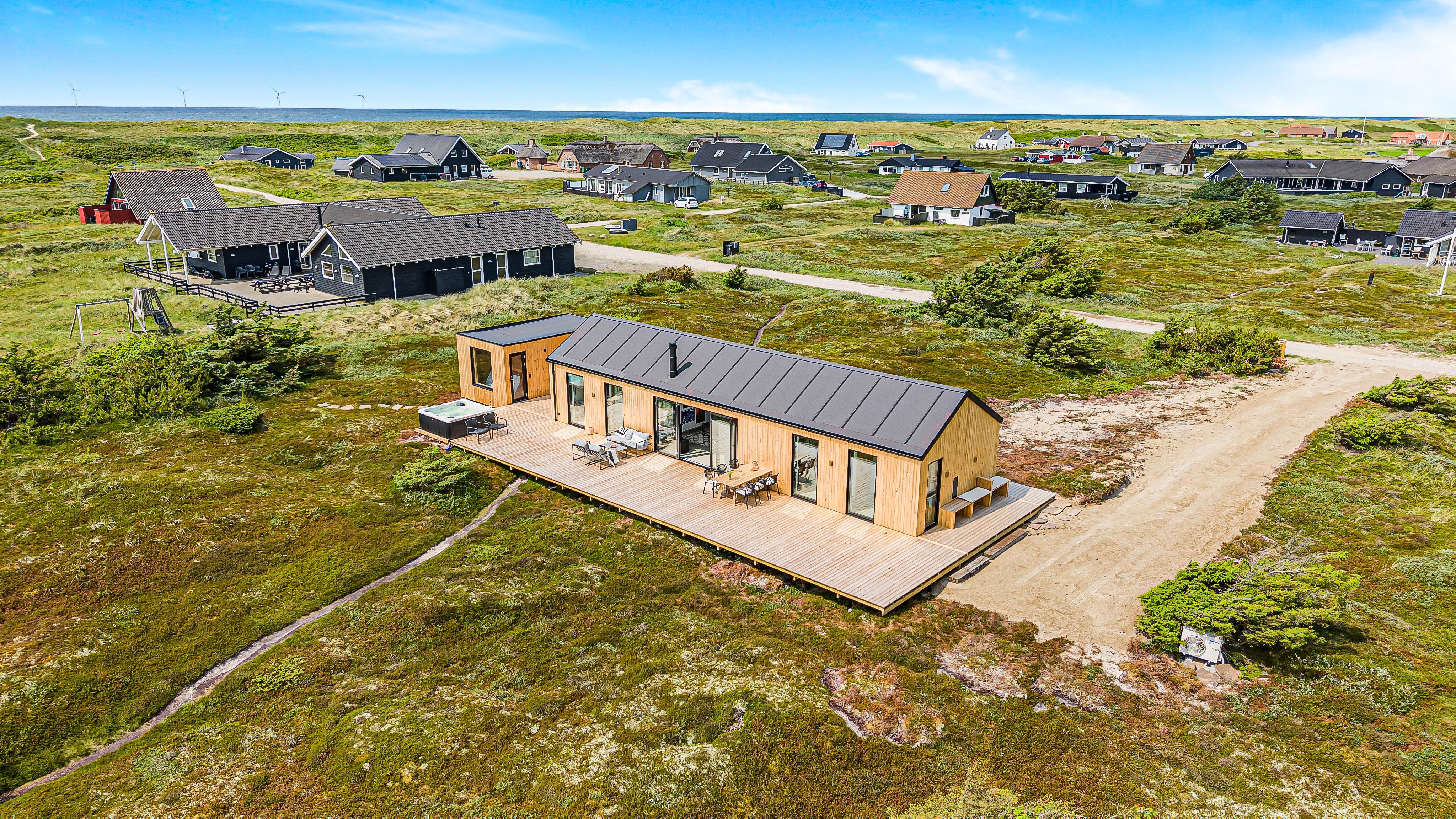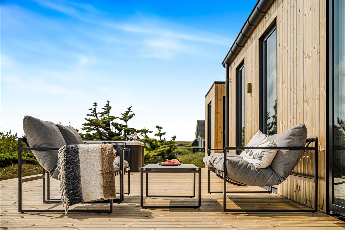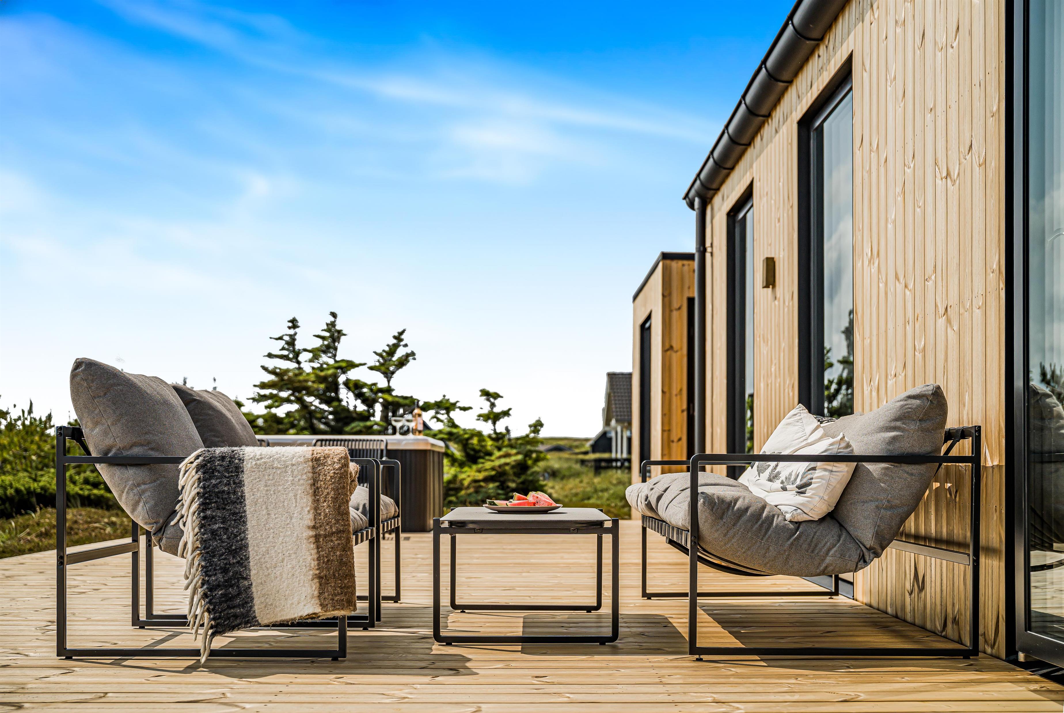 Die Terrasse lädt mit Gartenmöbeln, Sonnenliegen und einem Grill zu gemütlichen Stunden mit den Liebsten ein. Die Entfernung zur rauschenden Nordsee ist minimal – nur 200 Meter trennen das Haus von der spektakulären Aussicht auf das bewegte „Gemälde“ der Nordsee. Dank der zentralen Lage ist die Stadt Harboøre in wenigen Minuten zu Fuß erreichbar, wo es Einkaufsmöglichkeiten, Restaurants und zahlreiche Aktivitäten für Kinder gibt. Nicht weit von Vrist gelangt man mit dem Auto schnell zu den Hafenstädten Lemvig und Thyborøn, wo man am Hafen ein Eis genießen, frischen Fisch kaufen oder in den lokalen Geschäften stöbern kann. Alternativ kann man mit der kleinen VLTJ-Bahn fahren, für die kostenlose Tickets im SJ-Büro erhältlich sind, um zwischen Lemvig und Thyborøn zu fahren.
