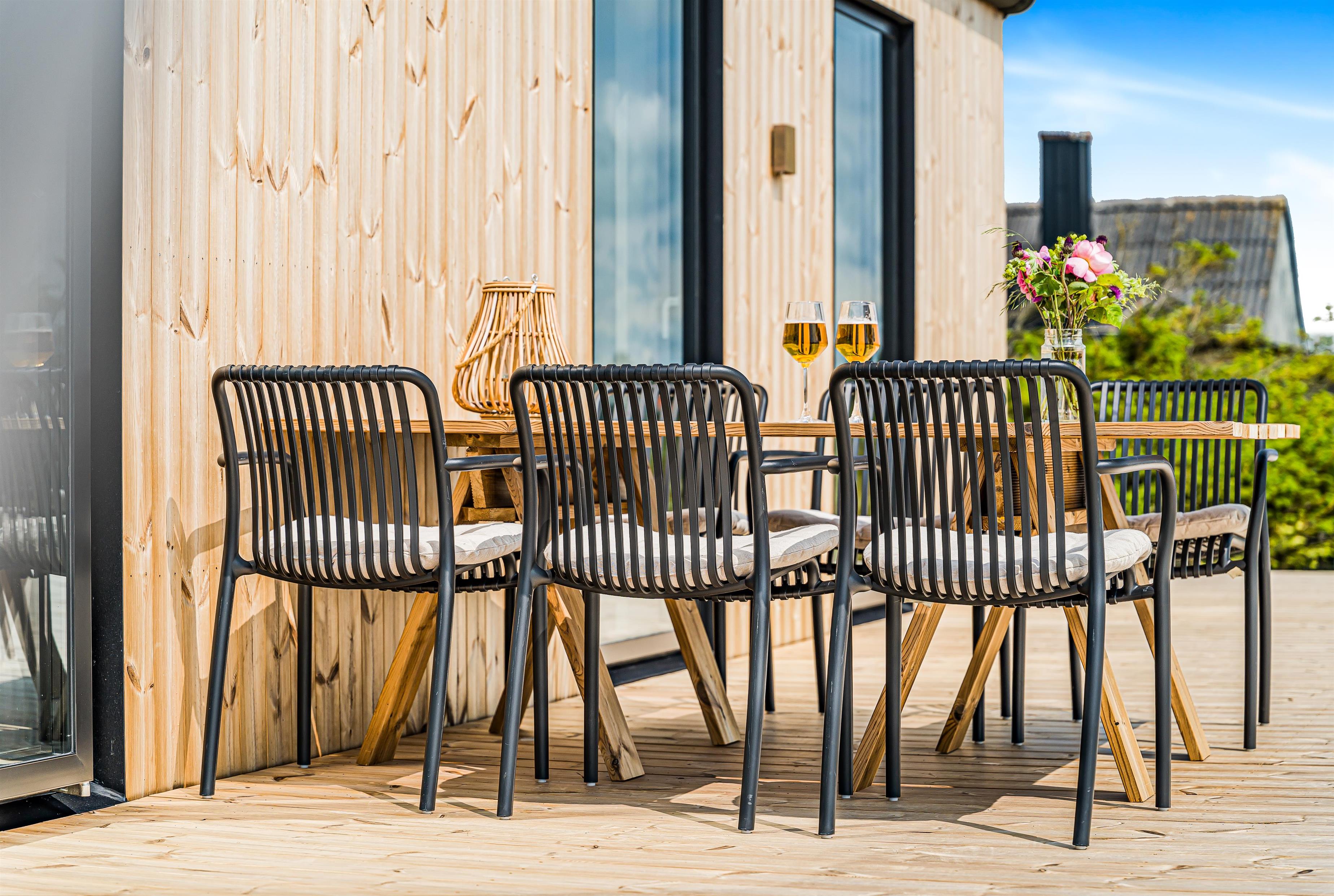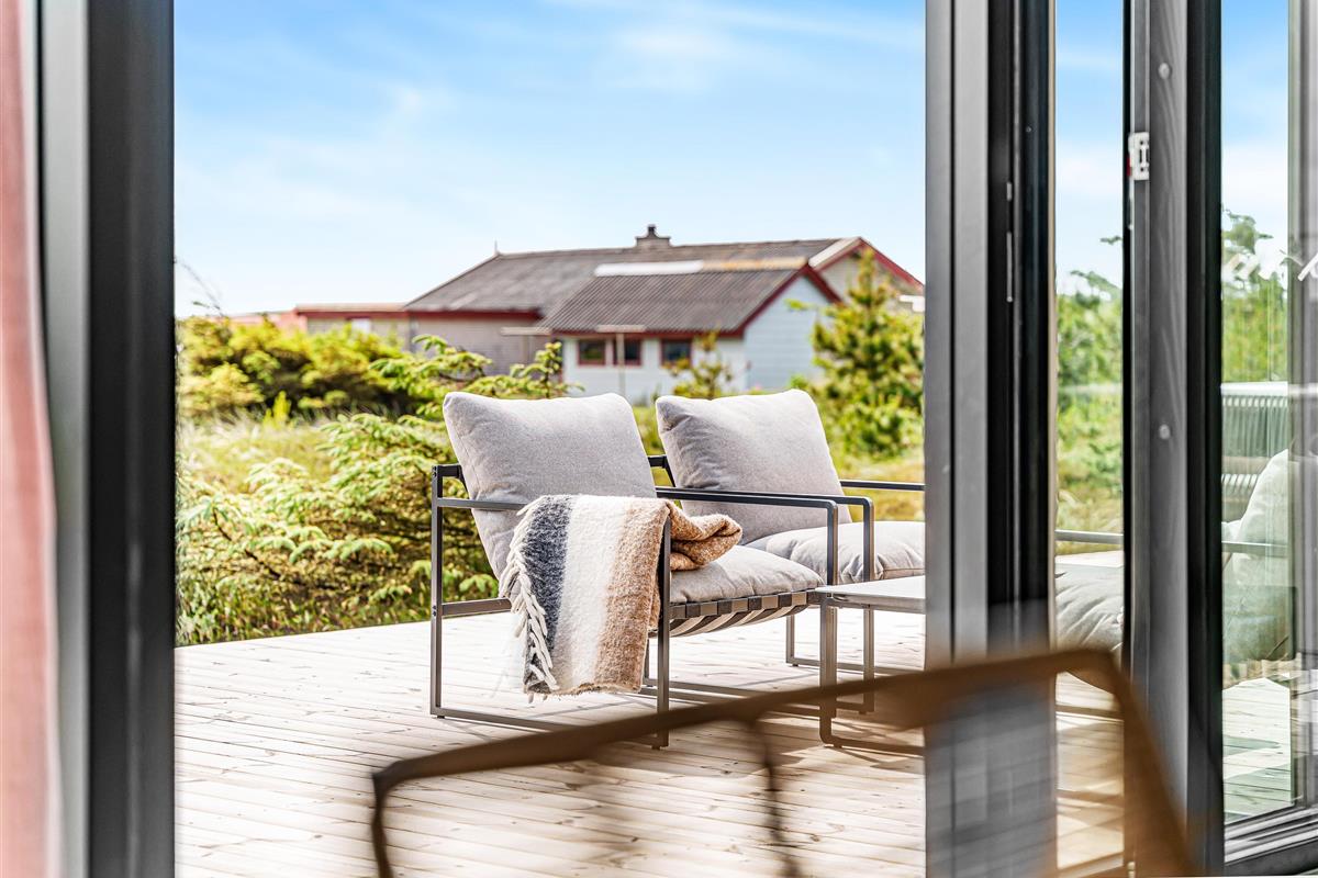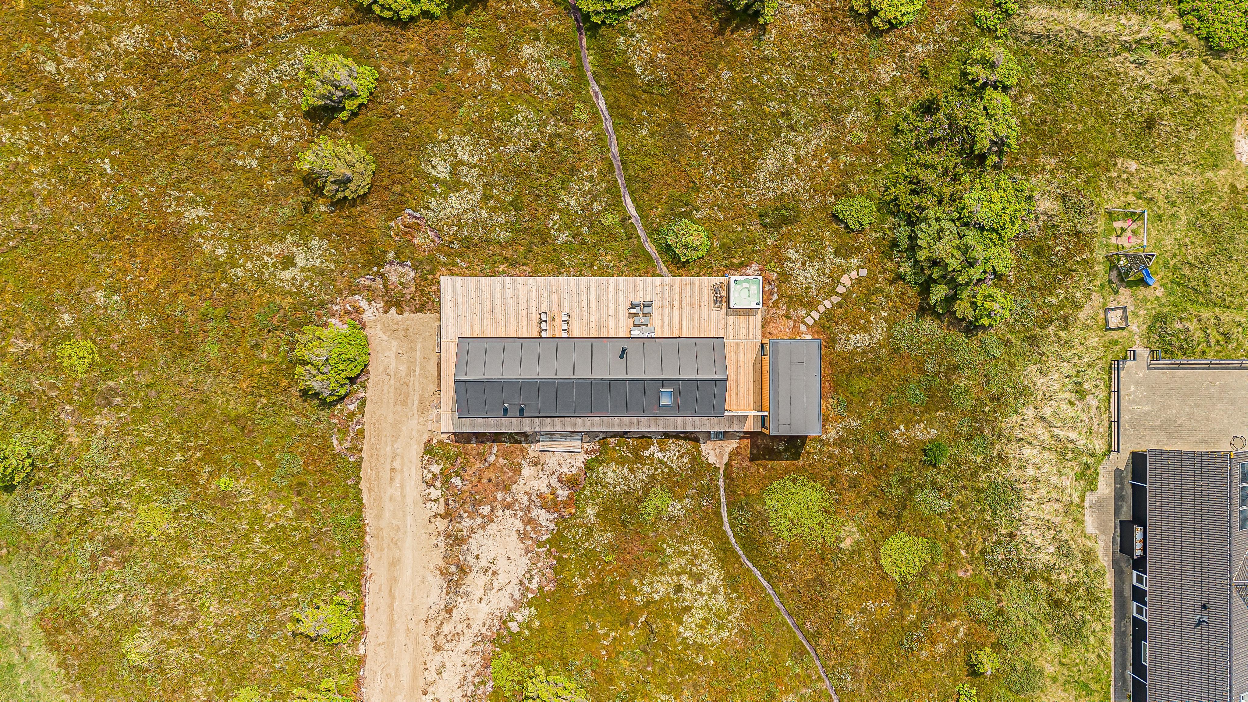 Die Terrasse lädt mit Gartenmöbeln, Sonnenliegen und einem Grill zu gemütlichen Stunden mit den Liebsten ein. Die Entfernung zur rauschenden Nordsee ist minimal – nur 200 Meter trennen das Haus von der spektakulären Aussicht auf das bewegte „Gemälde“ der Nordsee. Dank der zentralen Lage ist die Stadt Harboøre in wenigen Minuten zu Fuß erreichbar, wo es Einkaufsmöglichkeiten, Restaurants und zahlreiche Aktivitäten für Kinder gibt. Nicht weit von Vrist gelangt man mit dem Auto schnell zu den Hafenstädten Lemvig und Thyborøn, wo man am Hafen ein Eis genießen, frischen Fisch kaufen oder in den lokalen Geschäften stöbern kann. Alternativ kann man mit der kleinen VLTJ-Bahn fahren, für die kostenlose Tickets im SJ-Büro erhältlich sind, um zwischen Lemvig und Thyborøn zu fahren.