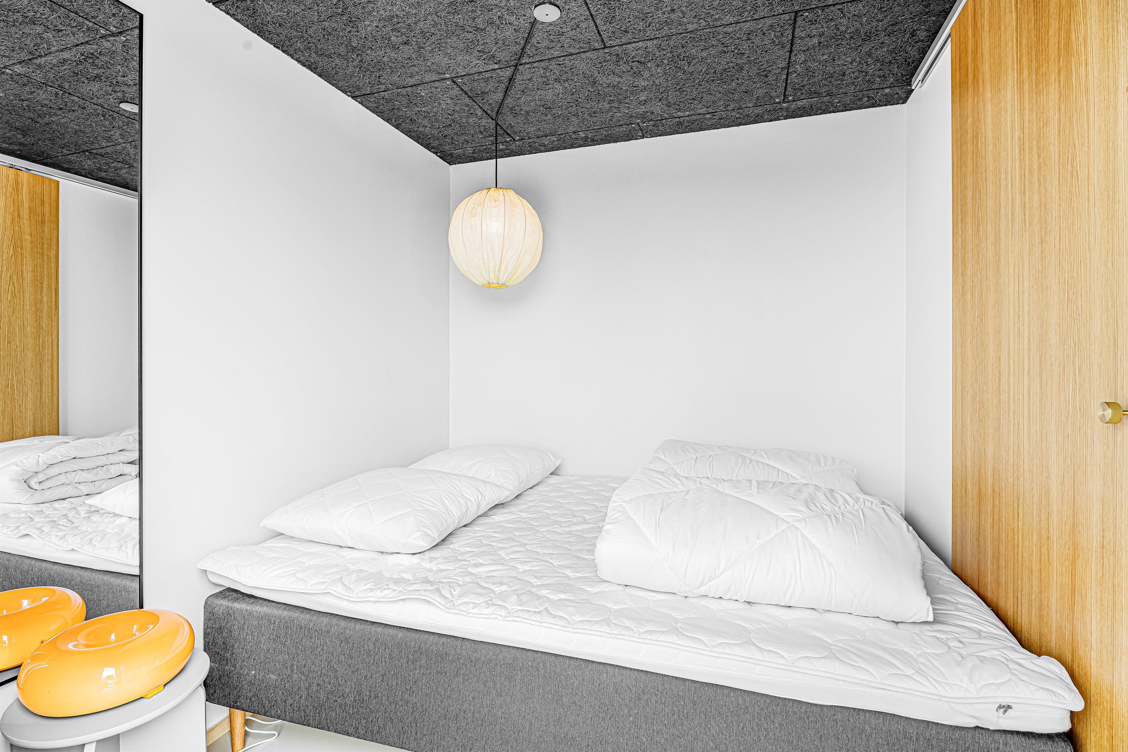 An beiden Enden des Hauses befindet sich jeweils ein Schlafzimmer mit einem Doppelbett. Zusätzlich gibt es zwei weitere Schlafplätze auf dem Schlafboden (Hems), der eine angenehme Raumhöhe bietet.