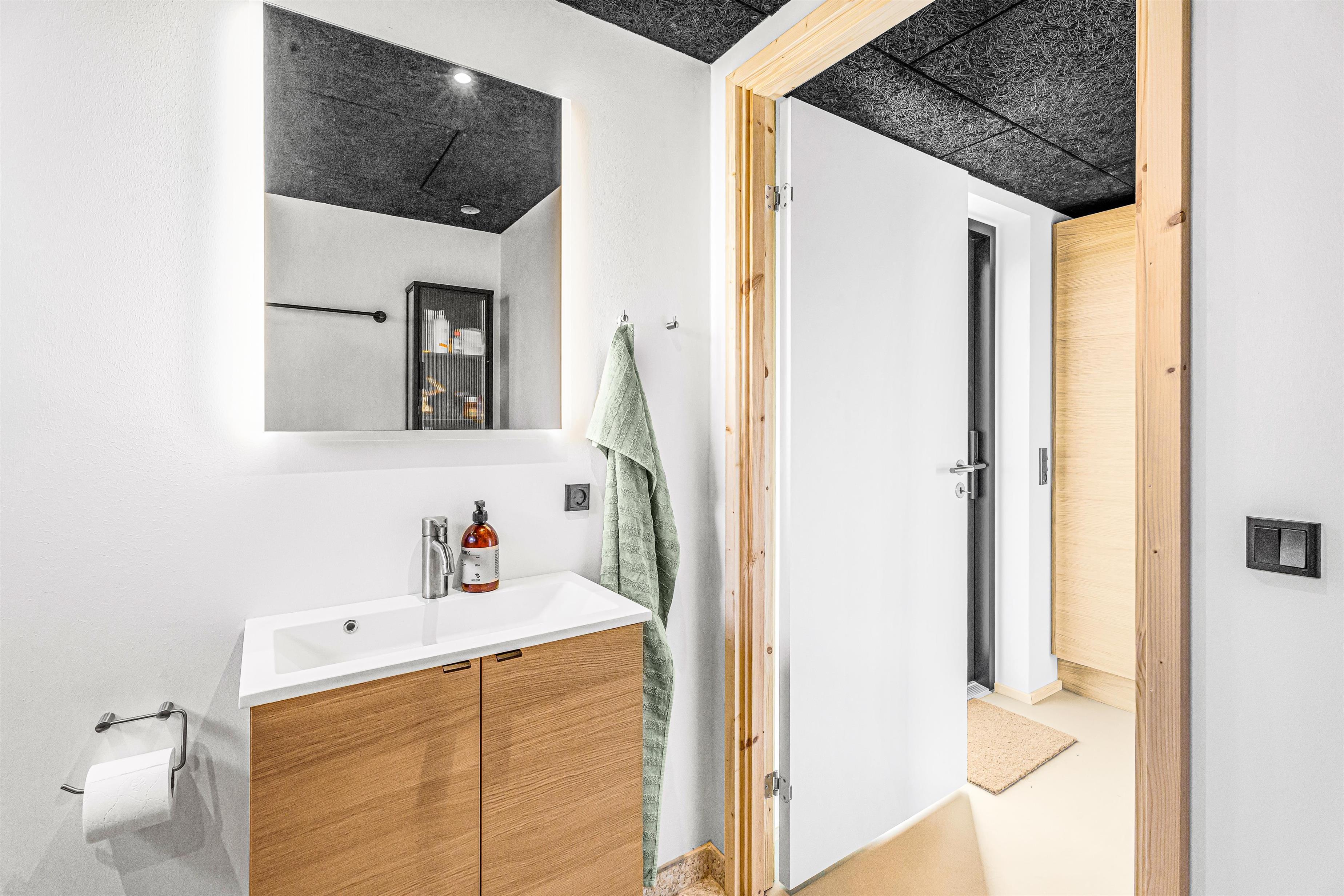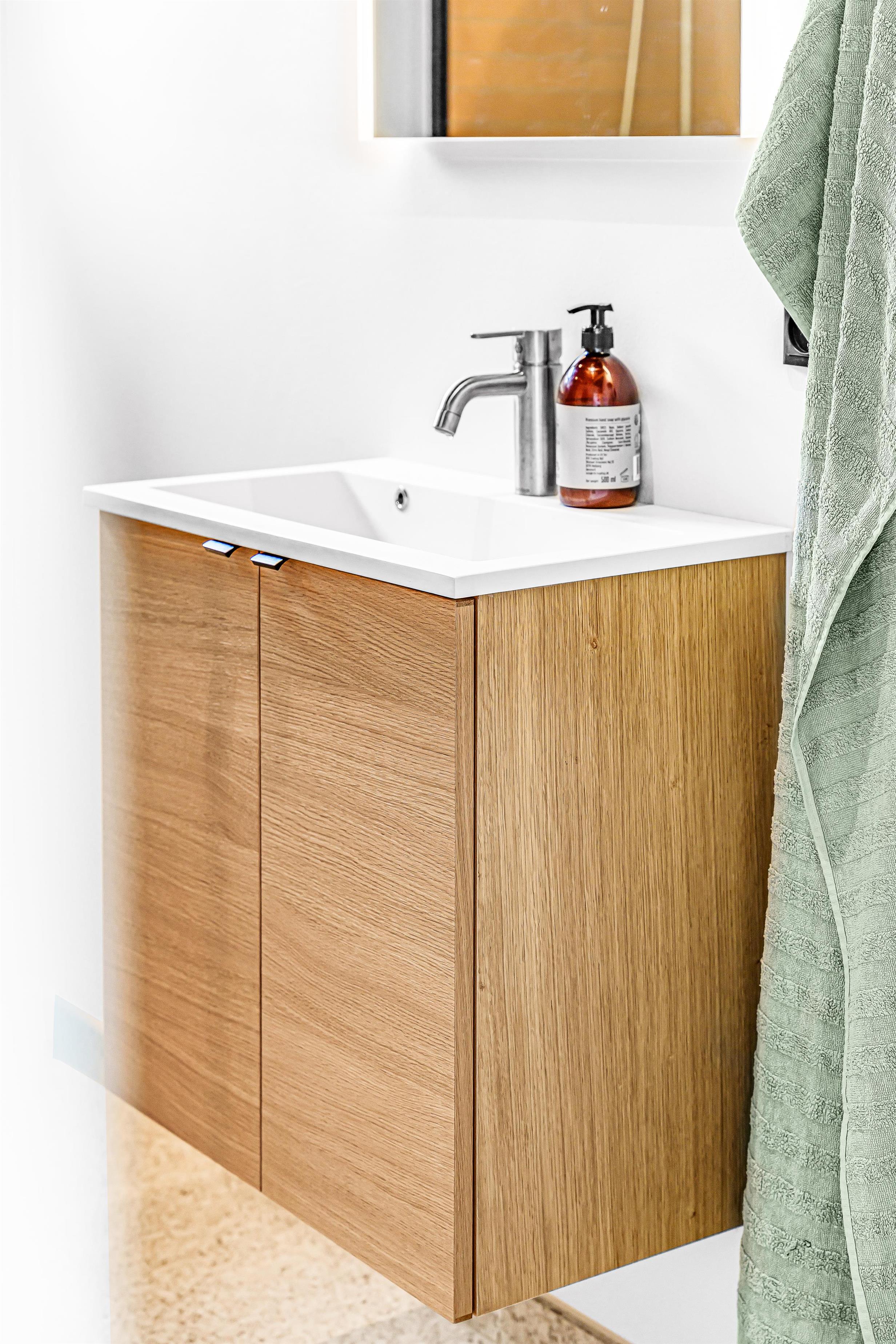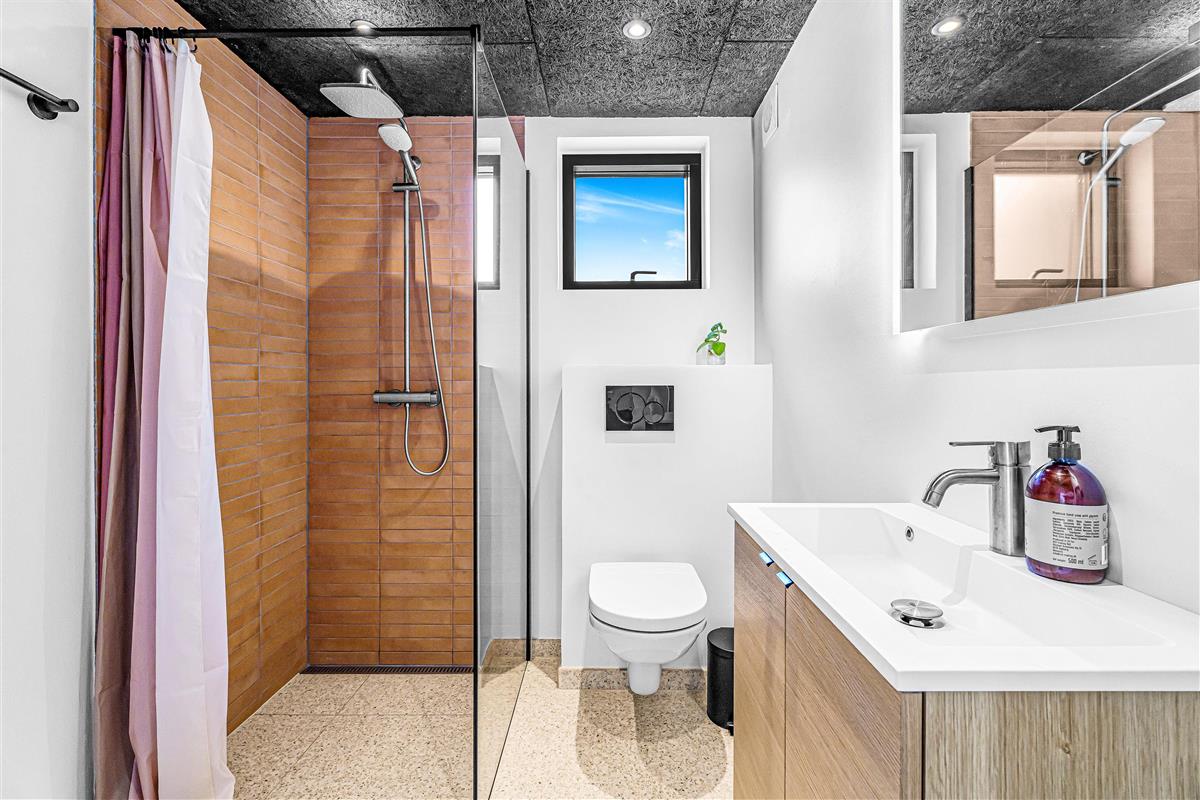 Das Haus verfügt über ein schönes Badezimmer mit Toilette, Waschbecken, Dusche und wird mit Fußbodenheizung beheizt.