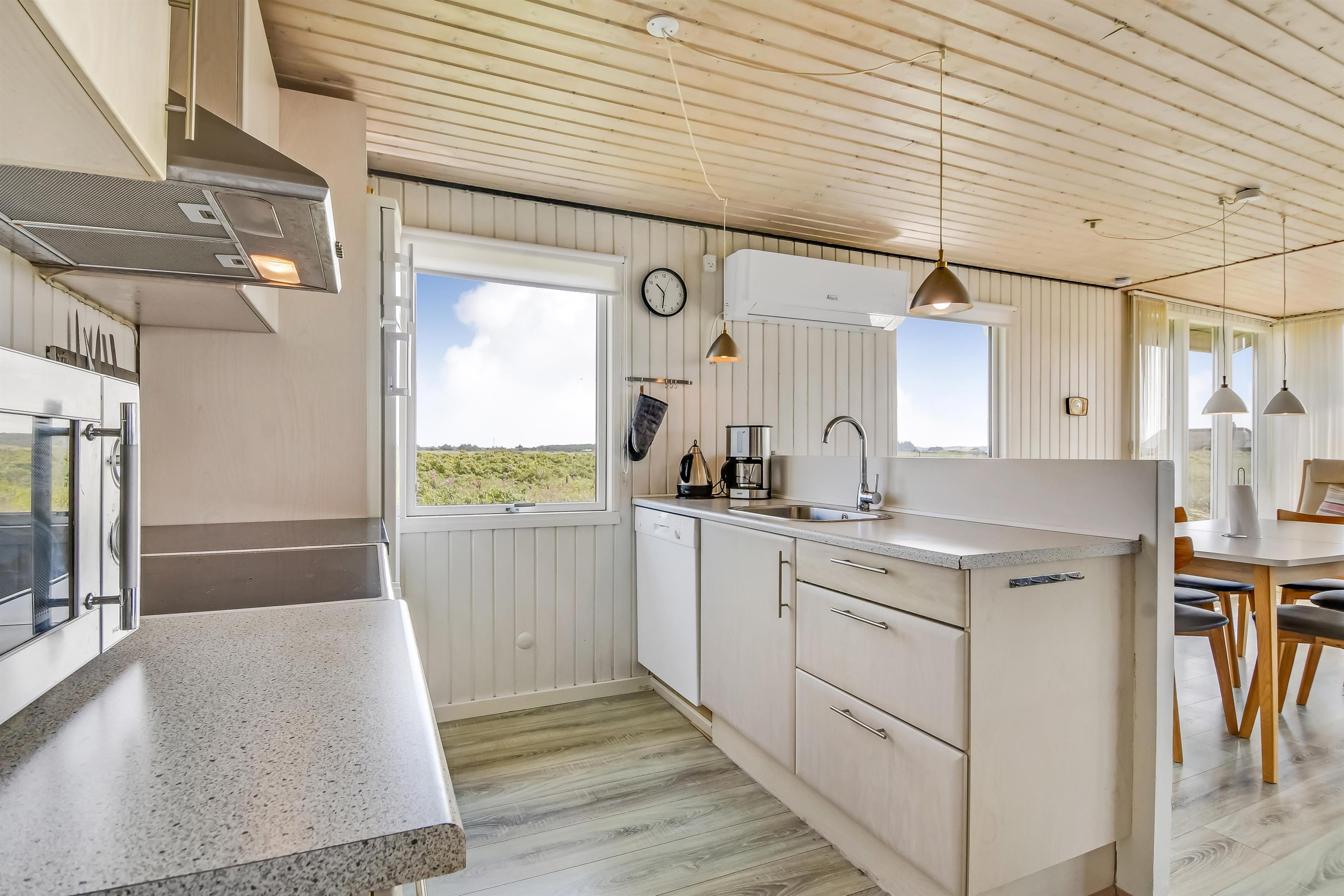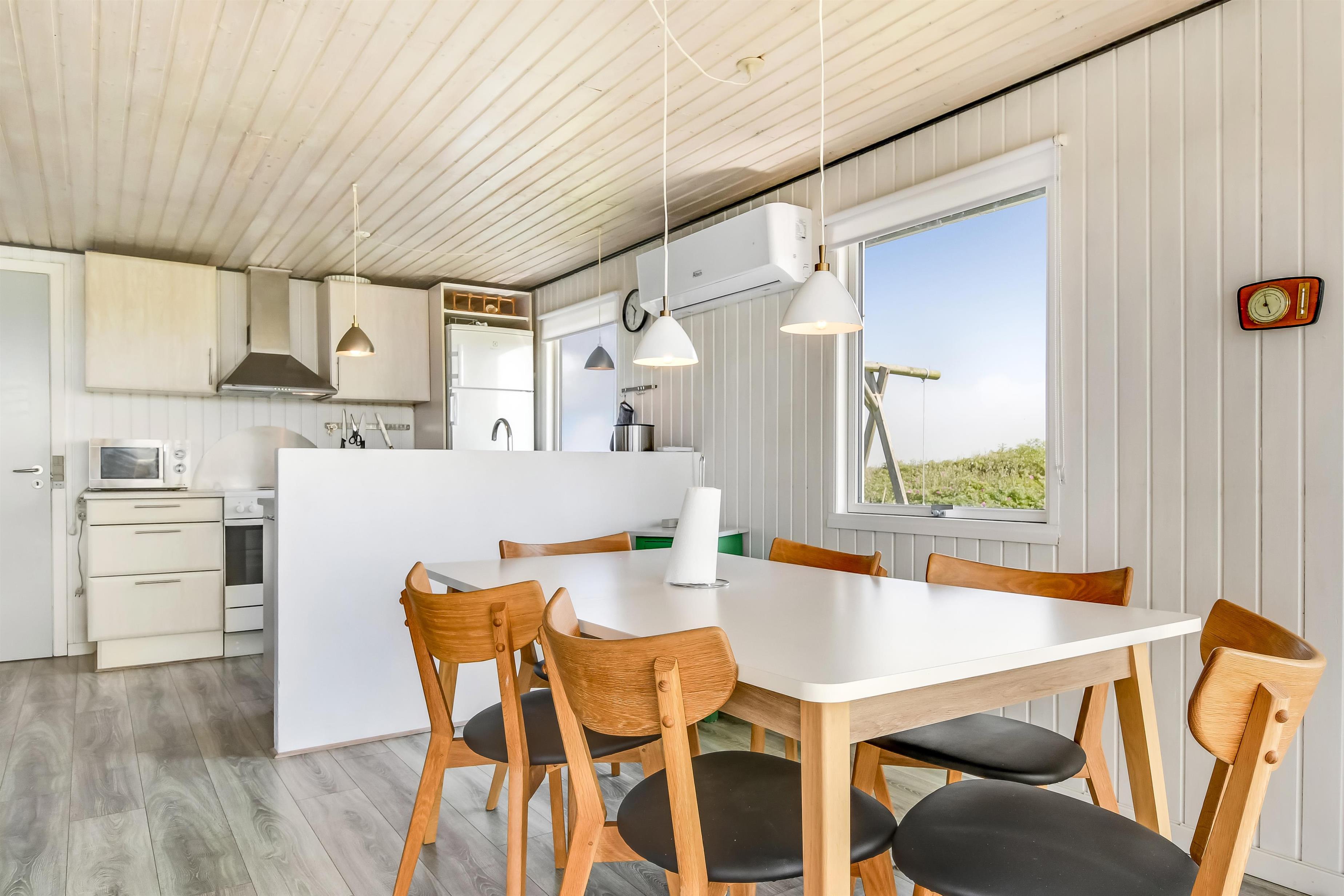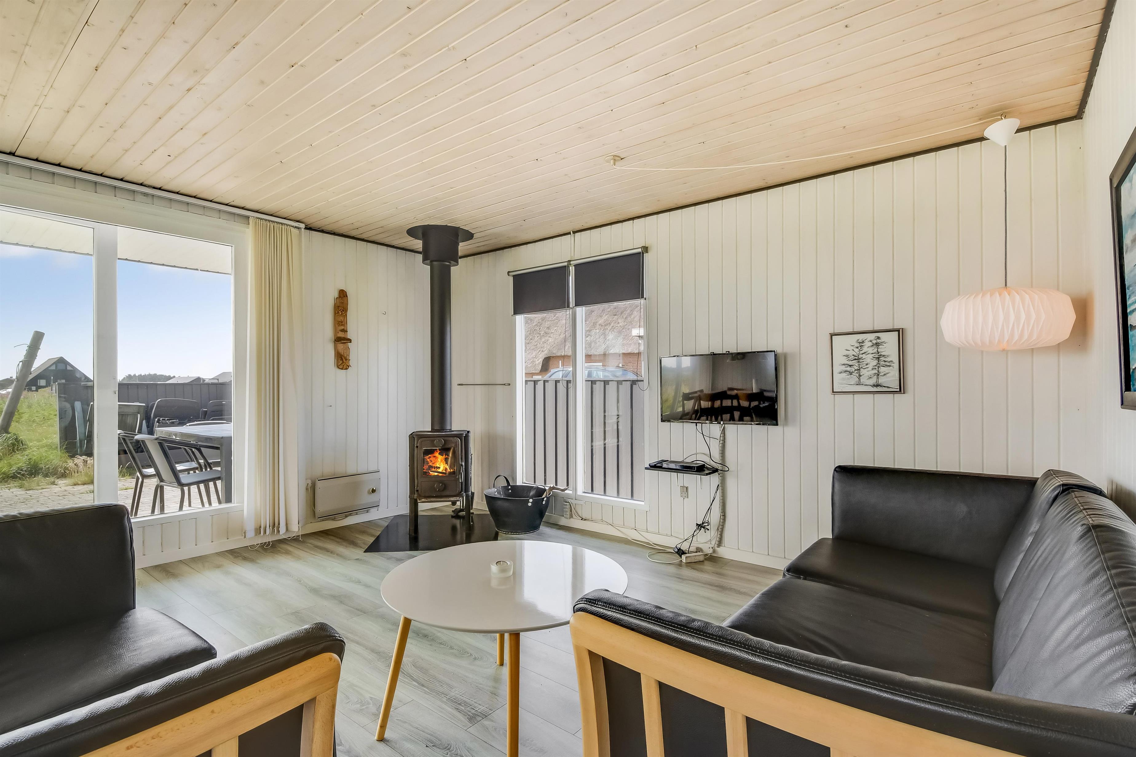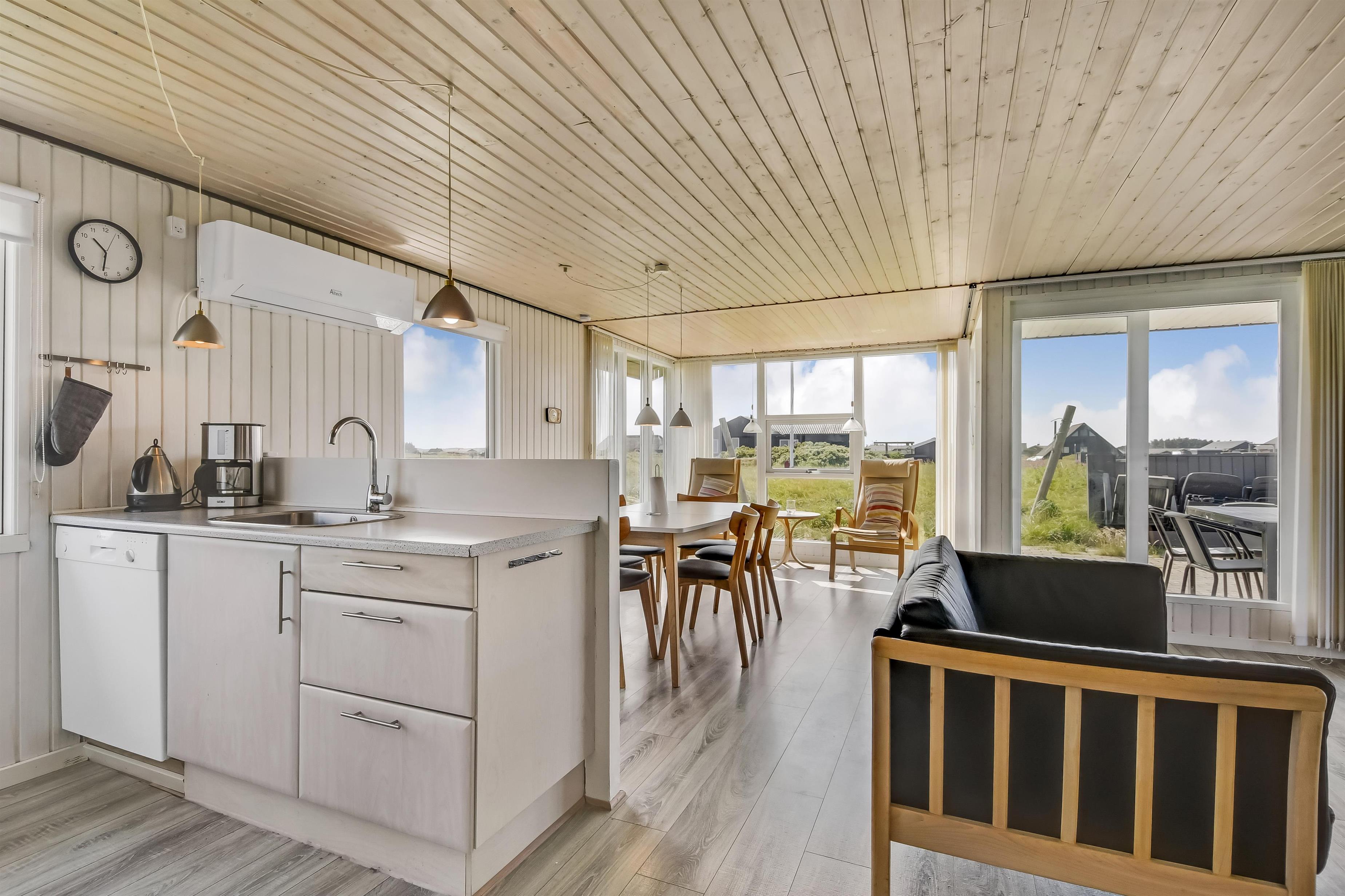 Gut ausgenutzes Ferienhaus auf etwa 69 m2 mit 3 Schlafräume 1DB + 1DB + 1B. Das Haus wurde spätestens in 2021 renoviert und ist mit Ledermöbeln, Esstisch, TV mit dänische und deutsdche Prgrammen und Chromecast die die Möglichkeit gibt TV / Radio /Apps zu Streamen wenn Sie selber einen Abonnement haben, es gibt auch ein DVD-Player. Ein gemütlicher Brennofen und Wärmepumpe sorgt für extra gemütlichkeit und sorgt auch für eine güngstiger Nebenkosten Rechnung. Praktischer Küche mit z.b. Geschirrspüler, Herd mit Ceranfeld-Kochplatten, Abzughaube und Kühlschrank mit Gefrierbox. Badezimmer mit Toilette, Waschbecken, Dusche, Waschbecken und Fliesenboden. Es gibt praktischer Böden im ganzem Haus. Haustier erlaubt. Nicht Raucherhaus.